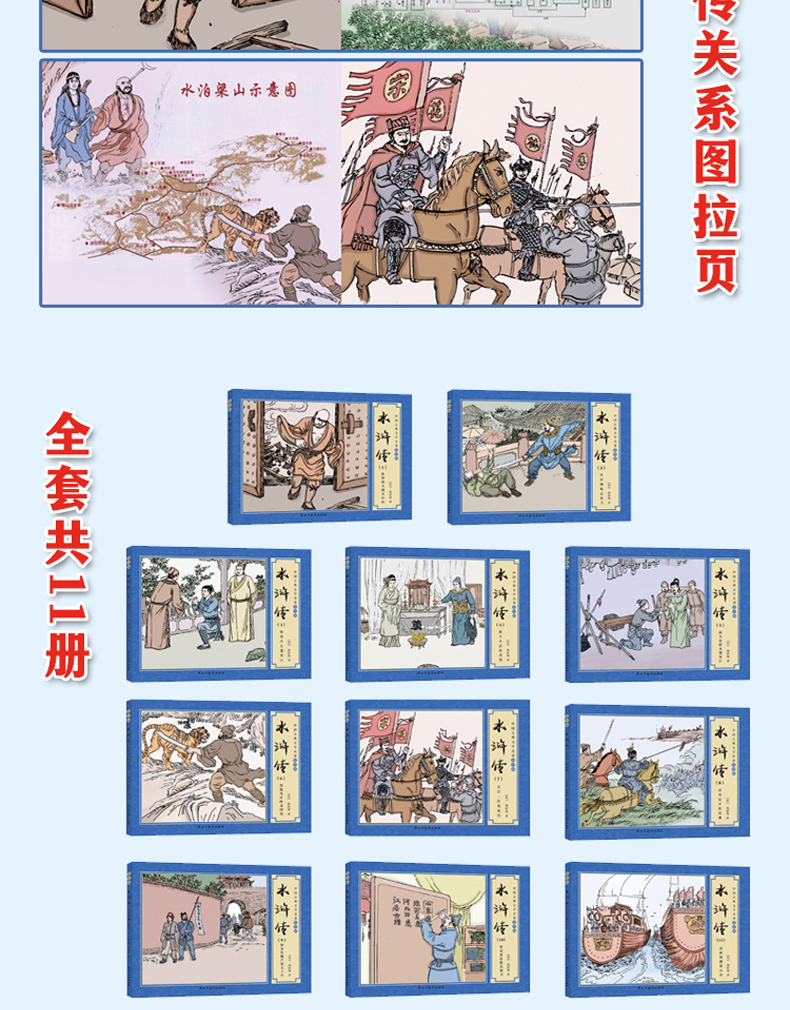 B111【6-18岁】《中国古典文学名著连环画:水浒传礼盒》全11册