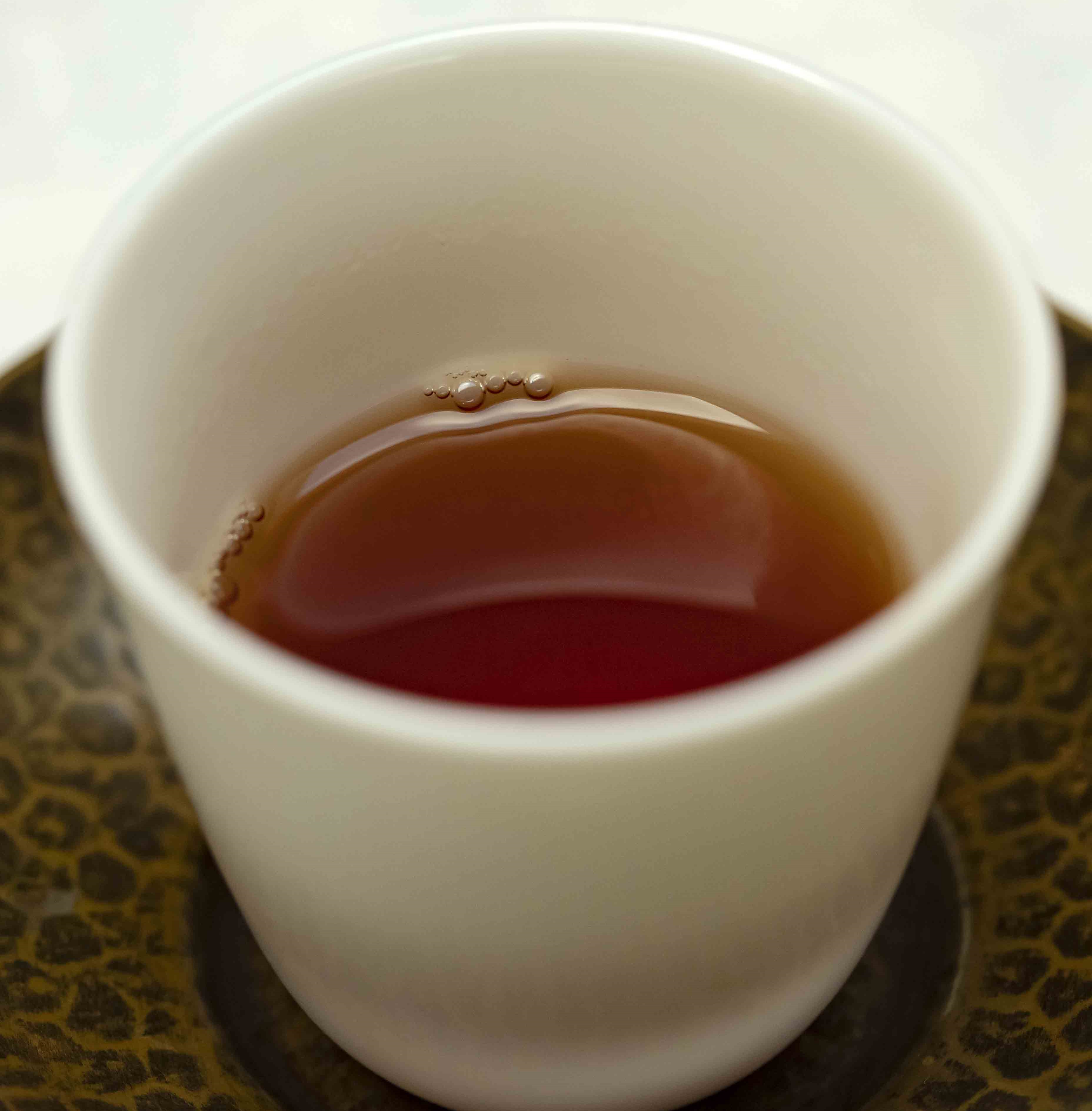 三,茶汤:橙红透亮,色泽如琥珀晶莹剔透
