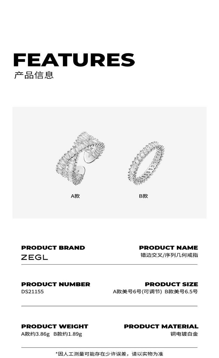 ZEGL交叉戒指小众设计时尚个性指环ins冷淡风开口可调节食指戒子