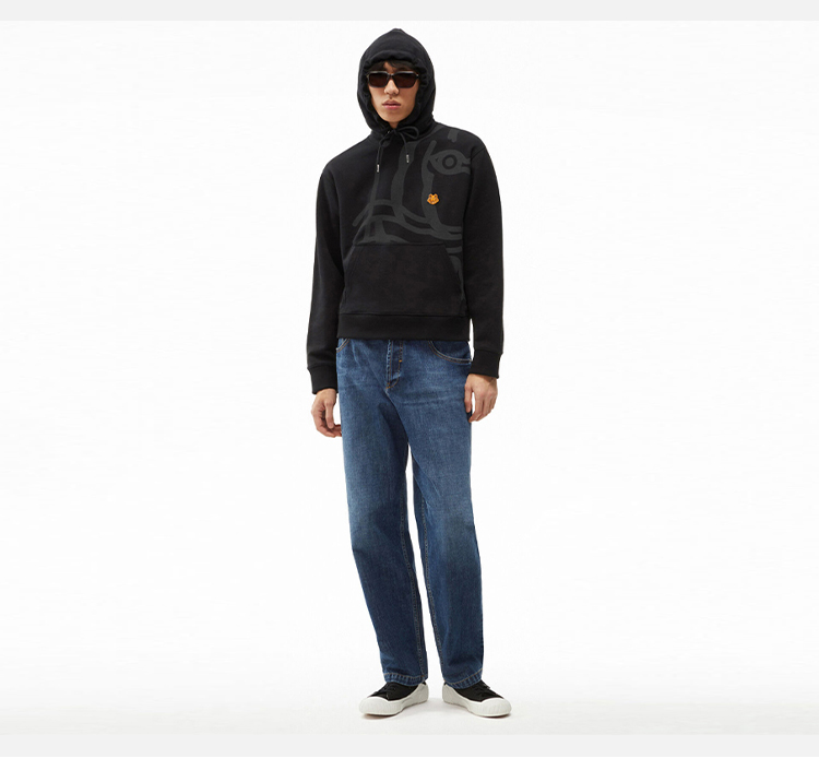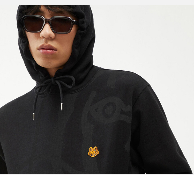 KENZO 高田贤三 男士棉质logo印花小虎头刺绣抽绳连帽卫衣 黑色 FB65 SW305 4MO 99