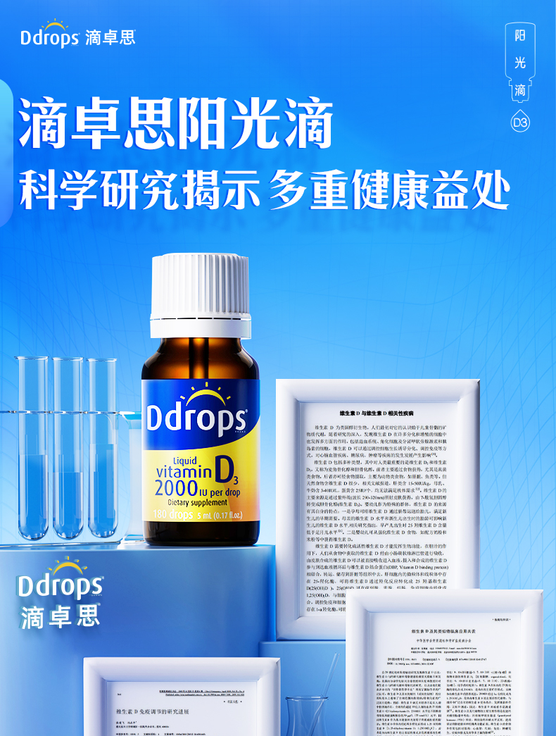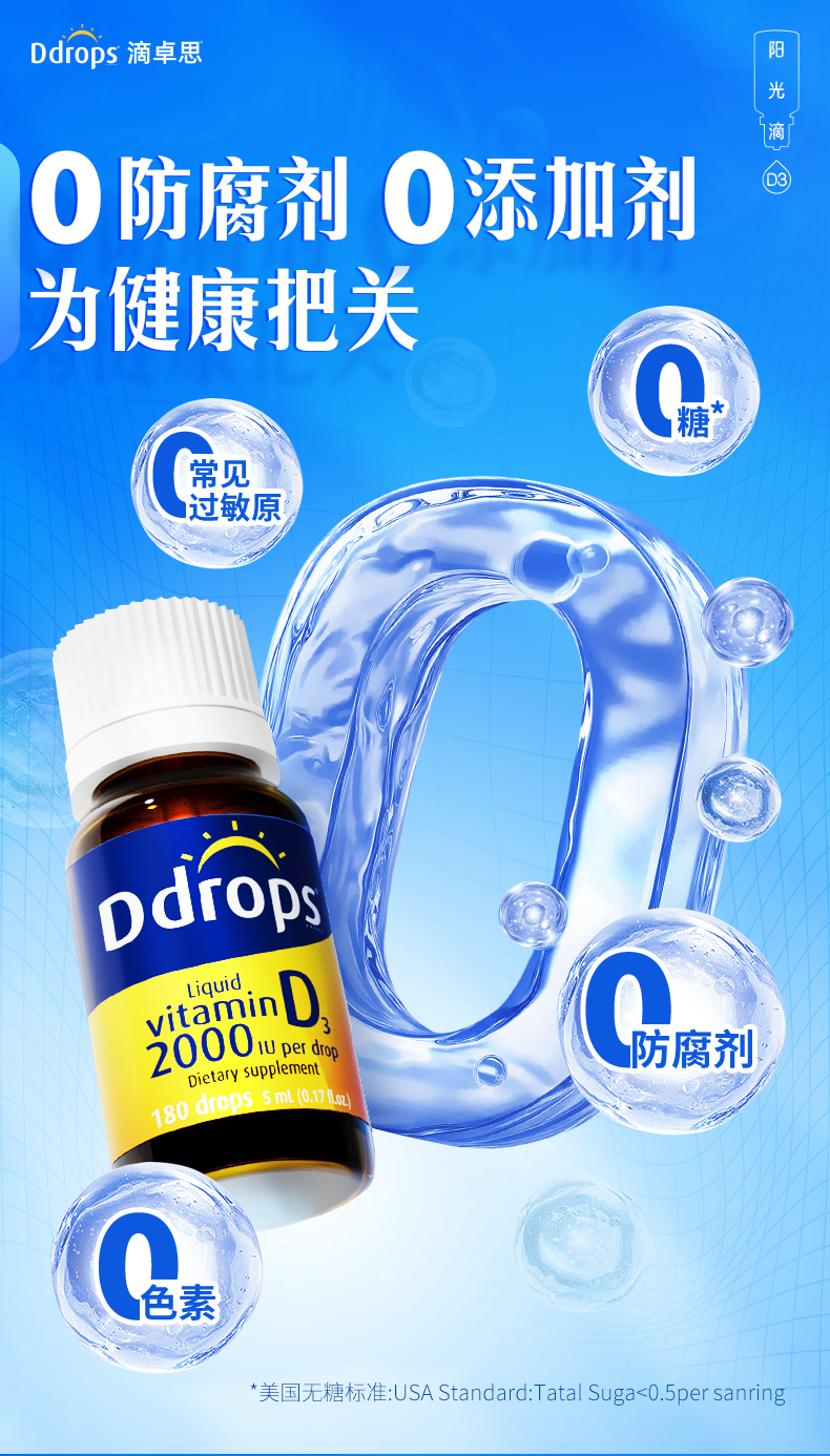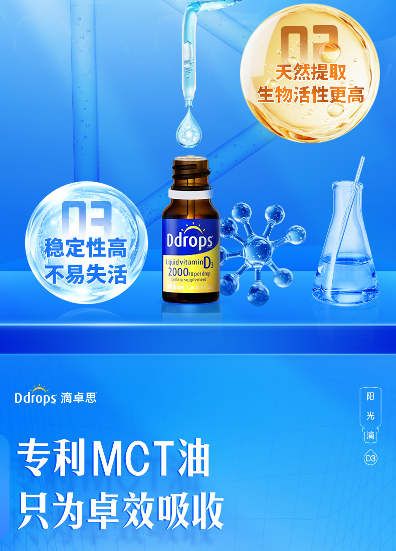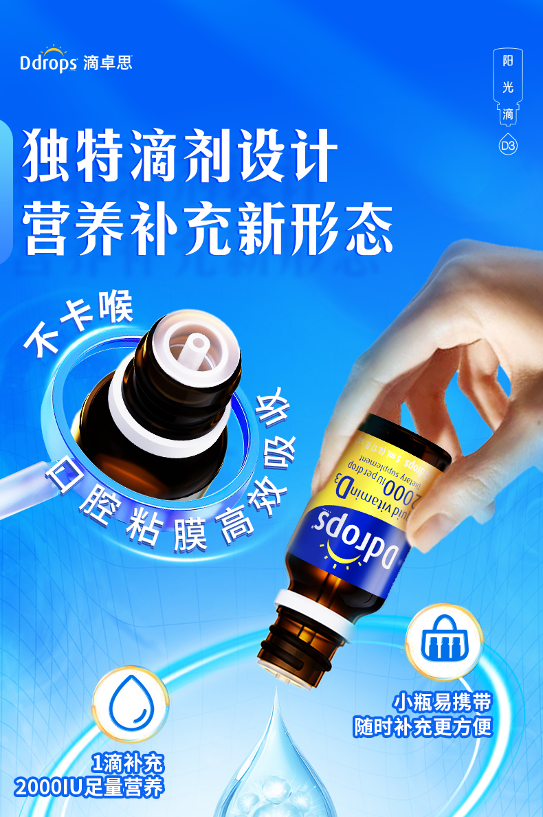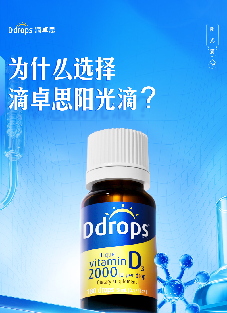 Ddrops滴卓思成人维生素D3滴剂2000IU 5ml/瓶180滴DD小滴瓶 SC
