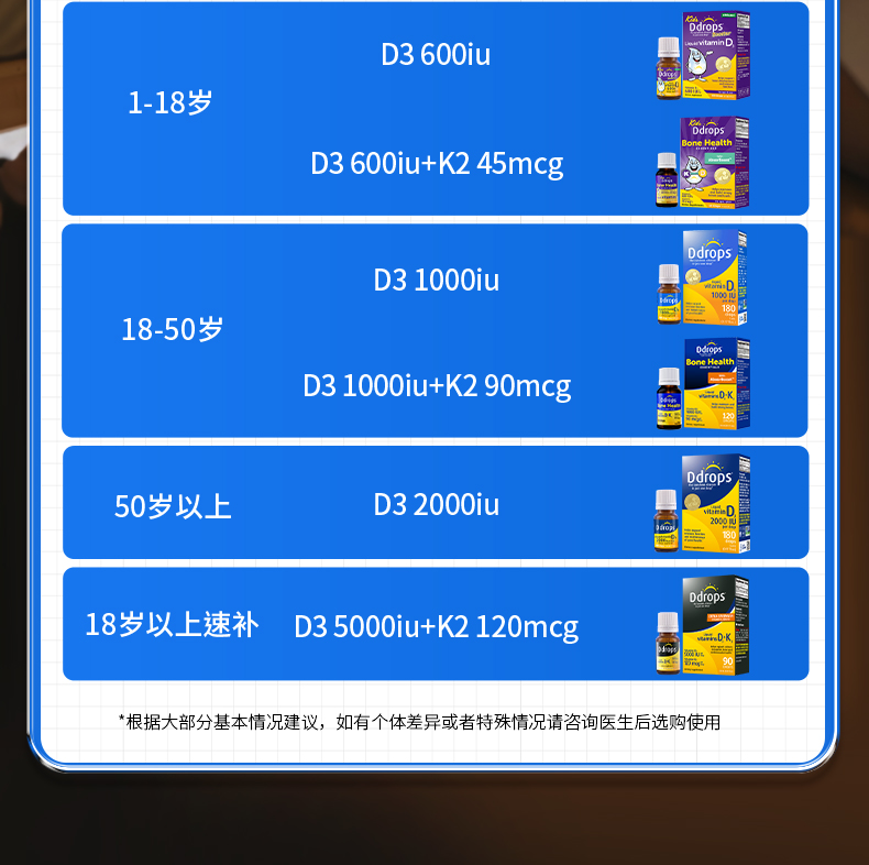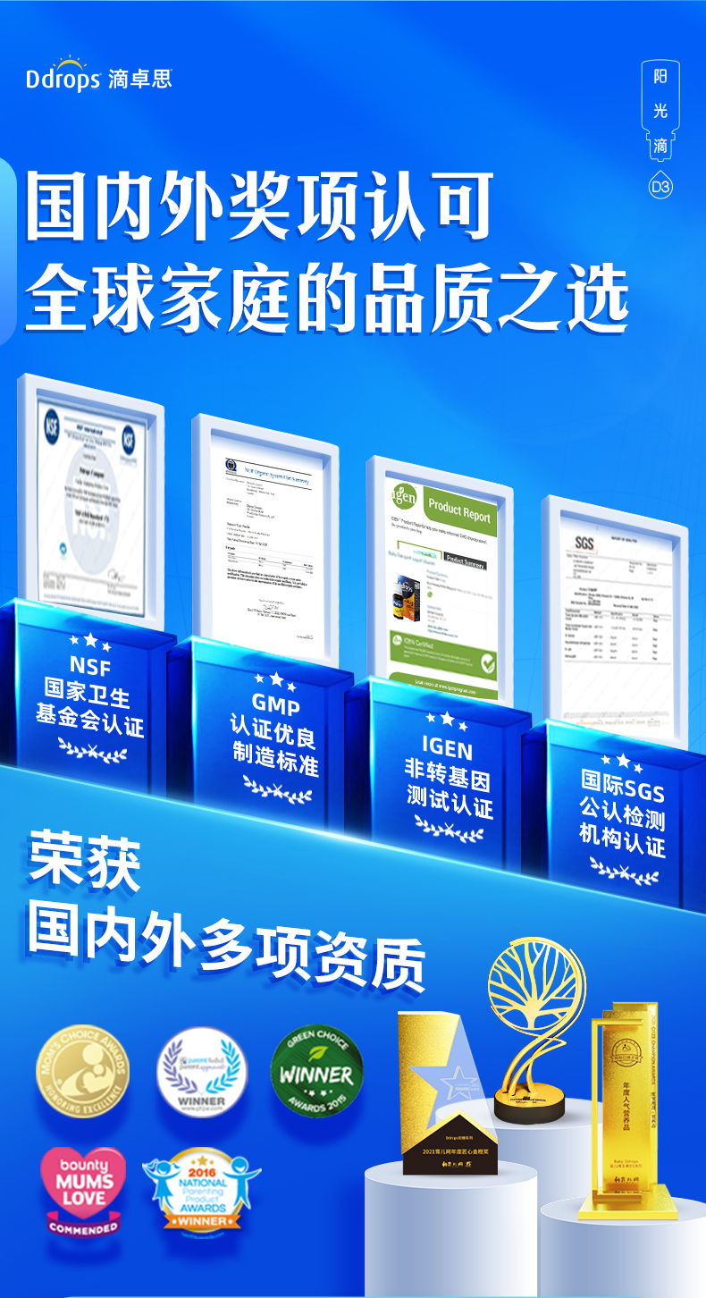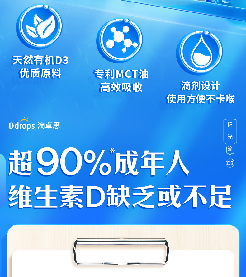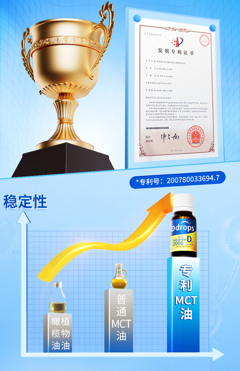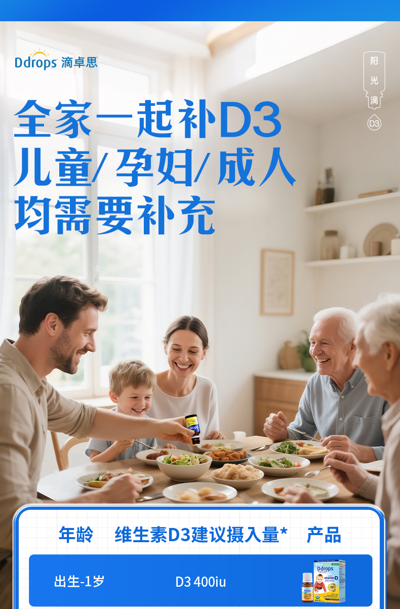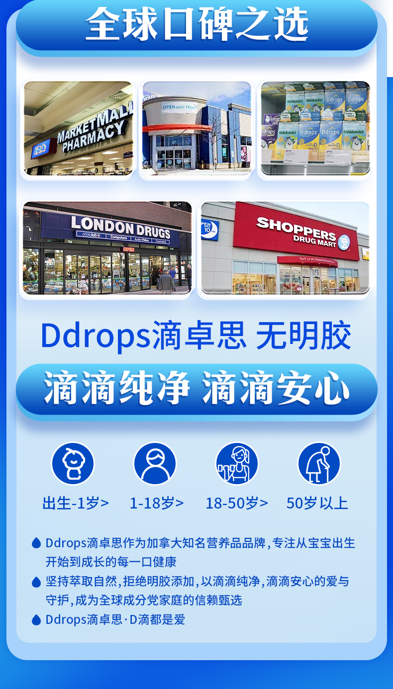 Ddrops滴卓思成人维生素D3滴剂2000IU 5ml/瓶180滴DD小滴瓶 SC