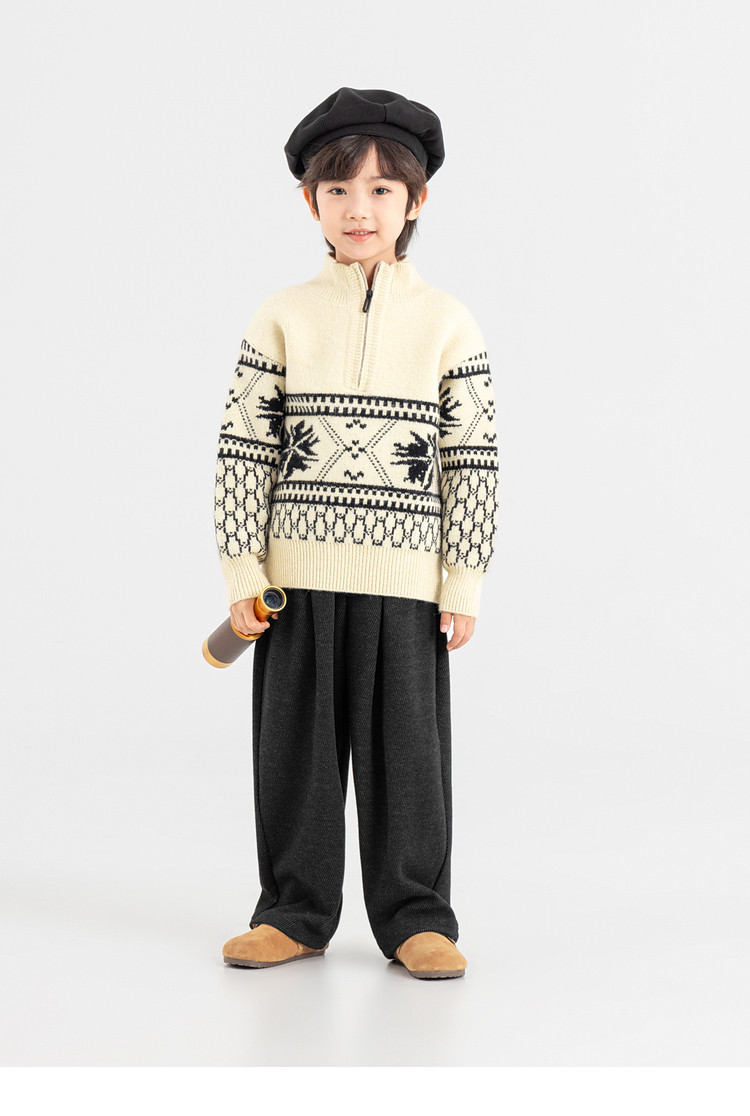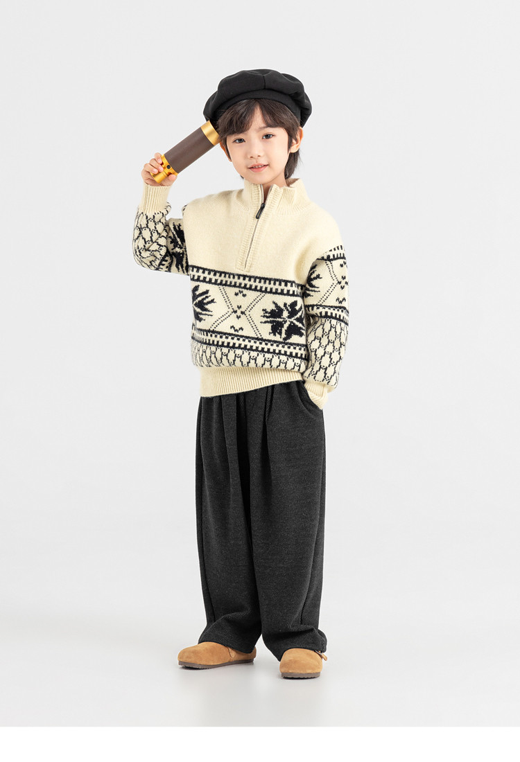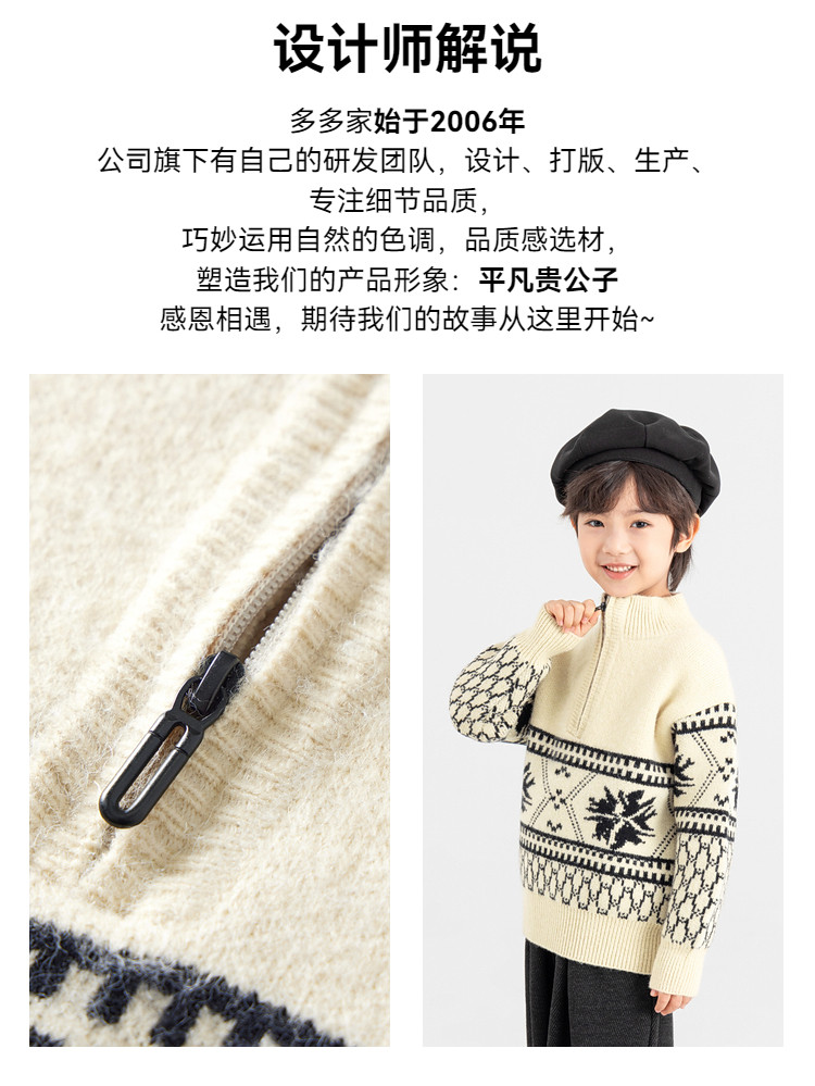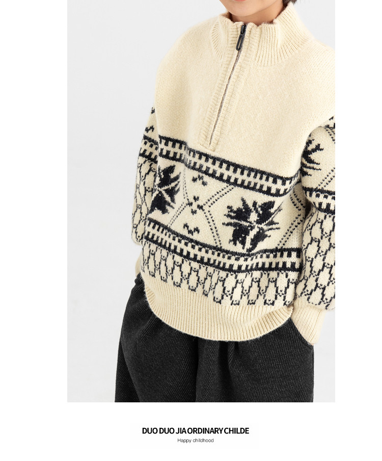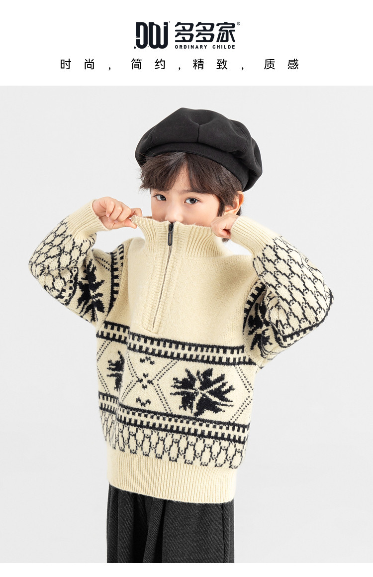 【件件底价,童装双倍积分】多多家男童毛衣半拉链费尔岛针织衫2025秋冬款新款儿童中大童上衣11356