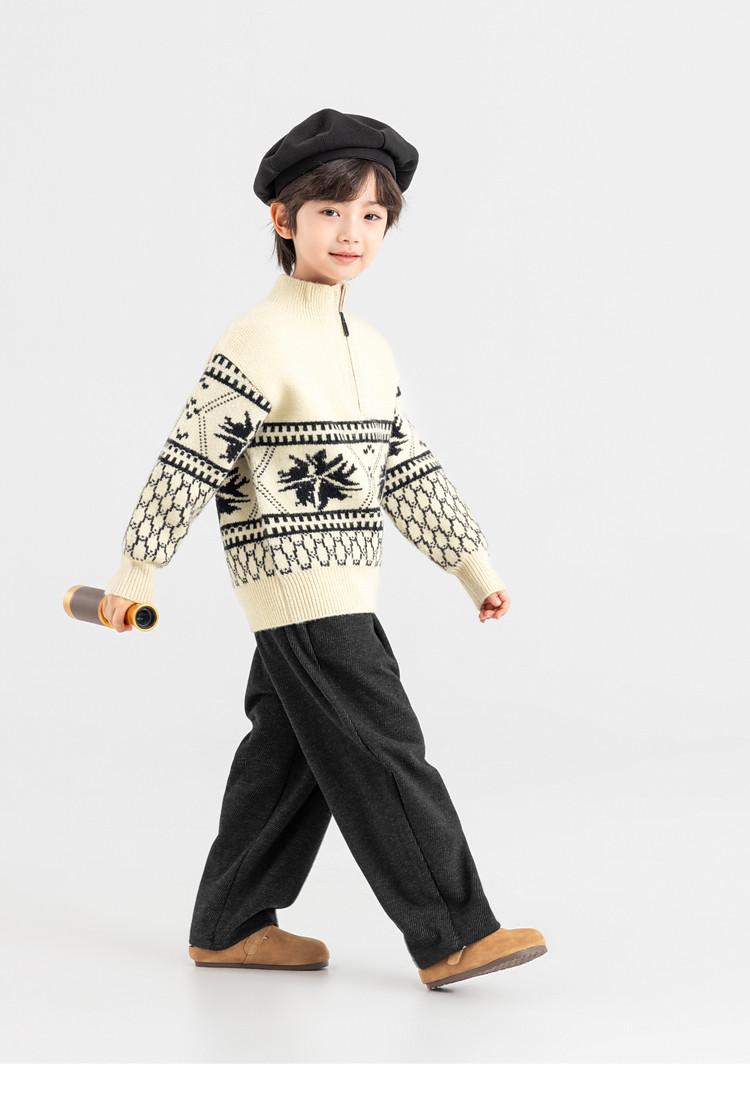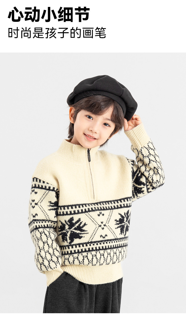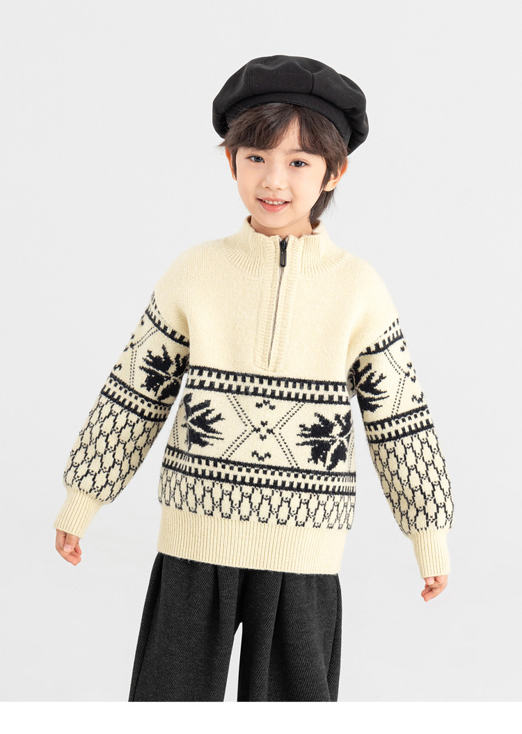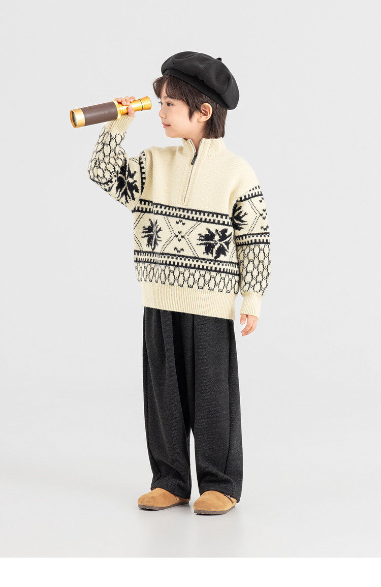 【件件底价,童装双倍积分】多多家男童毛衣半拉链费尔岛针织衫2025秋冬款新款儿童中大童上衣11356