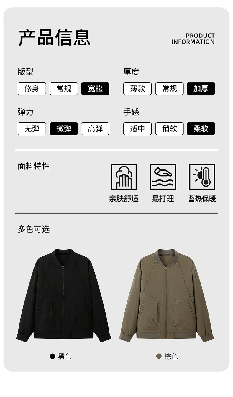 GXG男装25冬季日常通勤时尚潮流棒球领男式夹克外套