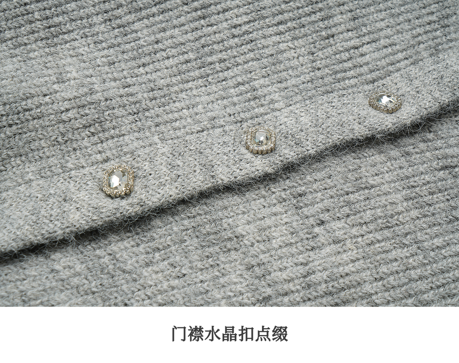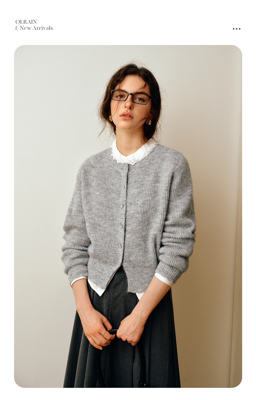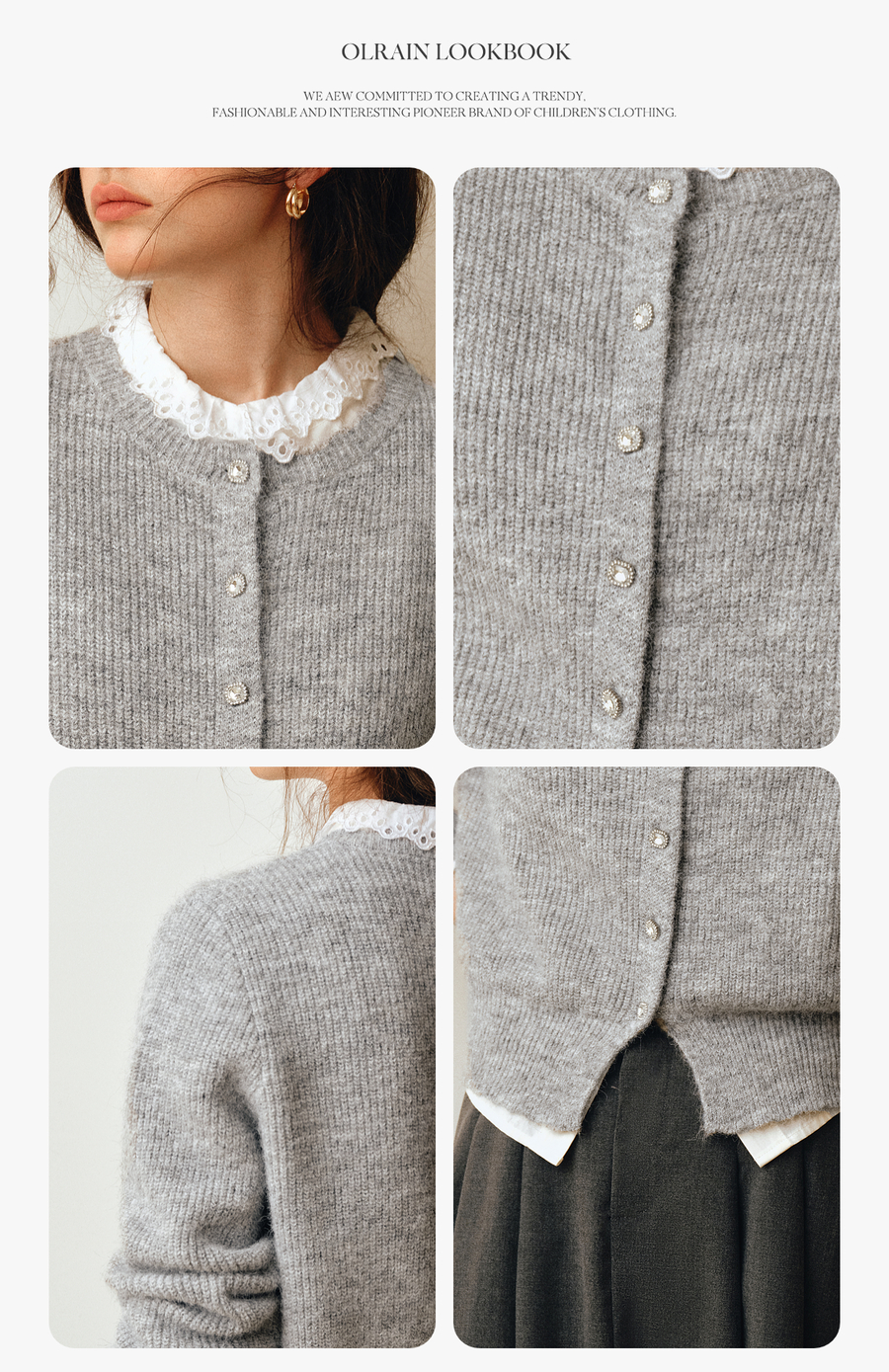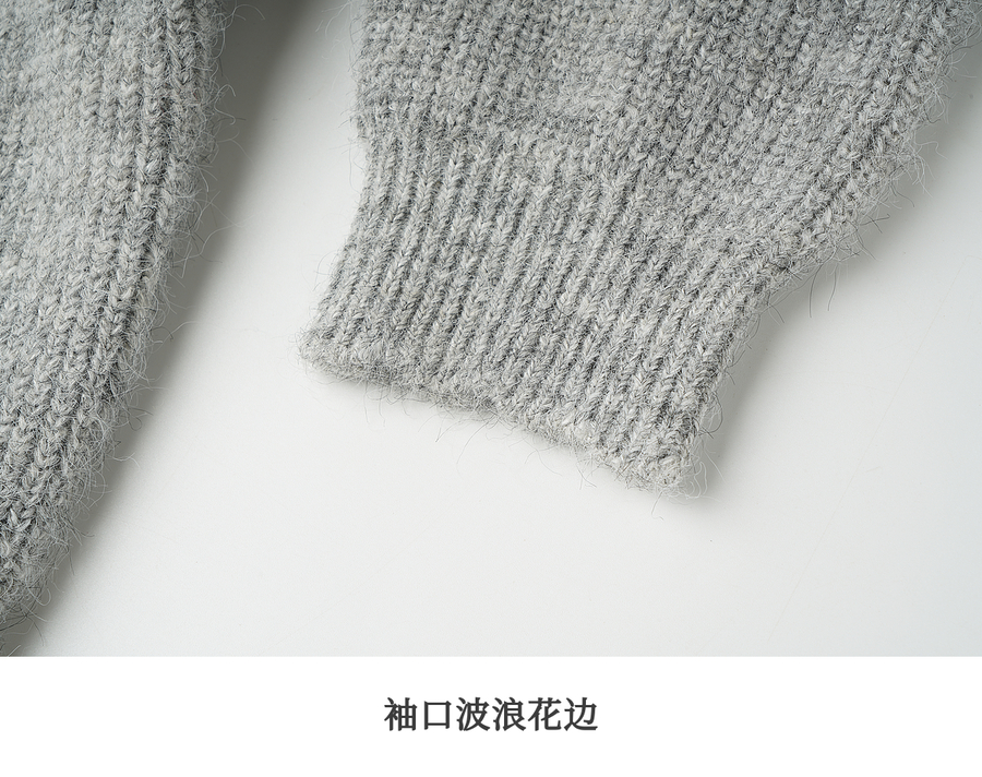 OLrain欧芮儿2025新款女秋季灰色法式毛针织开衫圆领羊毛长袖上衣