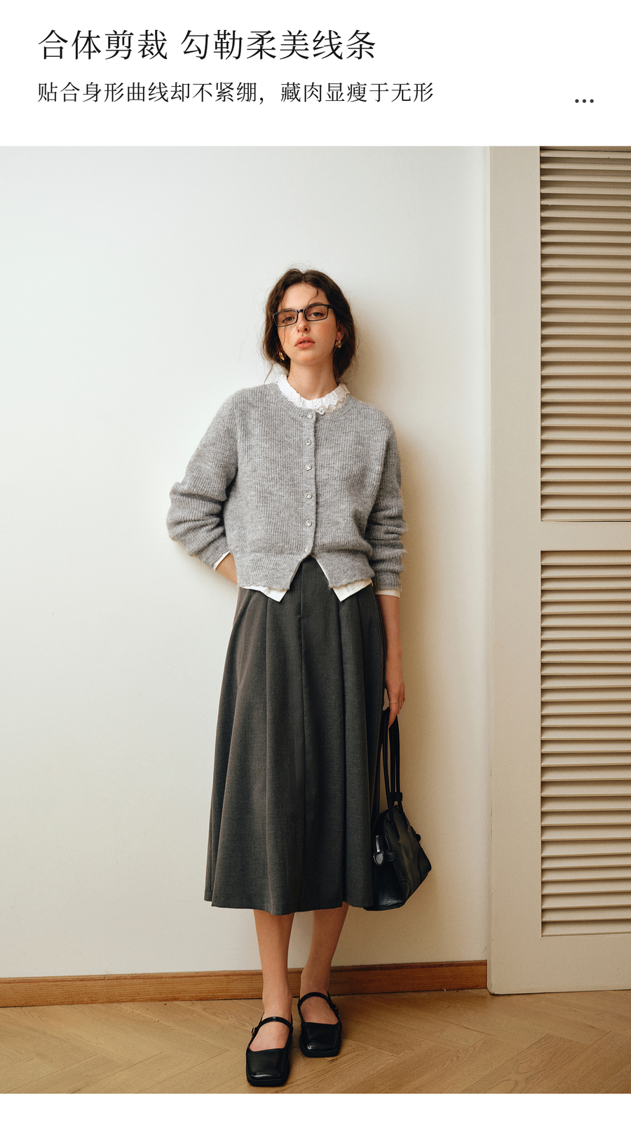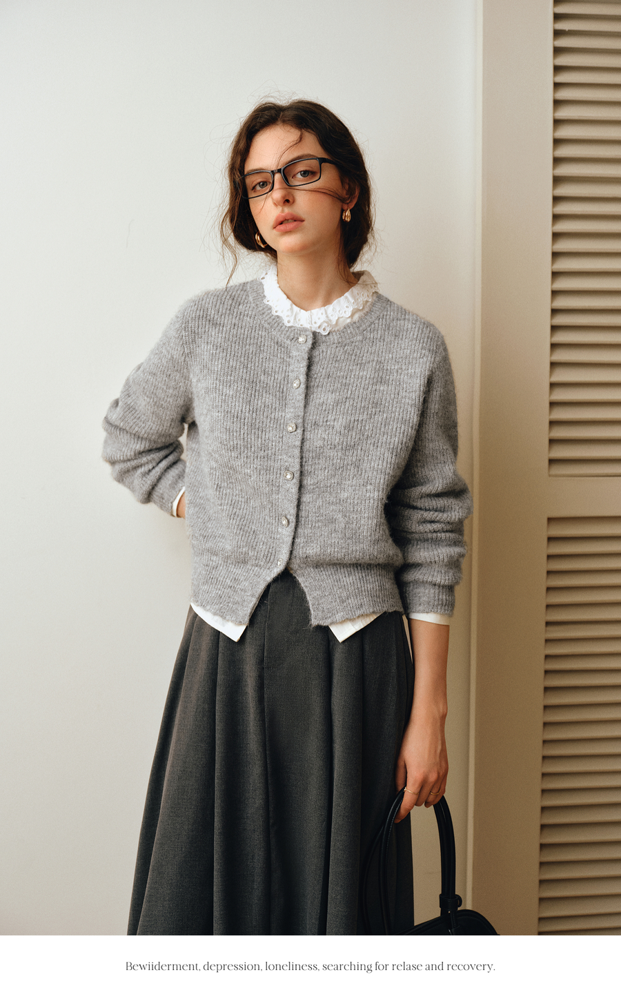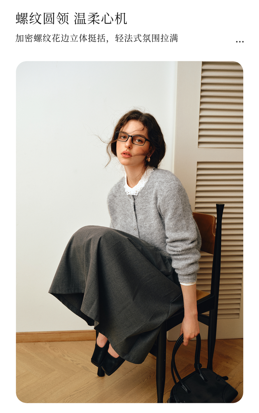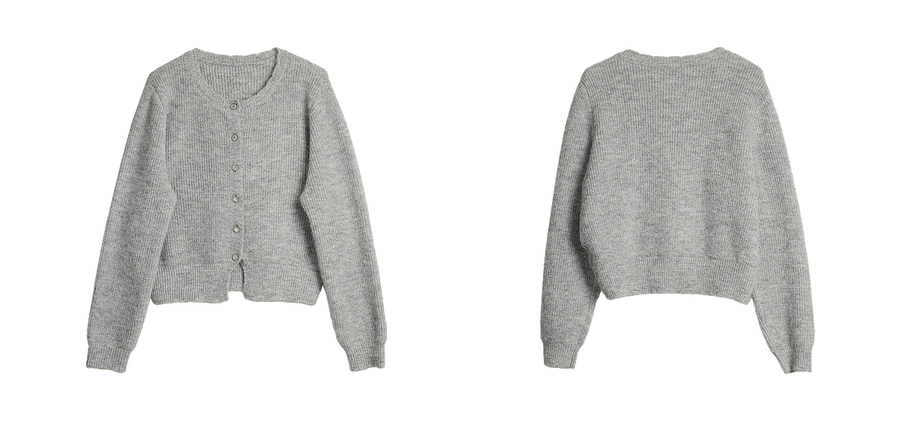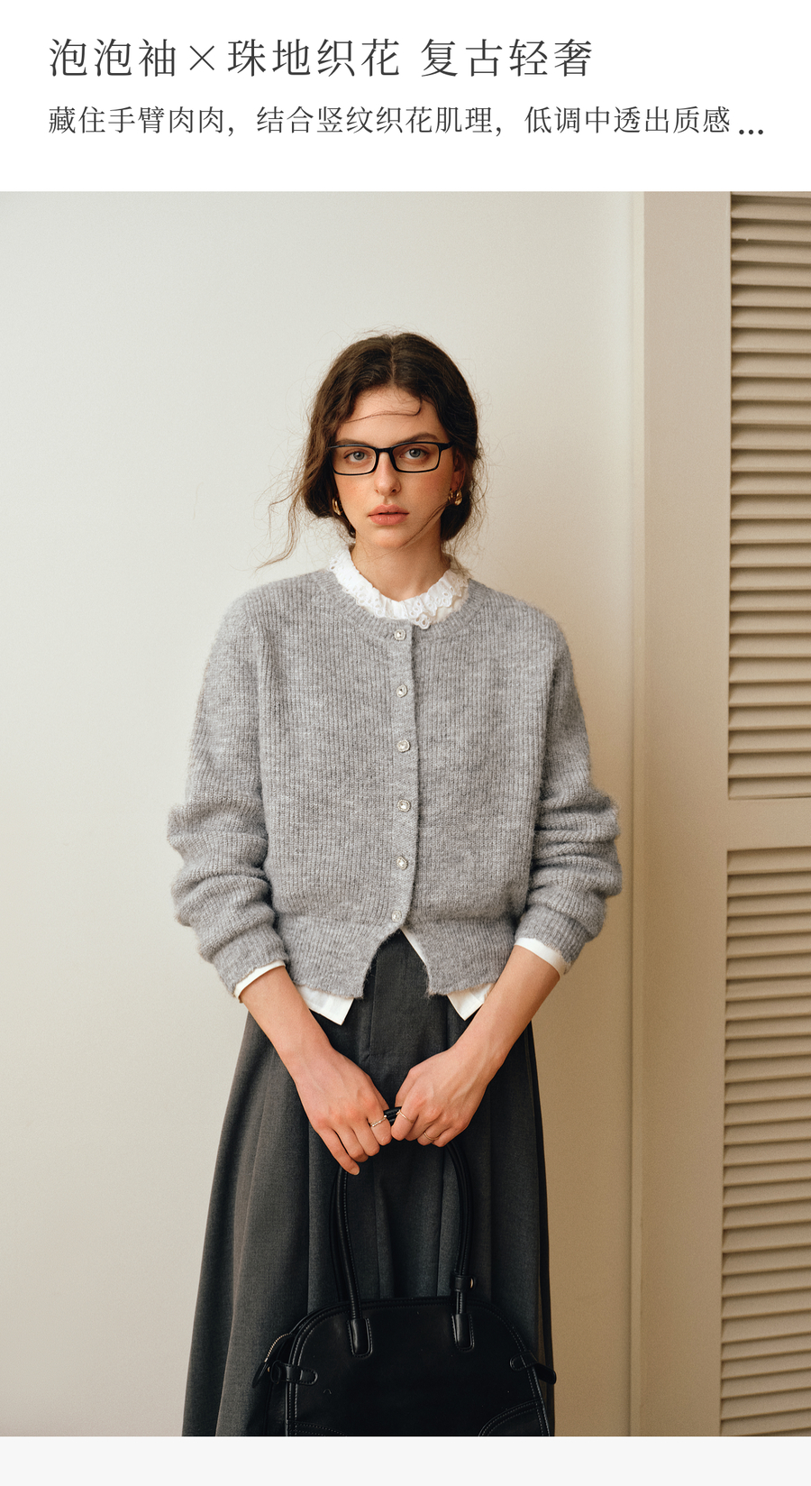OLrain欧芮儿2025新款女秋季灰色法式毛针织开衫圆领羊毛长袖上衣