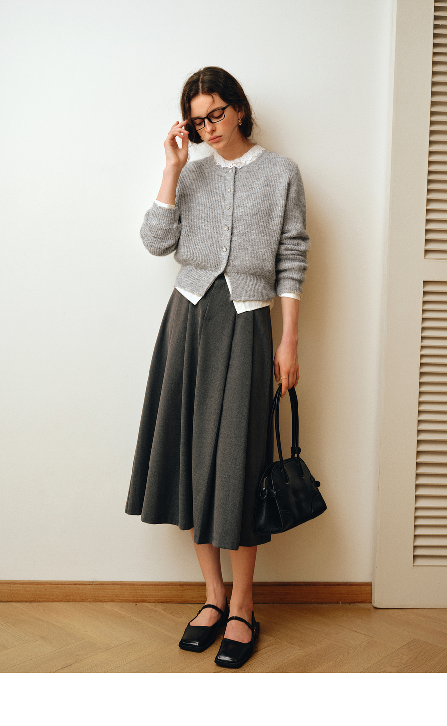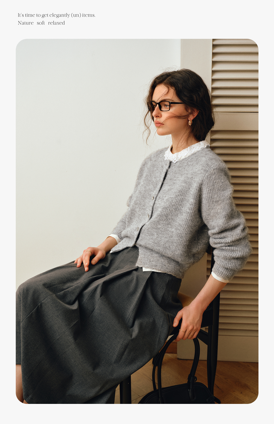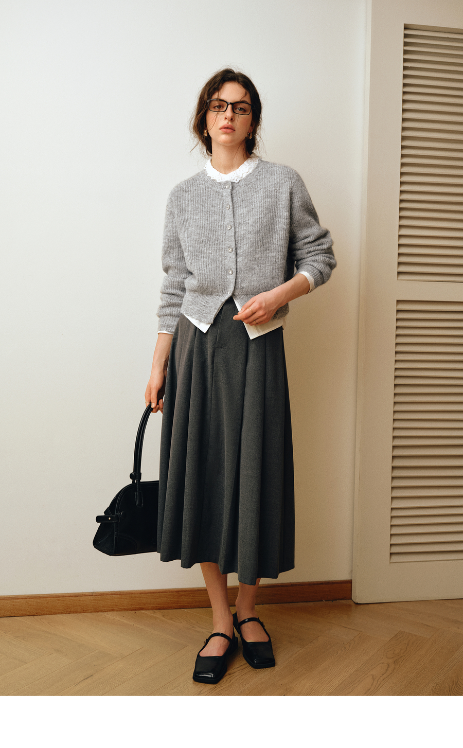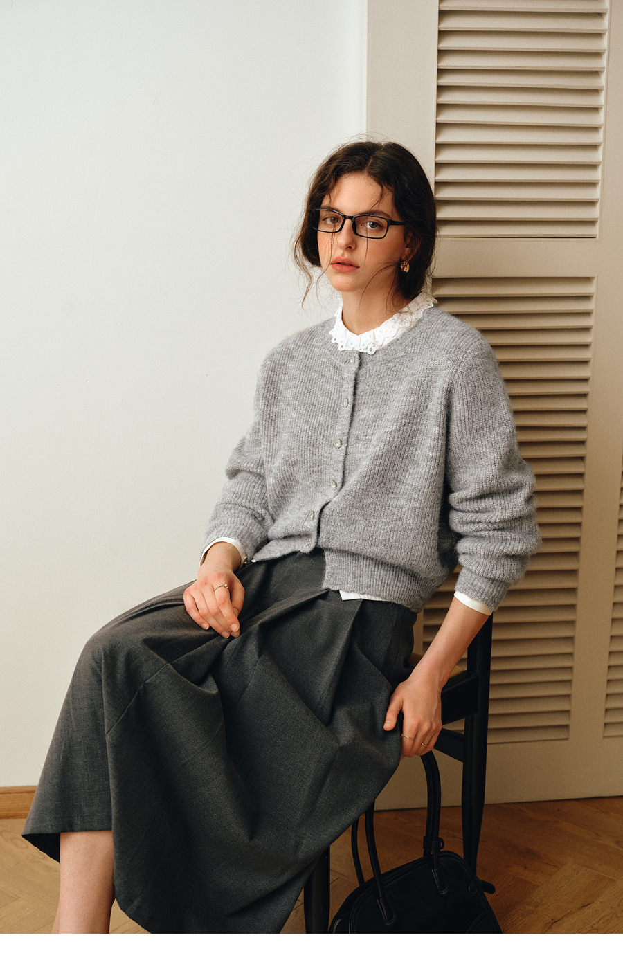 OLrain欧芮儿2025新款女秋季灰色法式毛针织开衫圆领羊毛长袖上衣