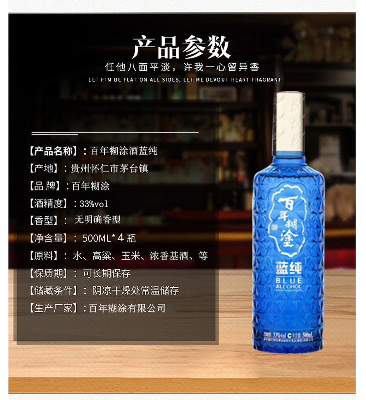 百年糊涂蓝纯浓香型白酒33度500ml/1瓶/2瓶