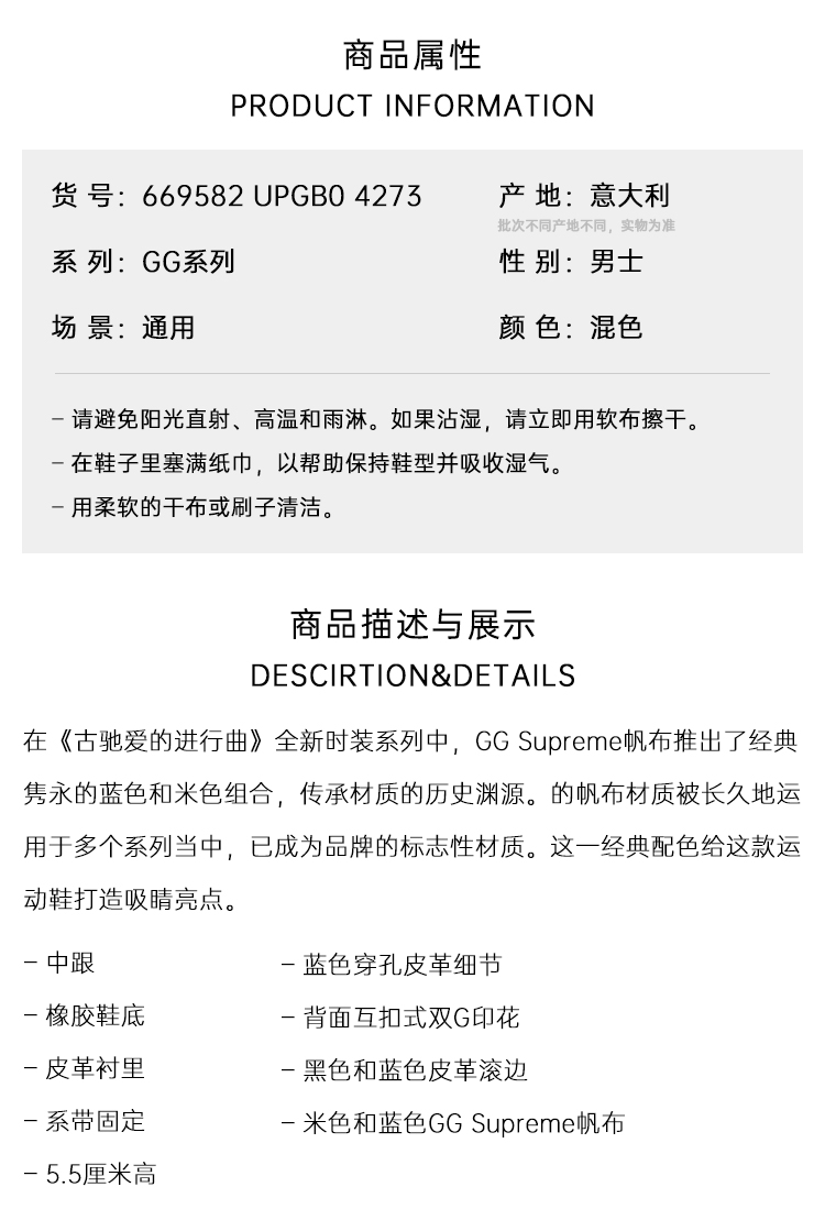【五】GUCCI 古驰 男士GG厚底运动鞋 混色 669582 UPGB0 4273