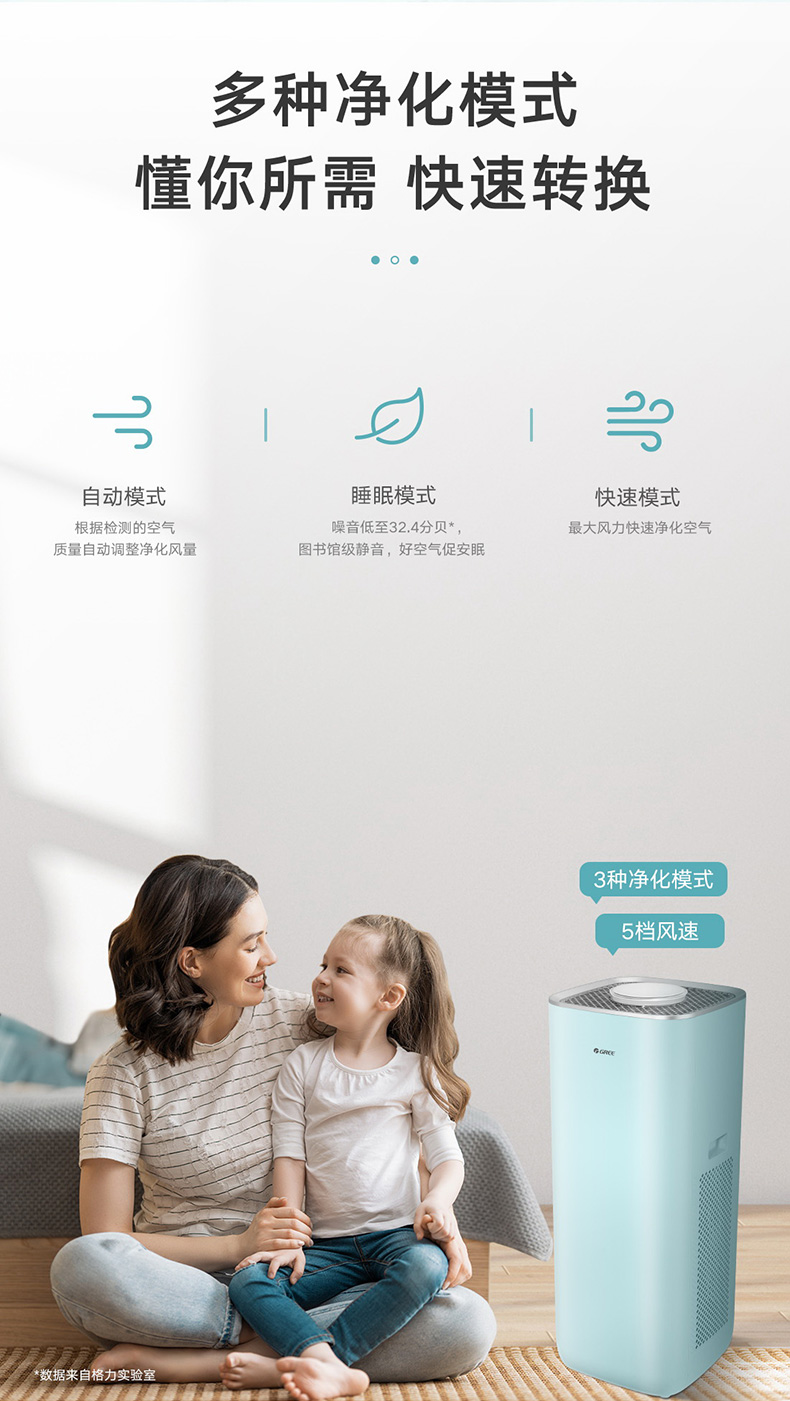 GREE KJ520G-A01 过滤式空气净化器除甲醛除PM2.5家用