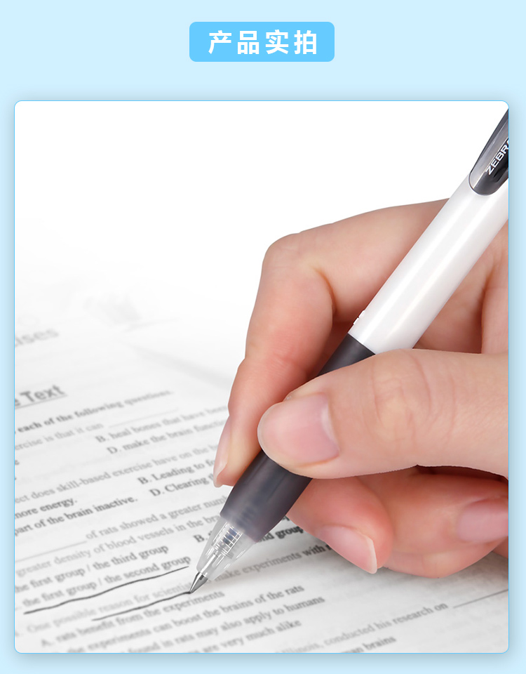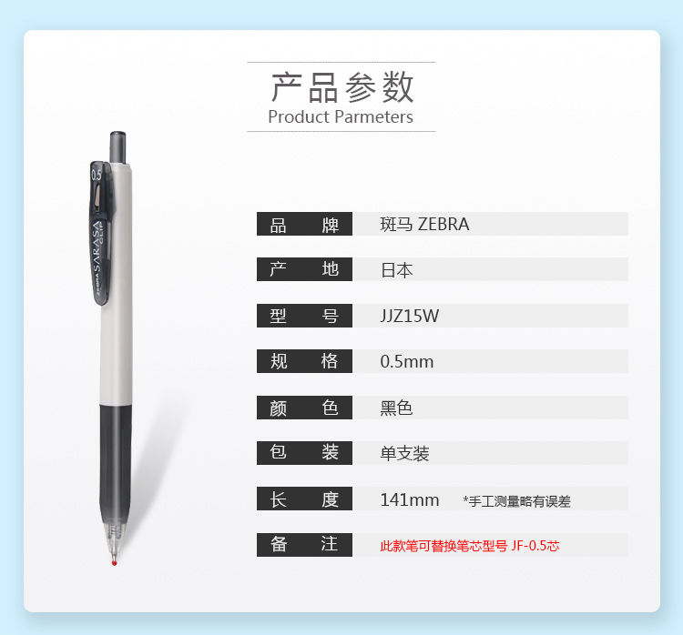 斑马中性笔JJZ15W-BK子弹头按压签字笔大容量学生办公走珠笔