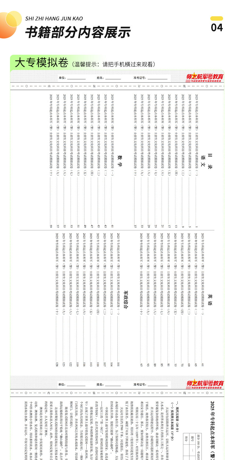 2025包邮战士考军校复习军考试卷仿真练习模拟题仿真试题