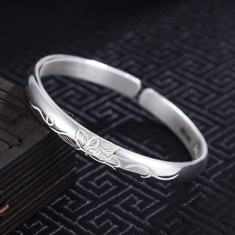 【寓意】:手镯采用錾刻工艺打造,寥寥几笔勾勒出莲花神韵,大面积抛光留白,呈现克制的东方美学特质。作品寓意"莲莲"好运。