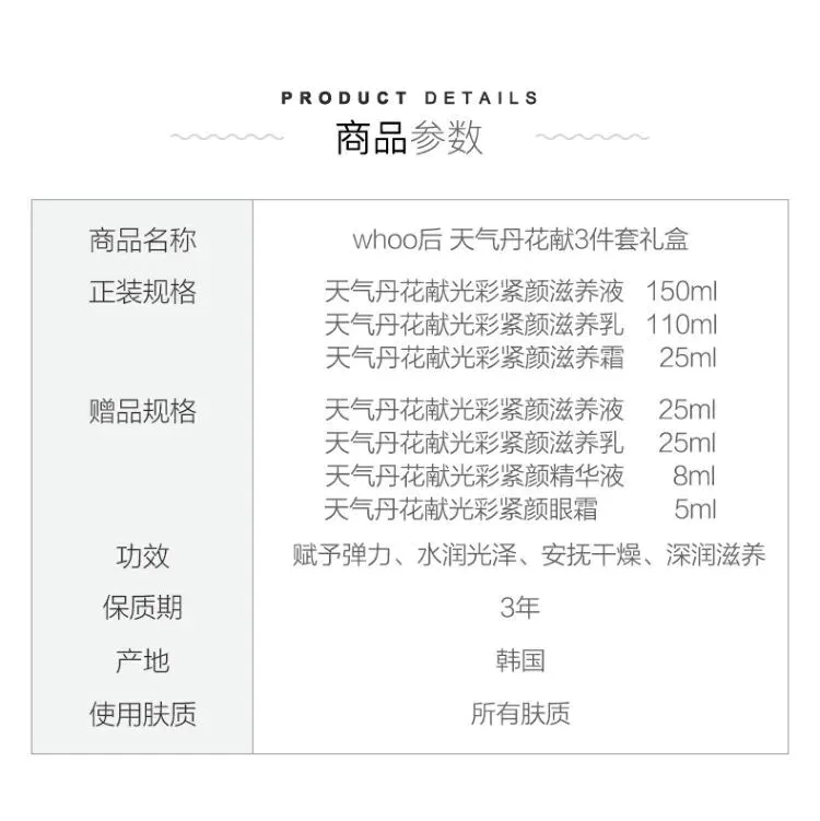 【香港直邮】后Whoo天气丹花献护肤七件套 修护滋养 全套呵护 新旧款随机发货(效期:2027/07/01)