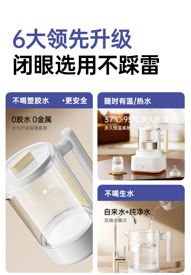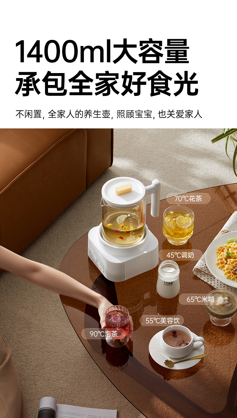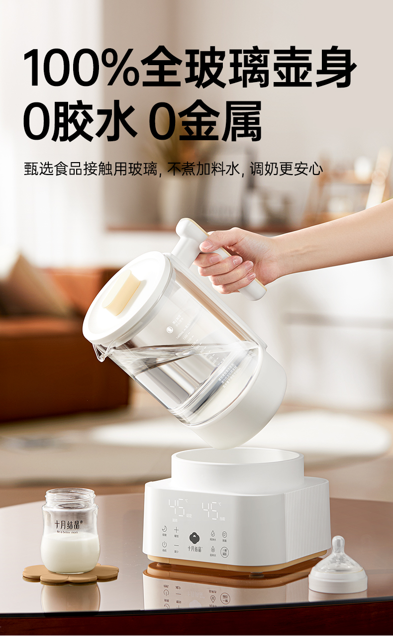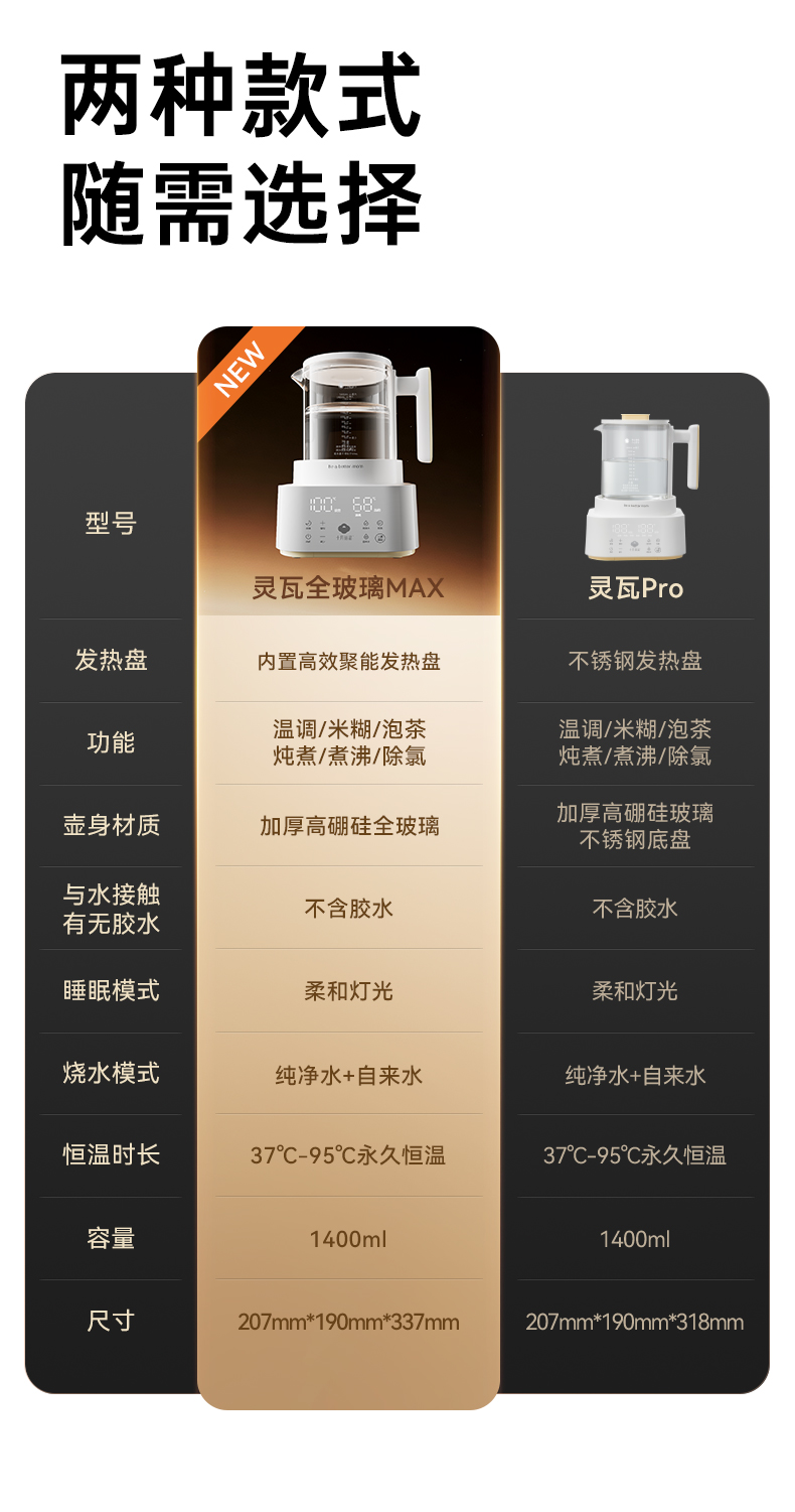灵瓦全玻璃恒温壶烧水壶多功能泡奶机