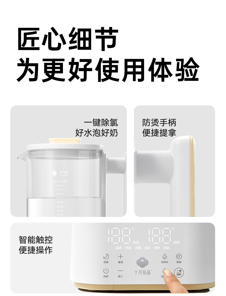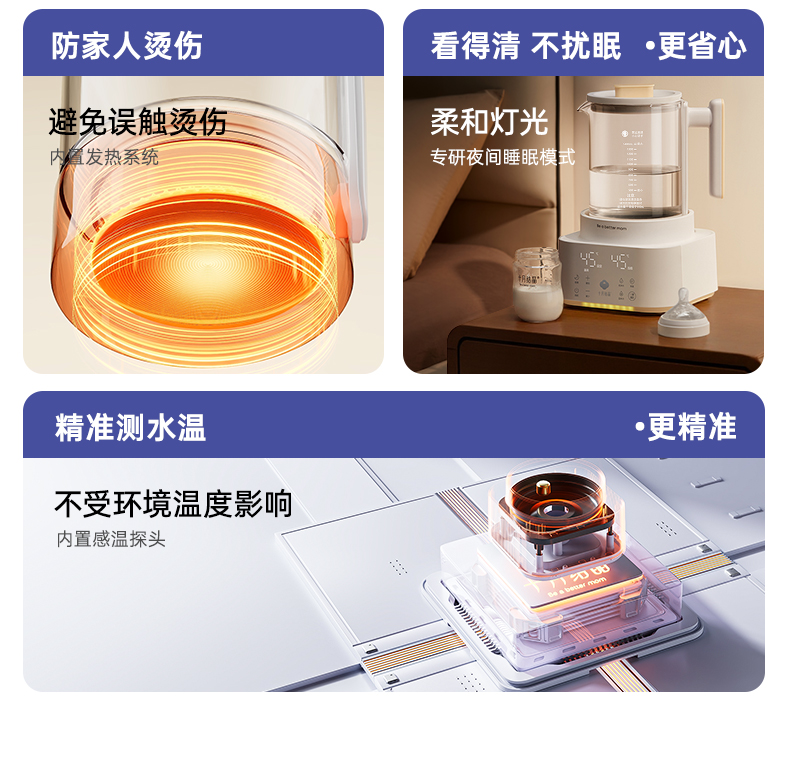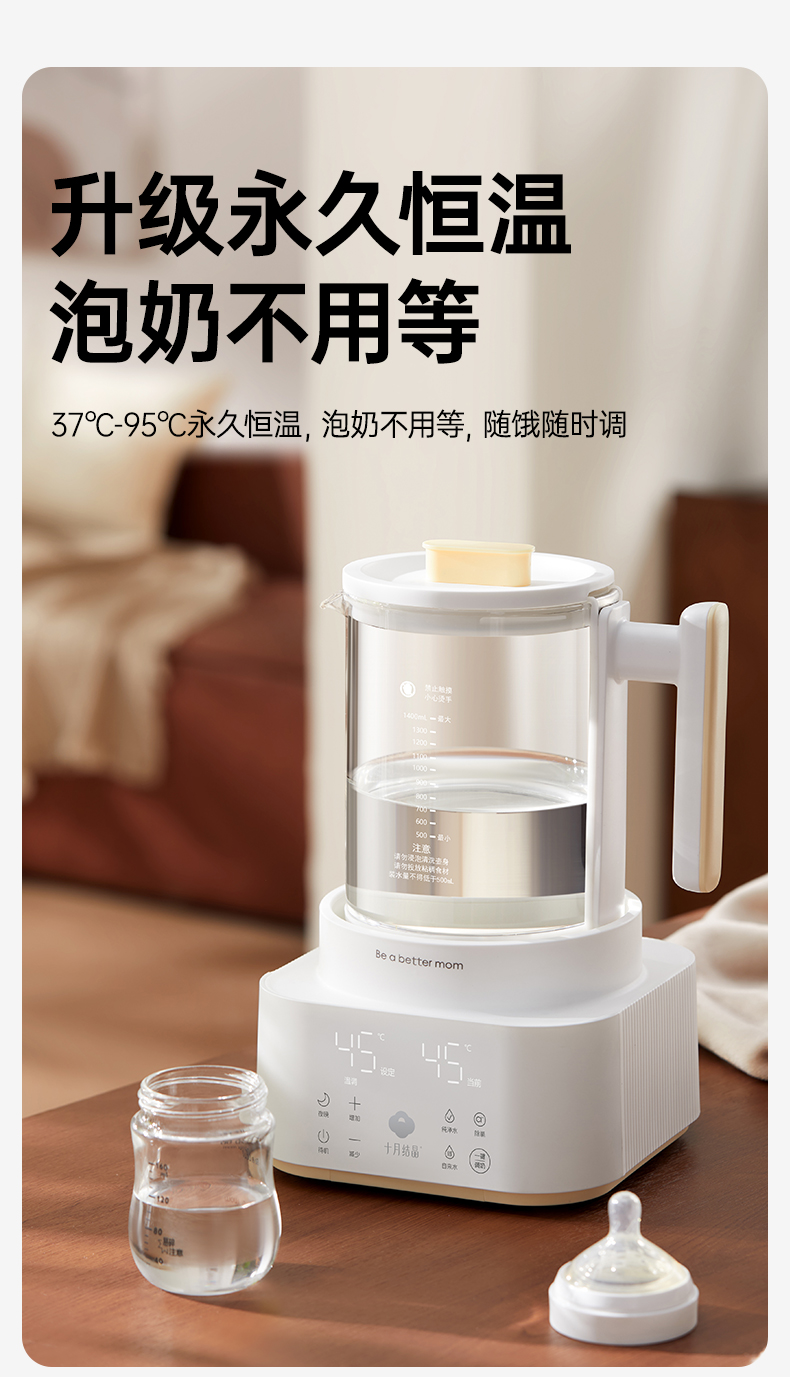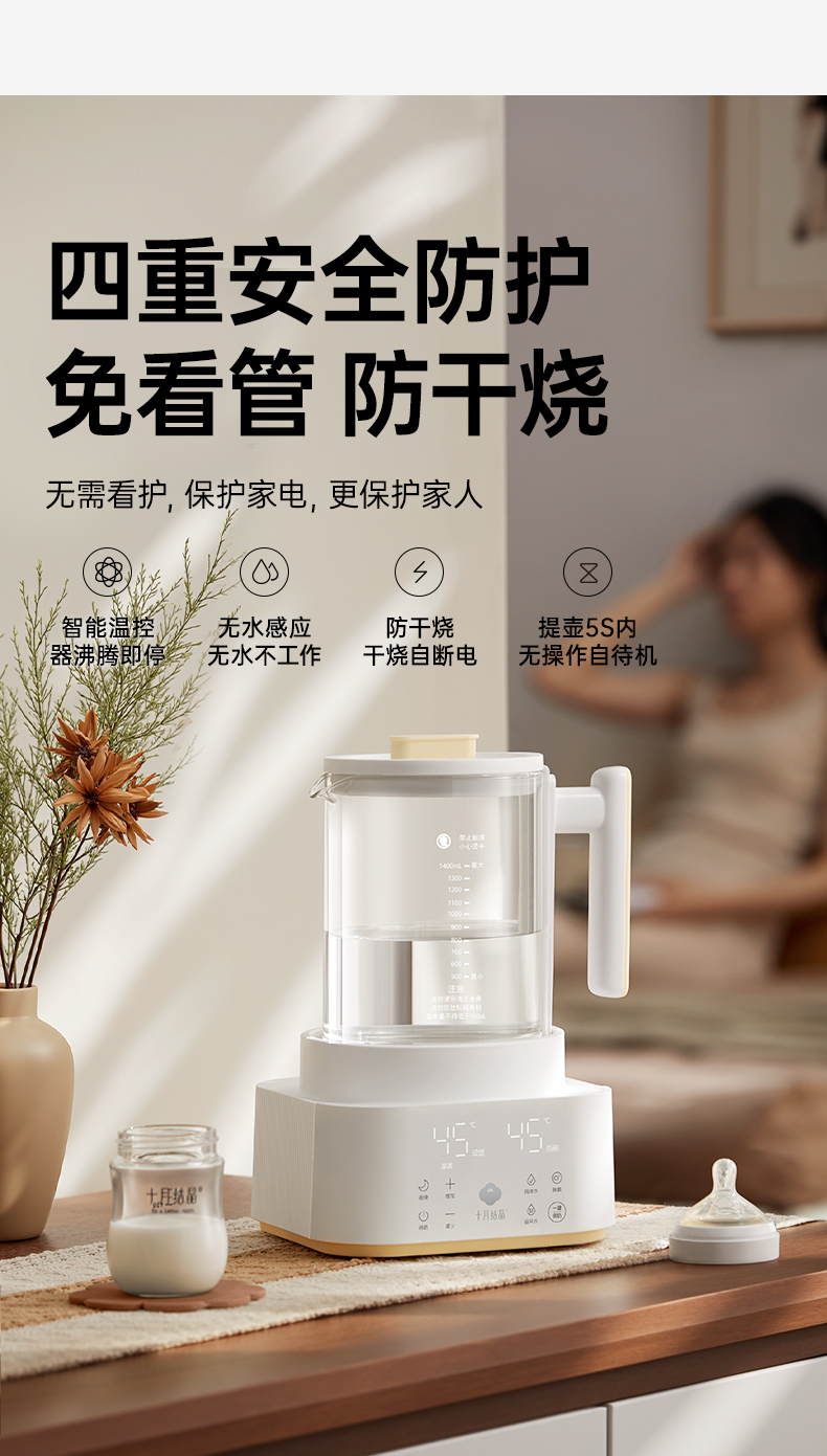 灵瓦全玻璃恒温壶烧水壶多功能泡奶机