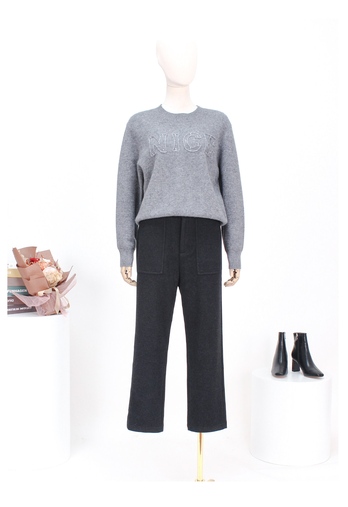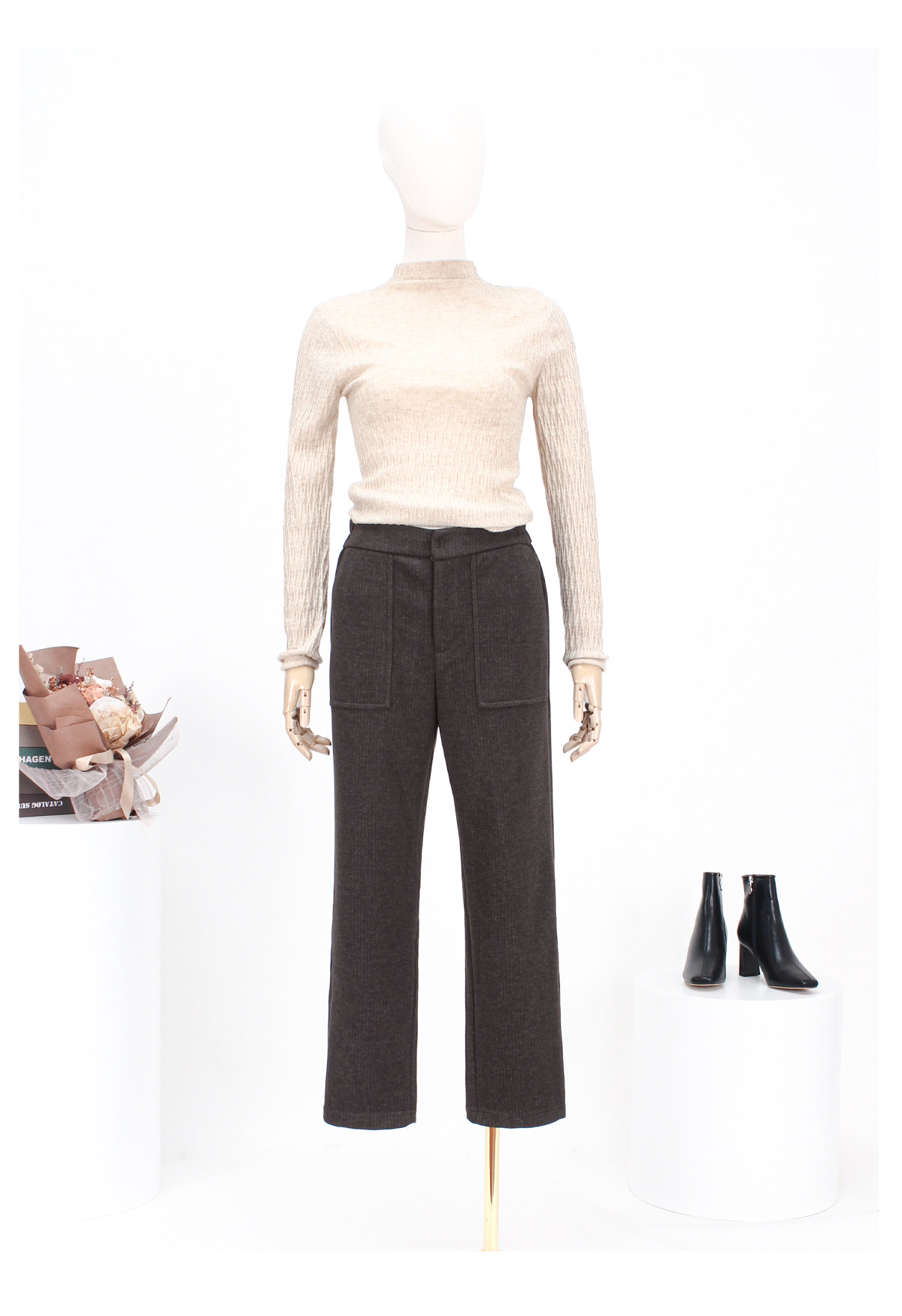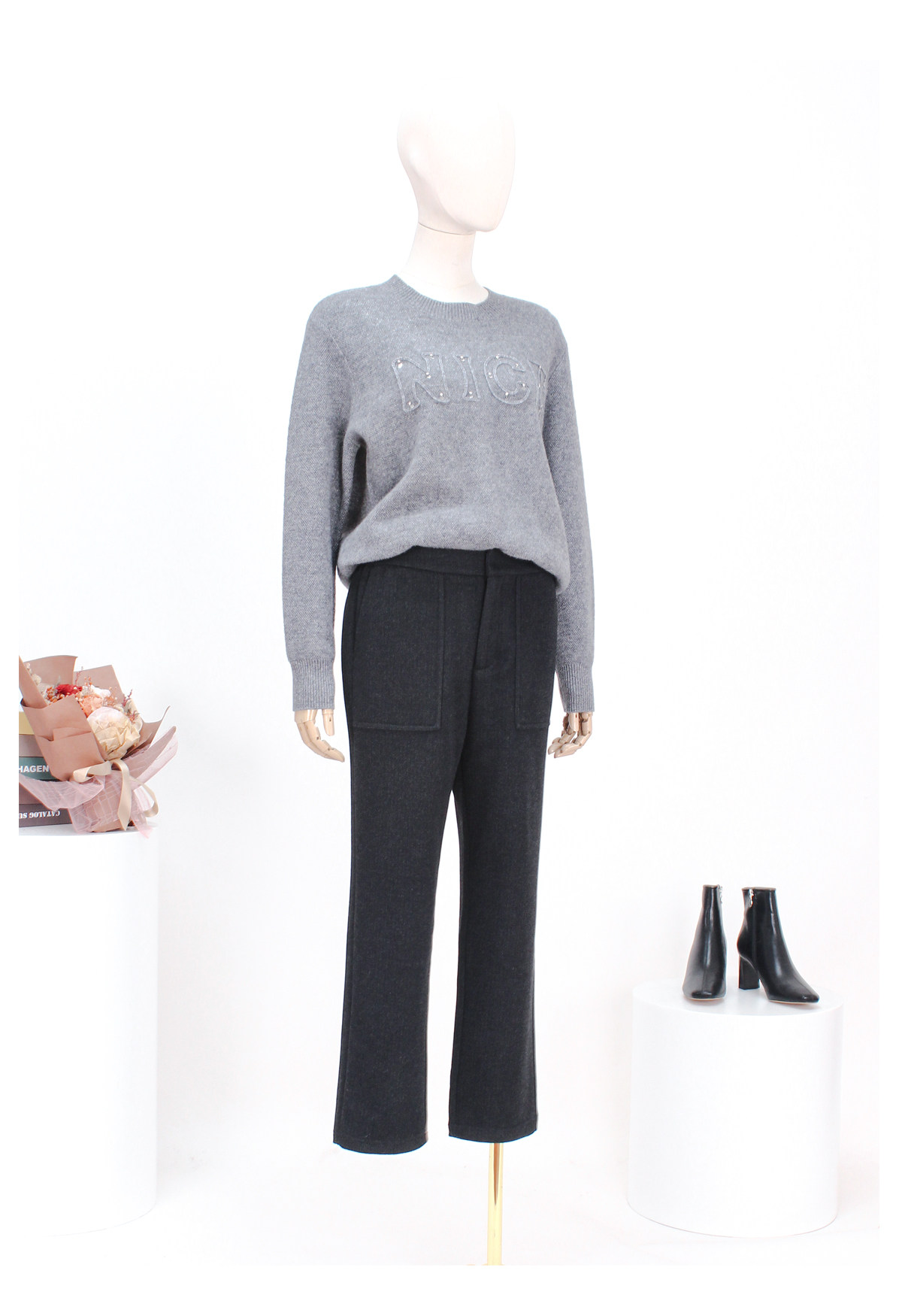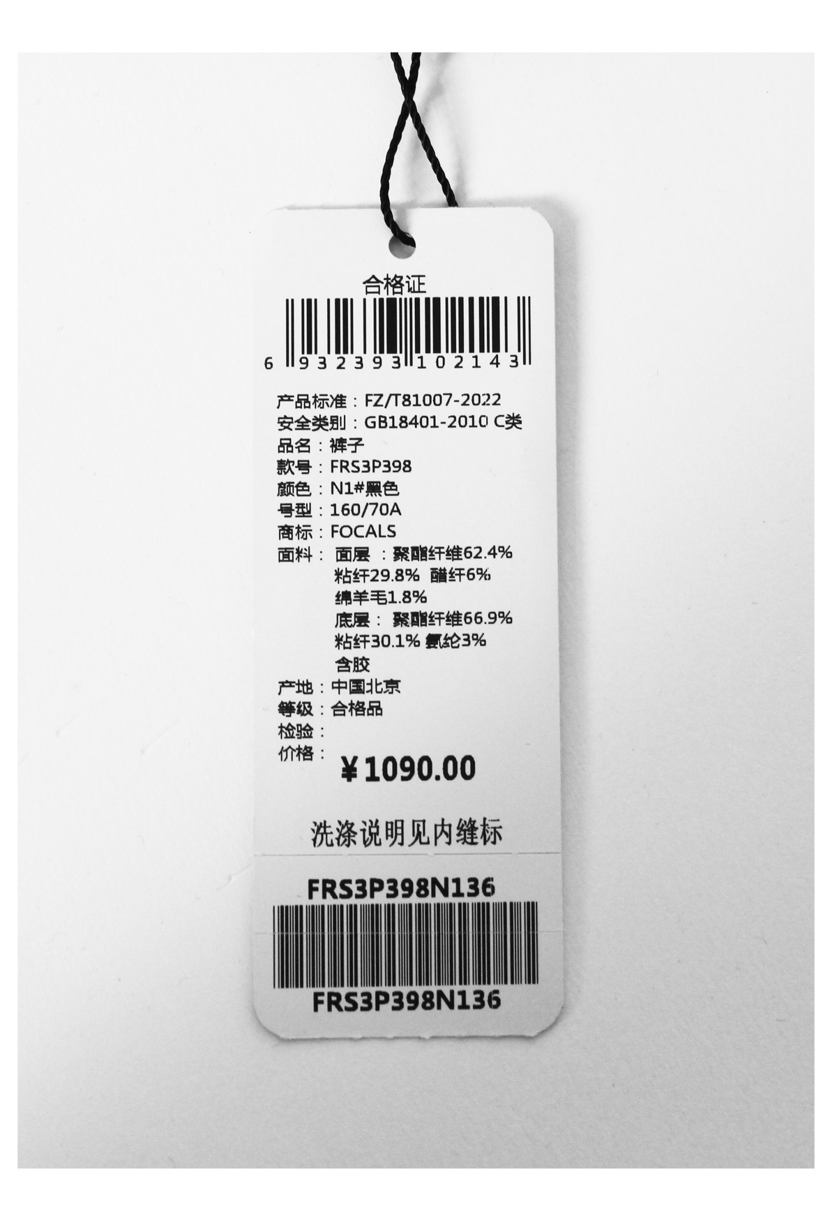 FOCALS福柯斯新款简约休闲通勤显瘦醋酸羊毛直筒九分裤FRS3P398