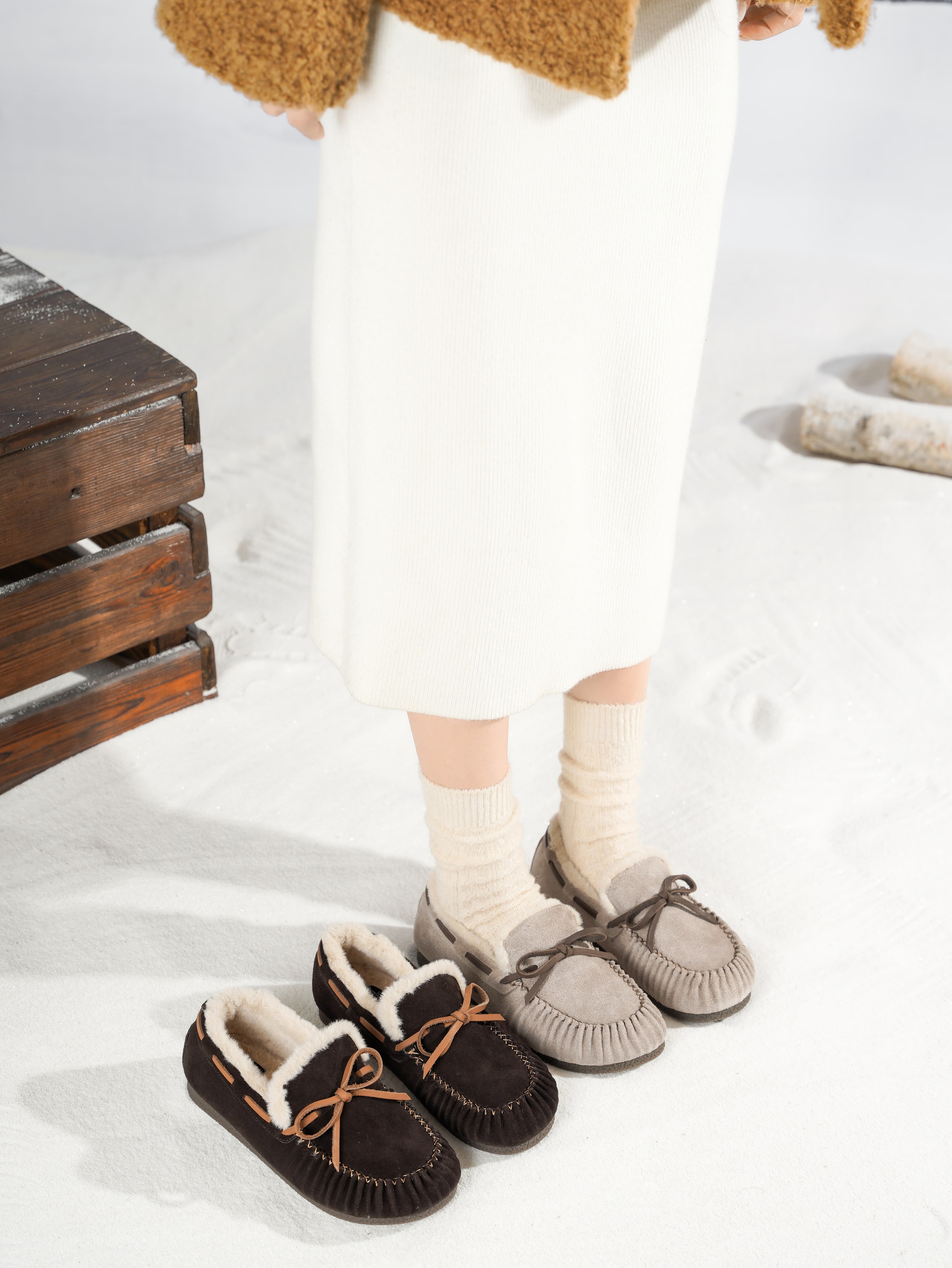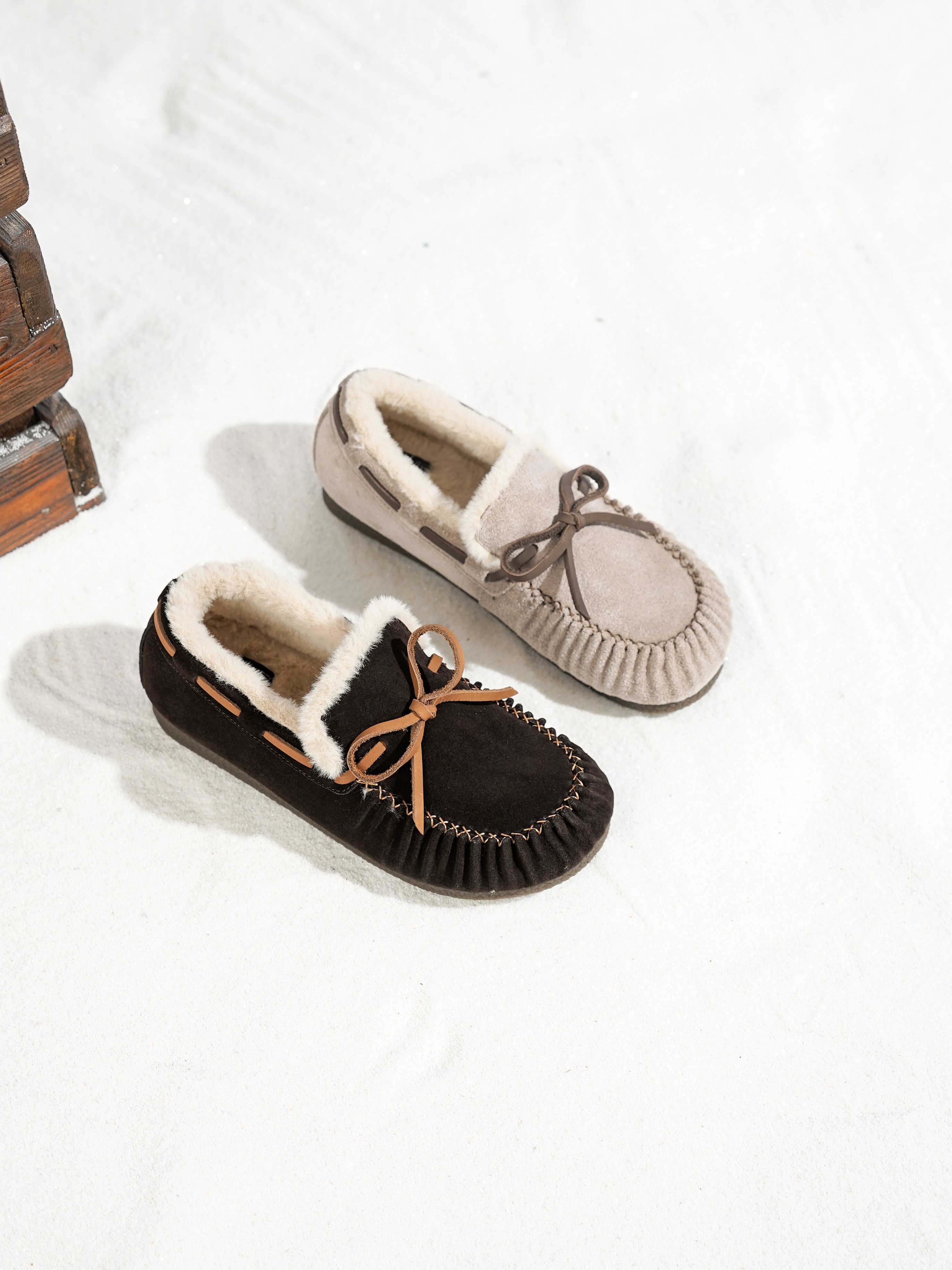 西村名物2025年冬季新款厚底防滑舒适保暖短筒毛毛鞋T25DM49361