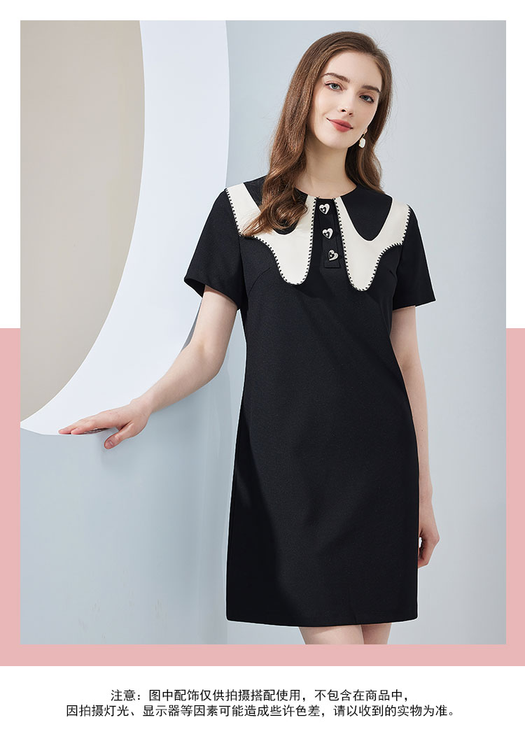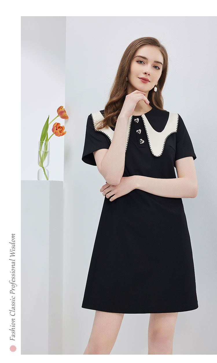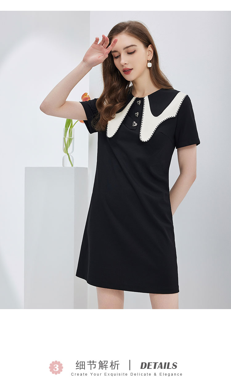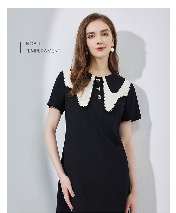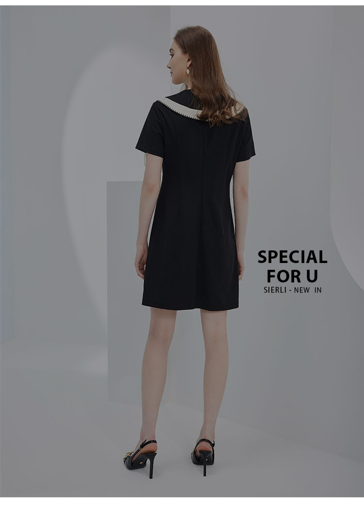 NF897斯尔丽瑟俪2023春夏新款法式优雅异形设计大领子减龄时尚连衣裙