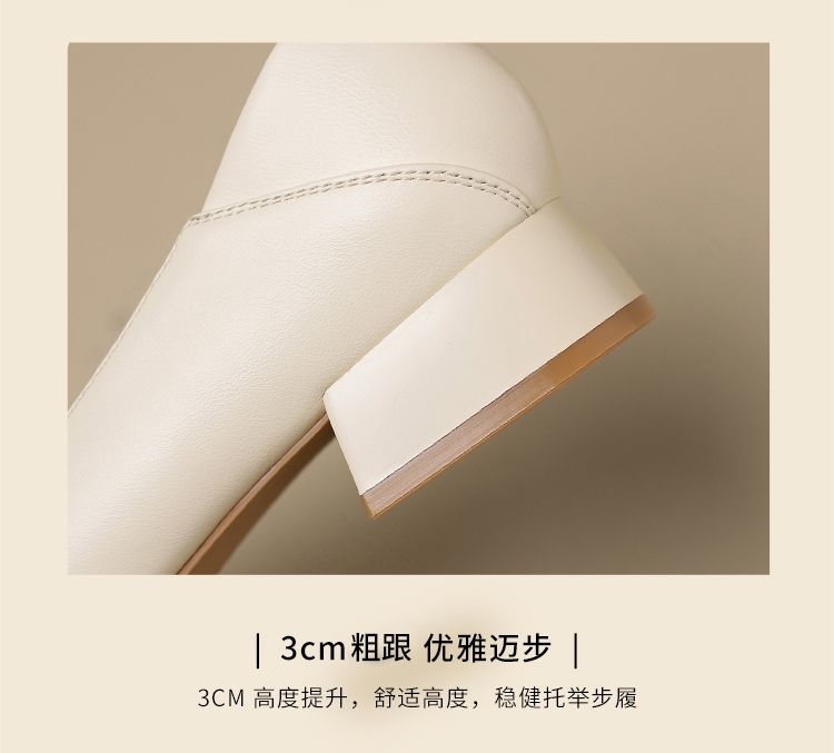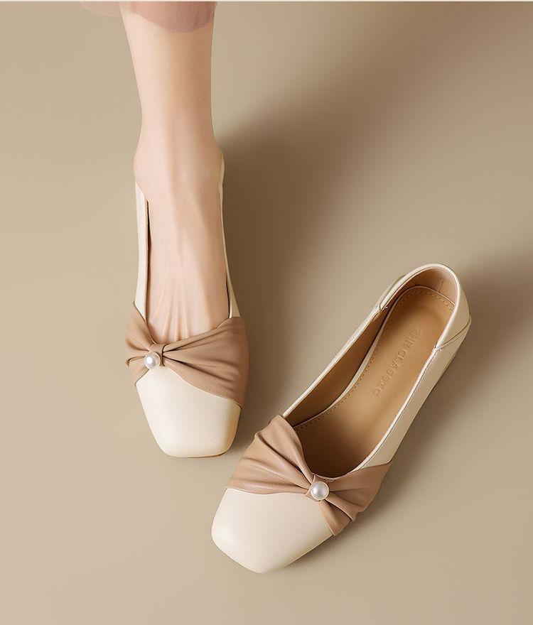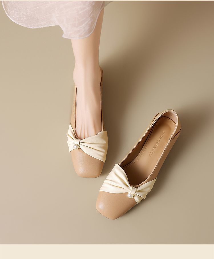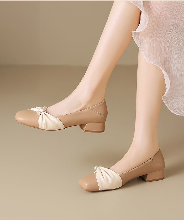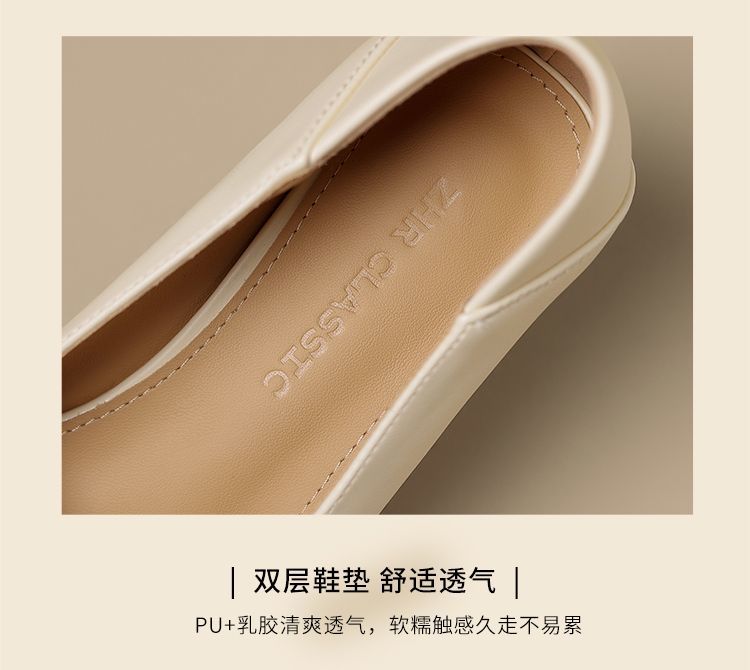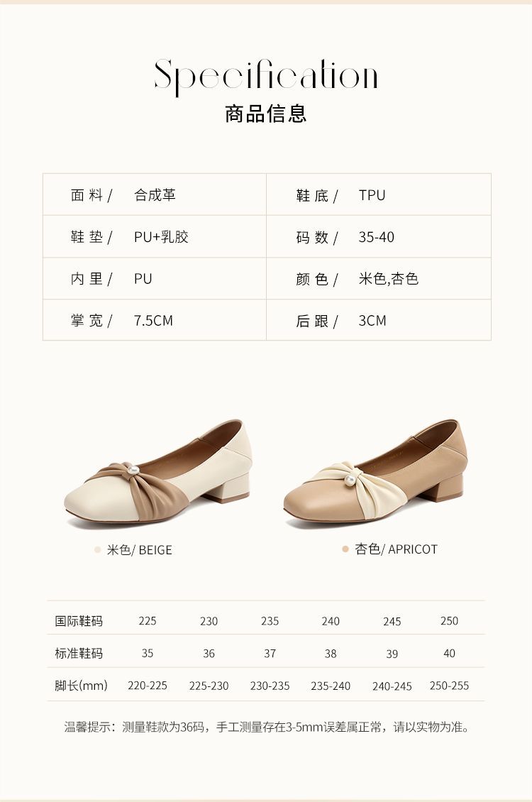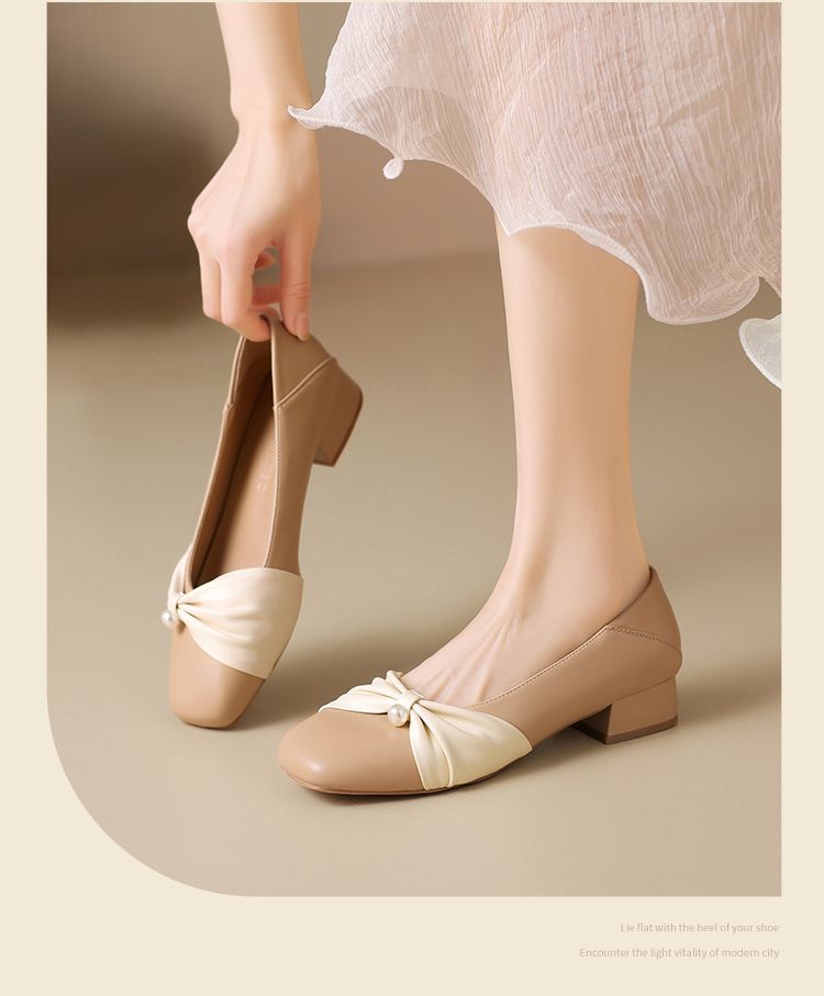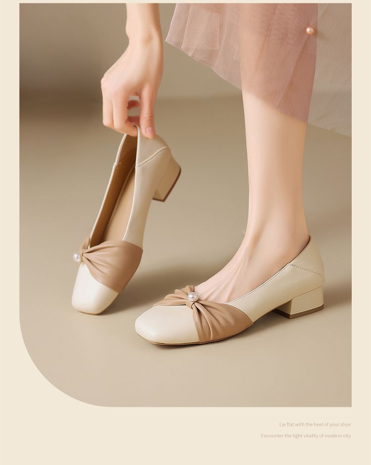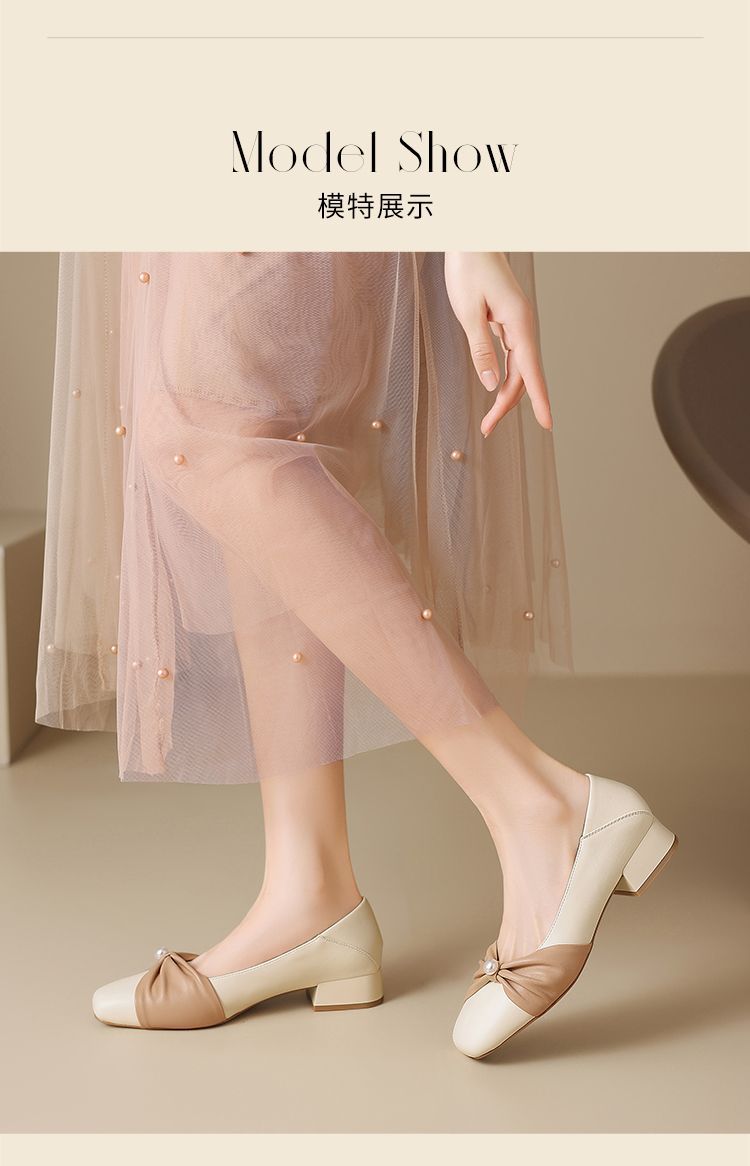 ZHR粗跟浅口玛丽珍鞋女蝴蝶结珍珠奶奶鞋轻便两穿女鞋法式小皮鞋