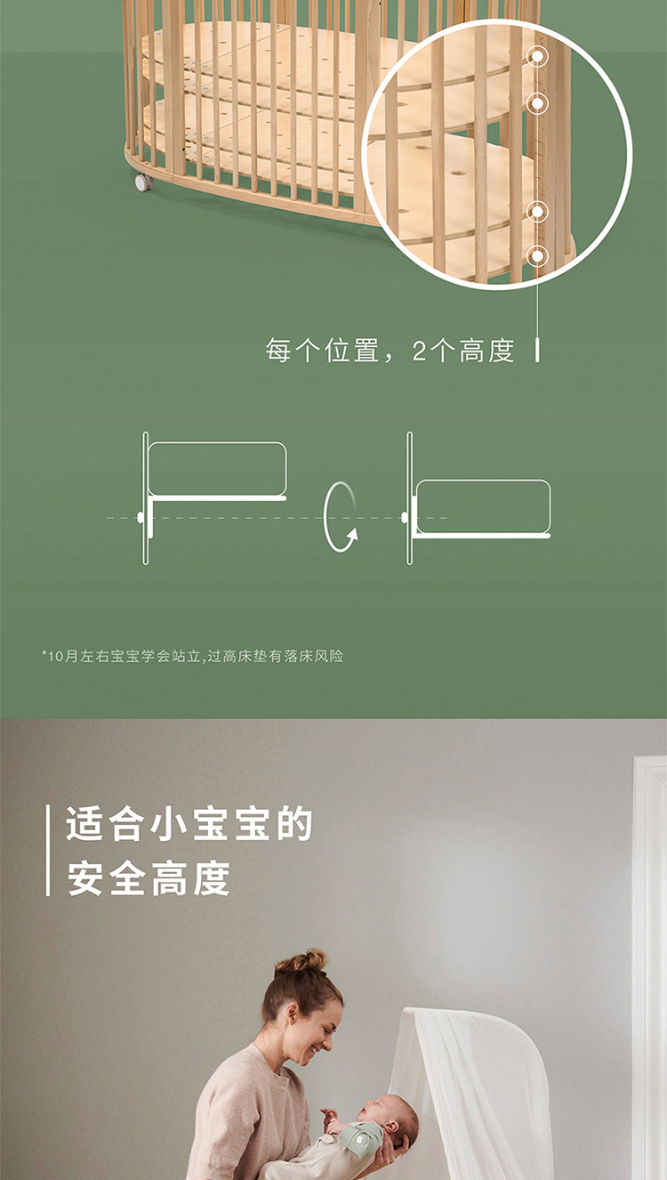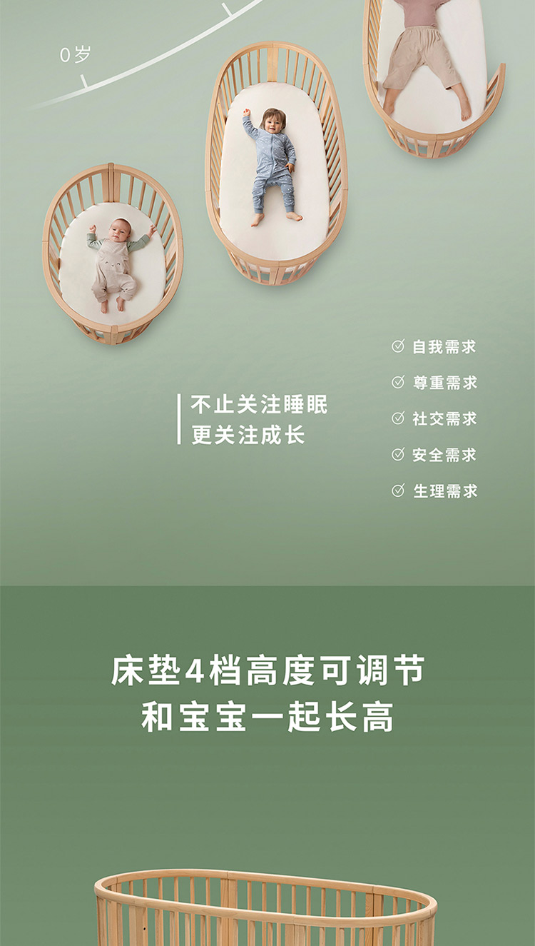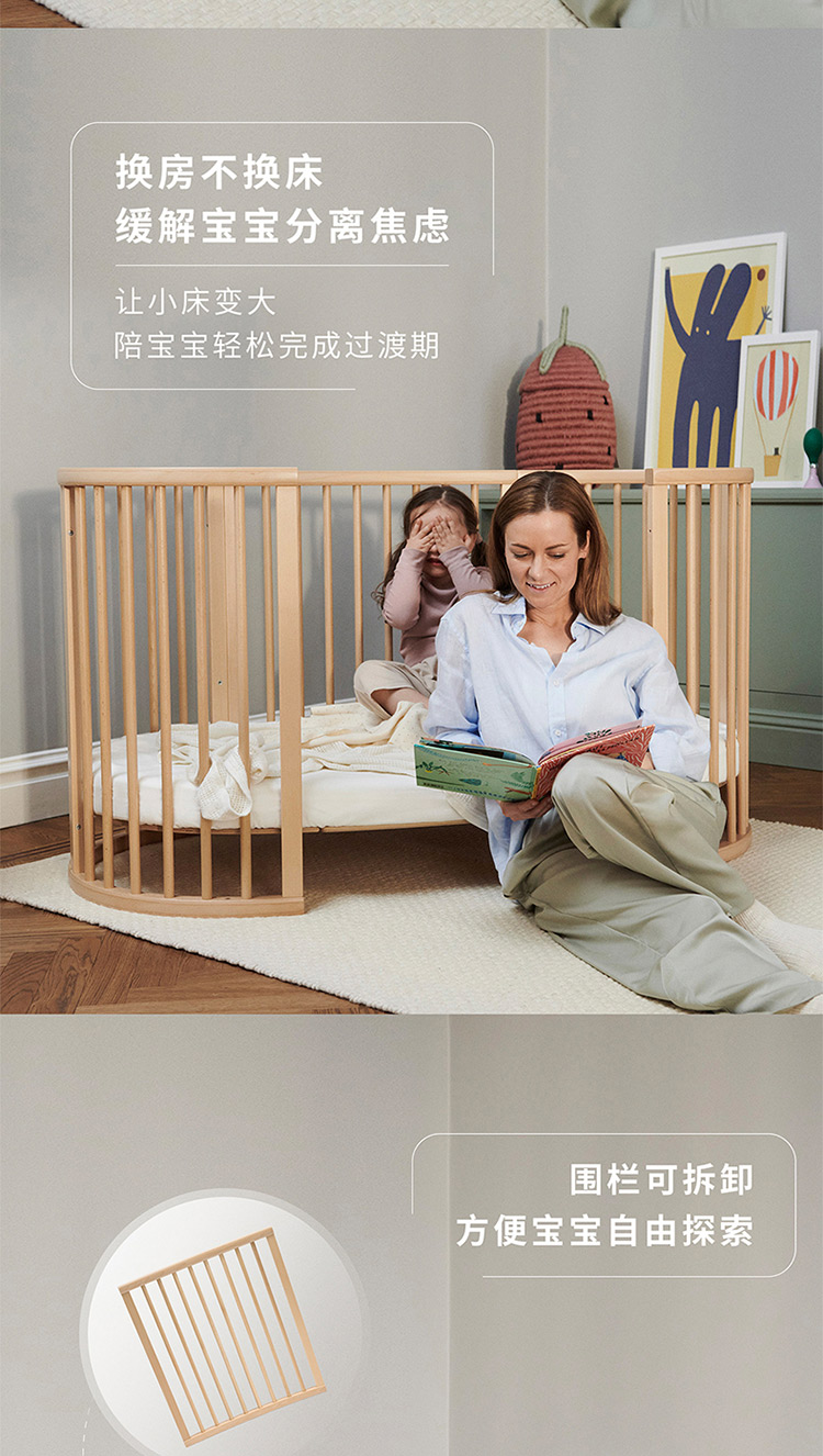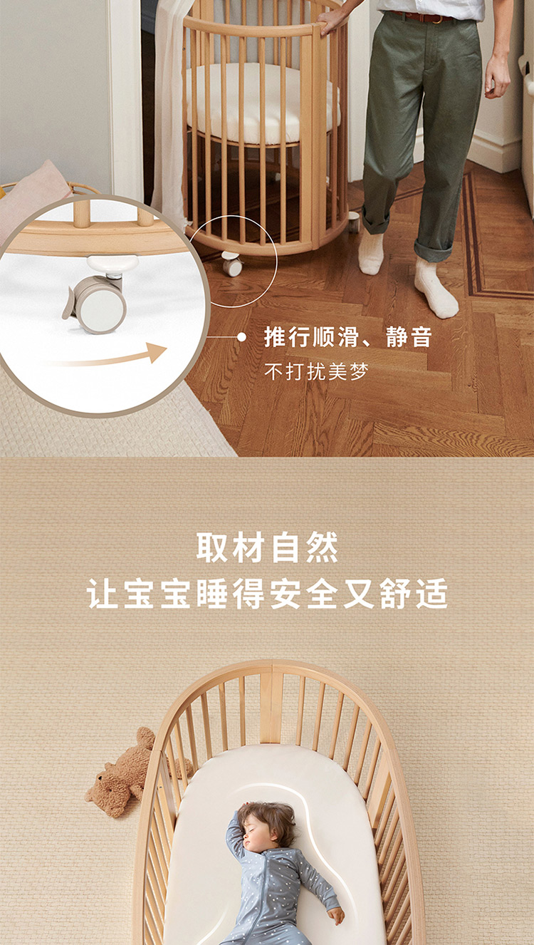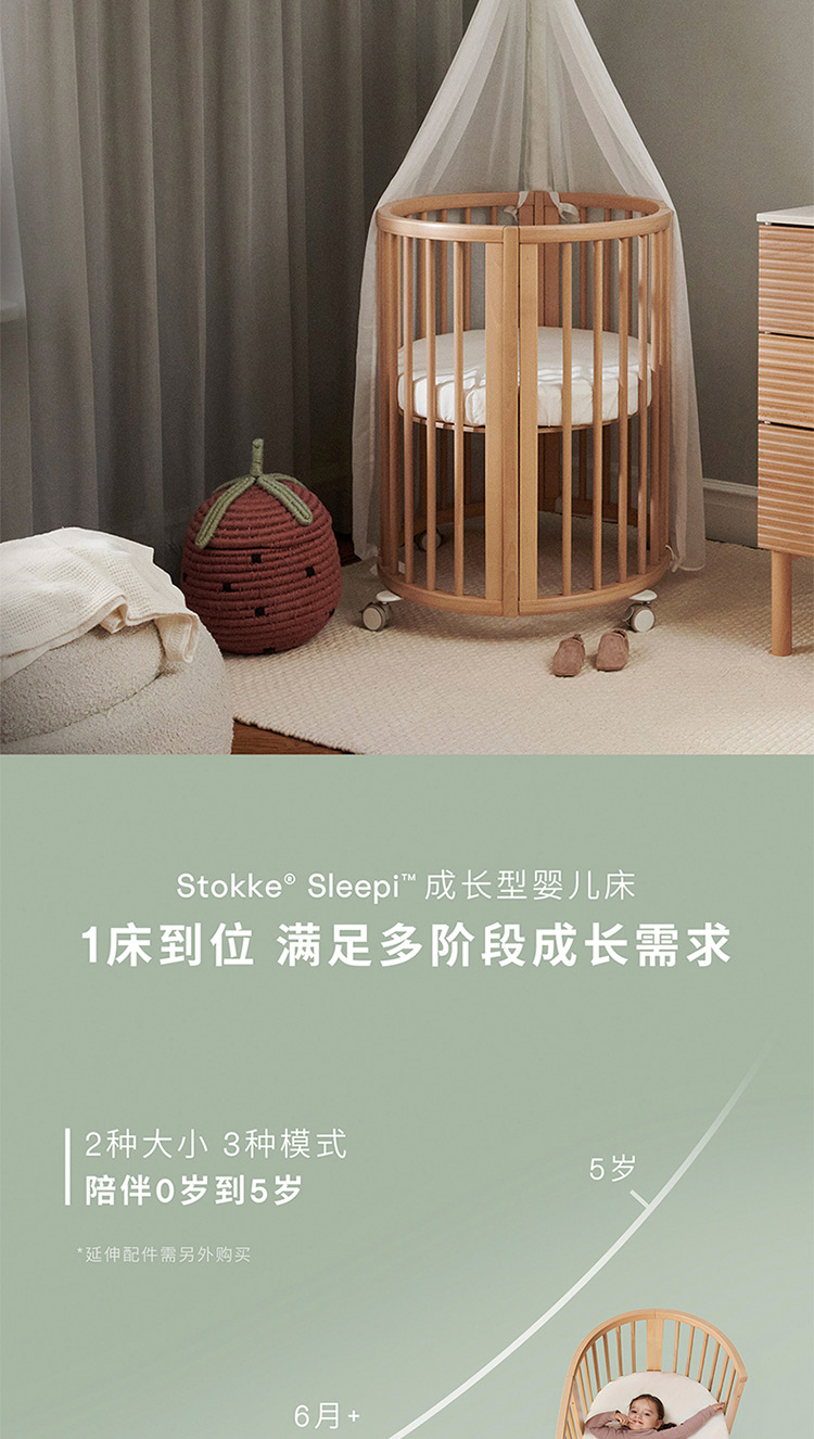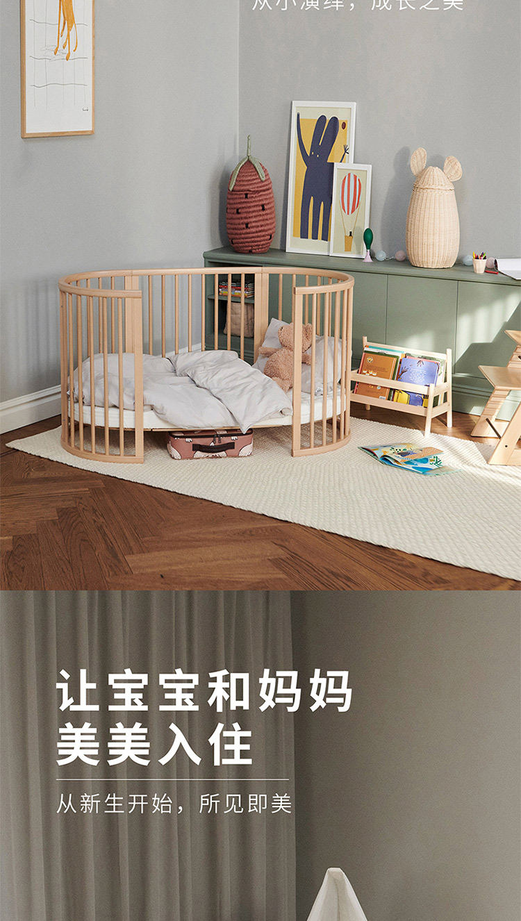 【新品】北欧Stokke Sleepi V3 成长型婴儿床实木宝宝床可移动儿童床拼接床(不含床垫)