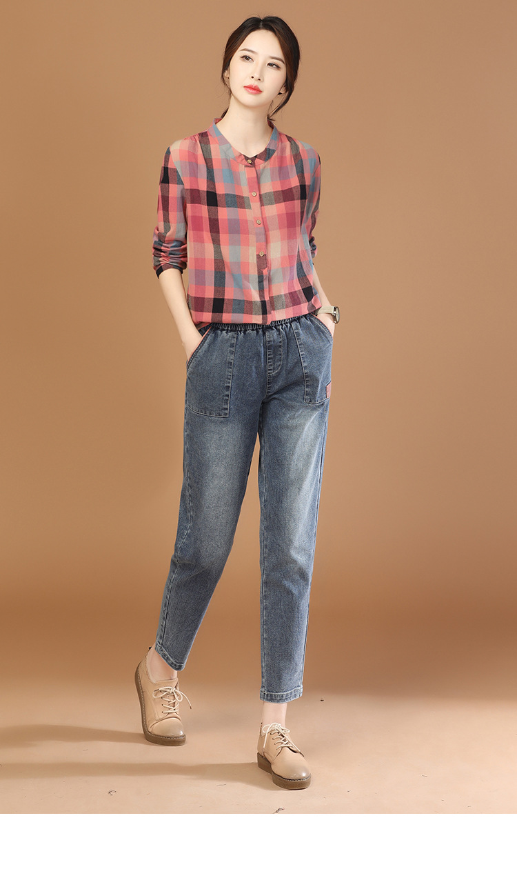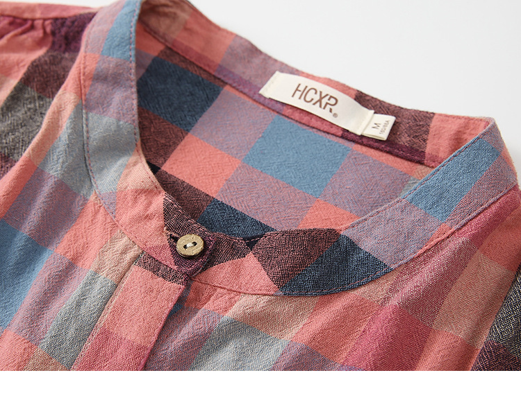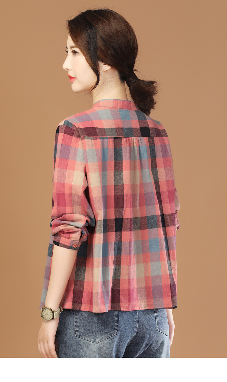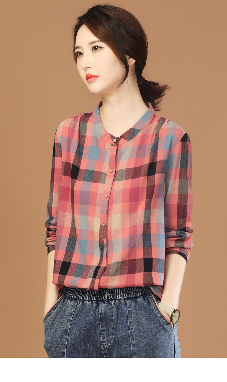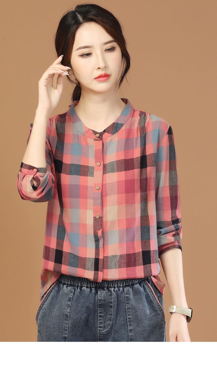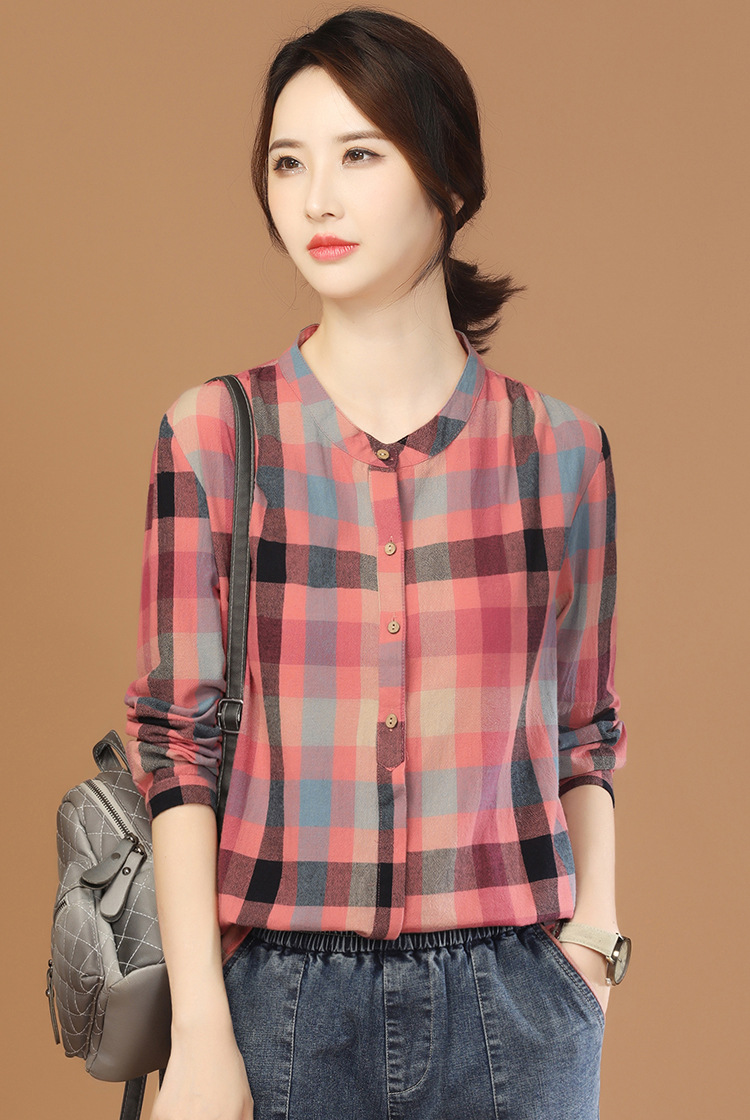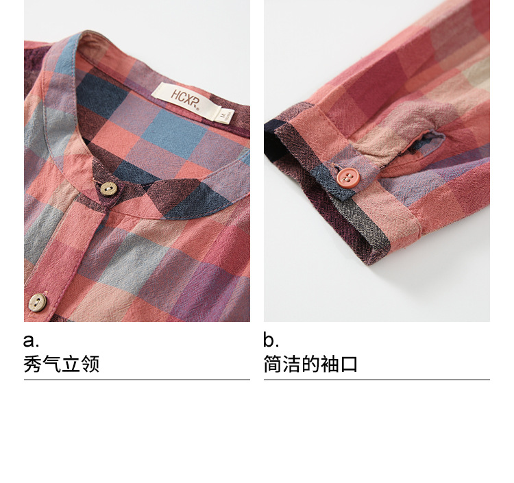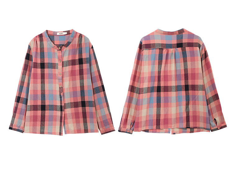 秋季多巴胺立领格子长袖衬衣,新款气质衬衫设计感上衣GYM-B1557