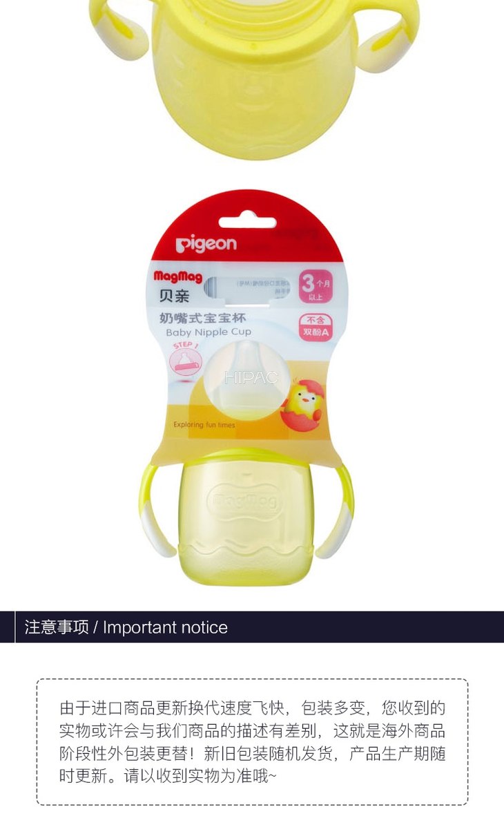 【一般贸易】贝亲MAGMAG奶嘴式宝宝杯-黄色 DA72