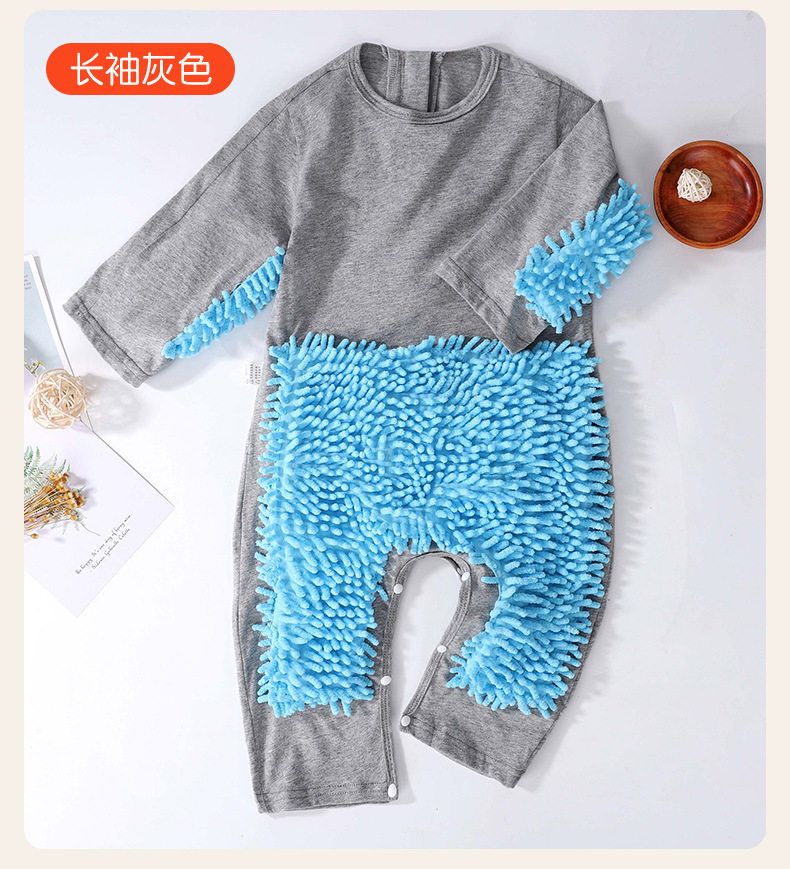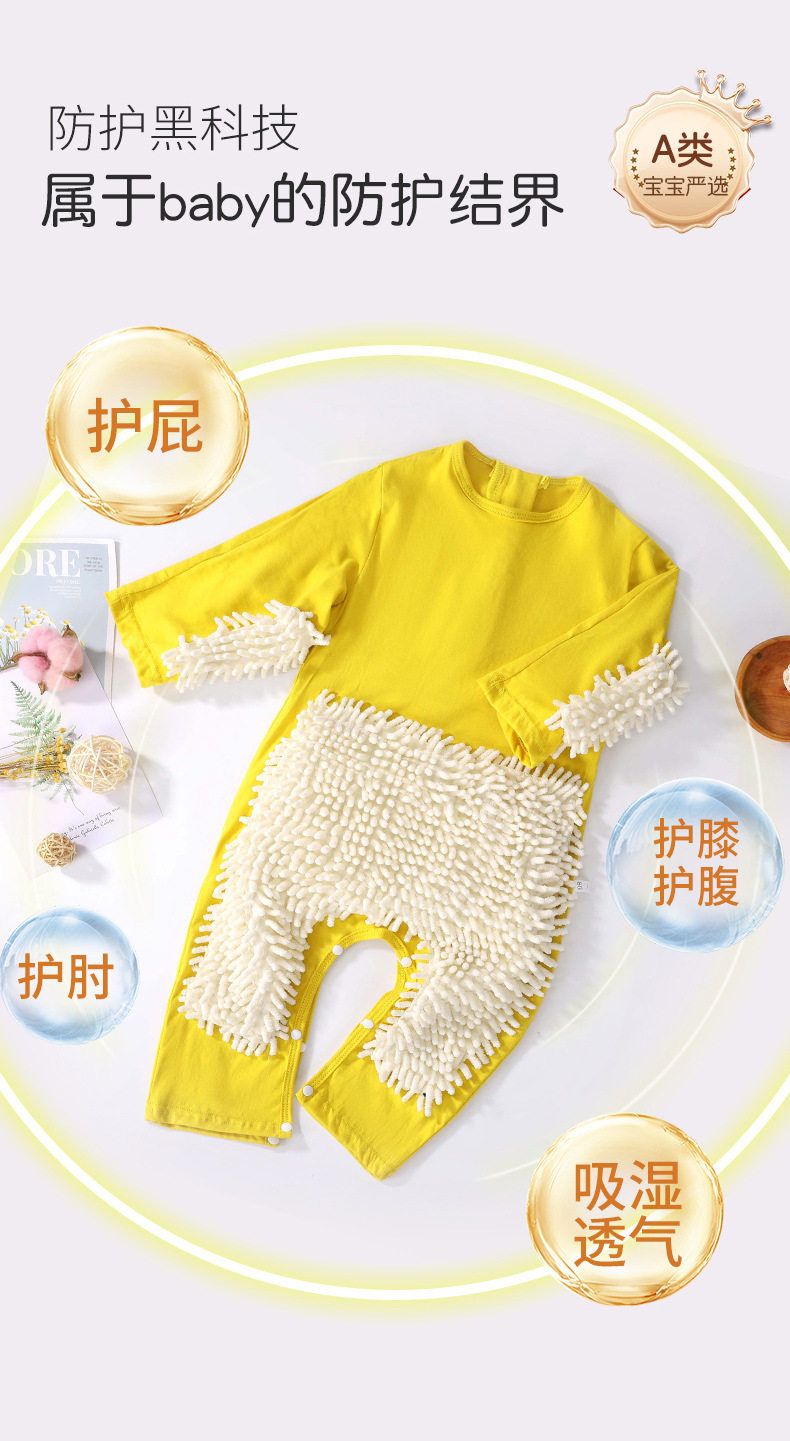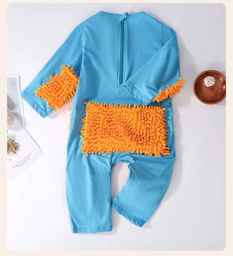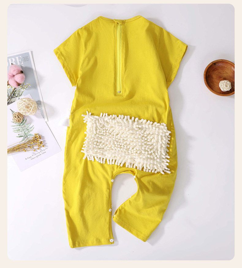 夏季薄款短袖连体婴儿拖把侠爬行服宝宝连体衣爬爬服擦地板防脏连