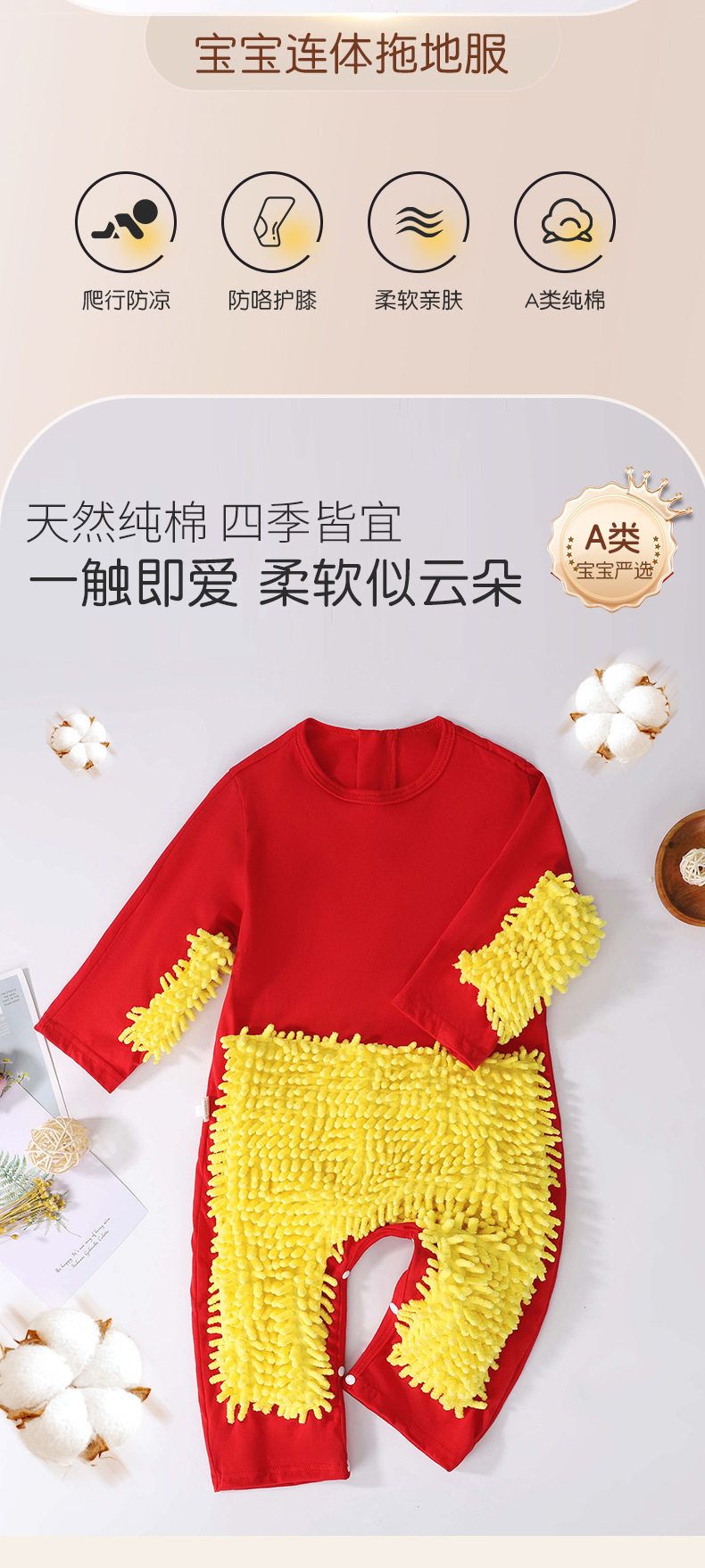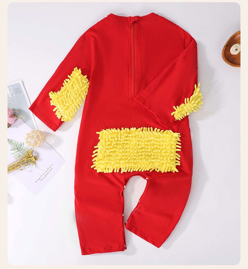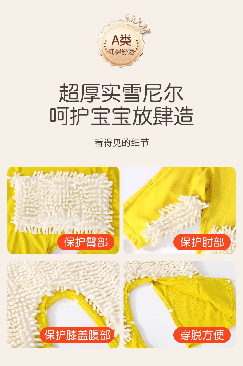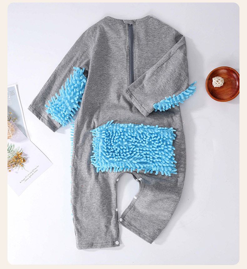 夏季薄款短袖连体婴儿拖把侠爬行服宝宝连体衣爬爬服擦地板防脏连