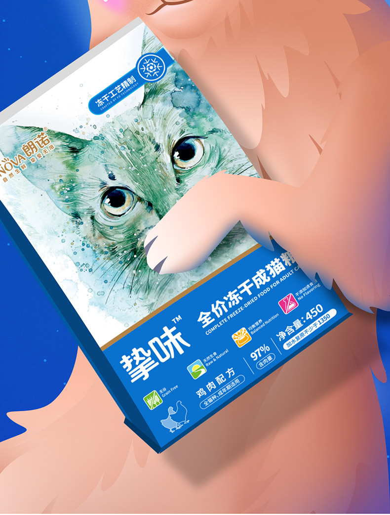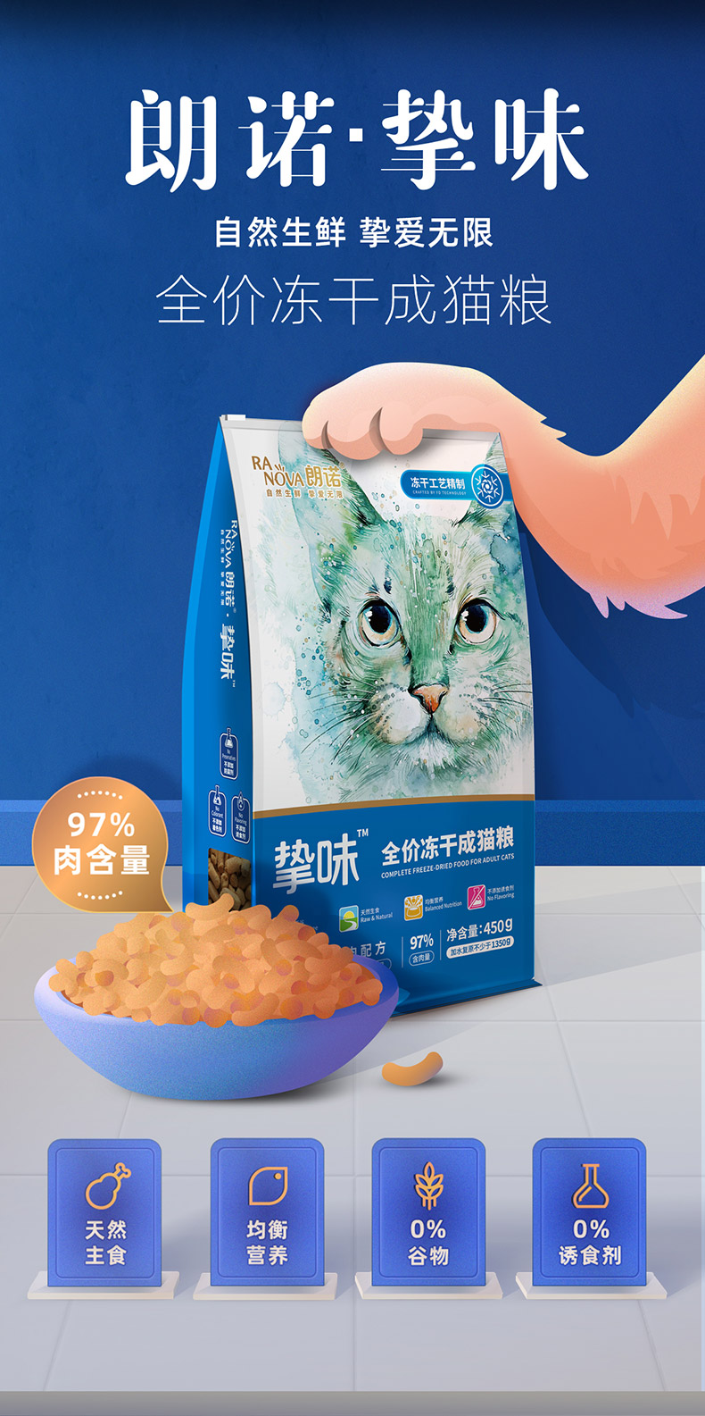朗诺冻干猫粮 鸡肉/鸡肉+三文鱼口味 450g 全价冻干猫粮 97%含肉量 营养无添加