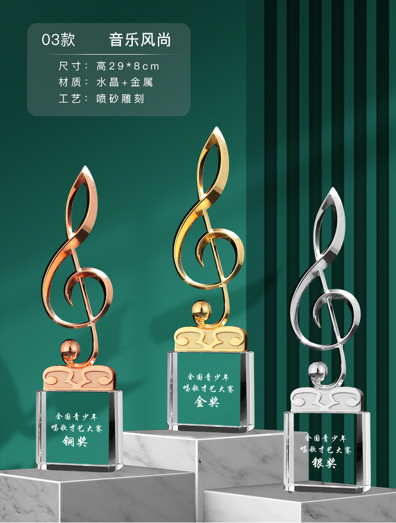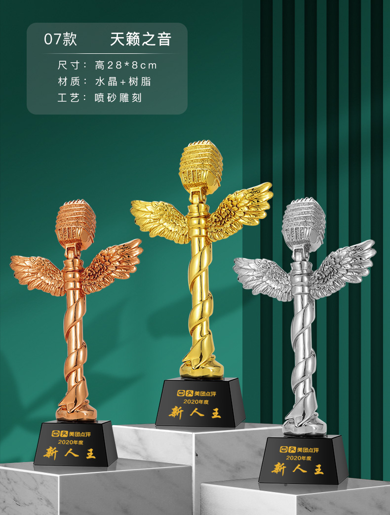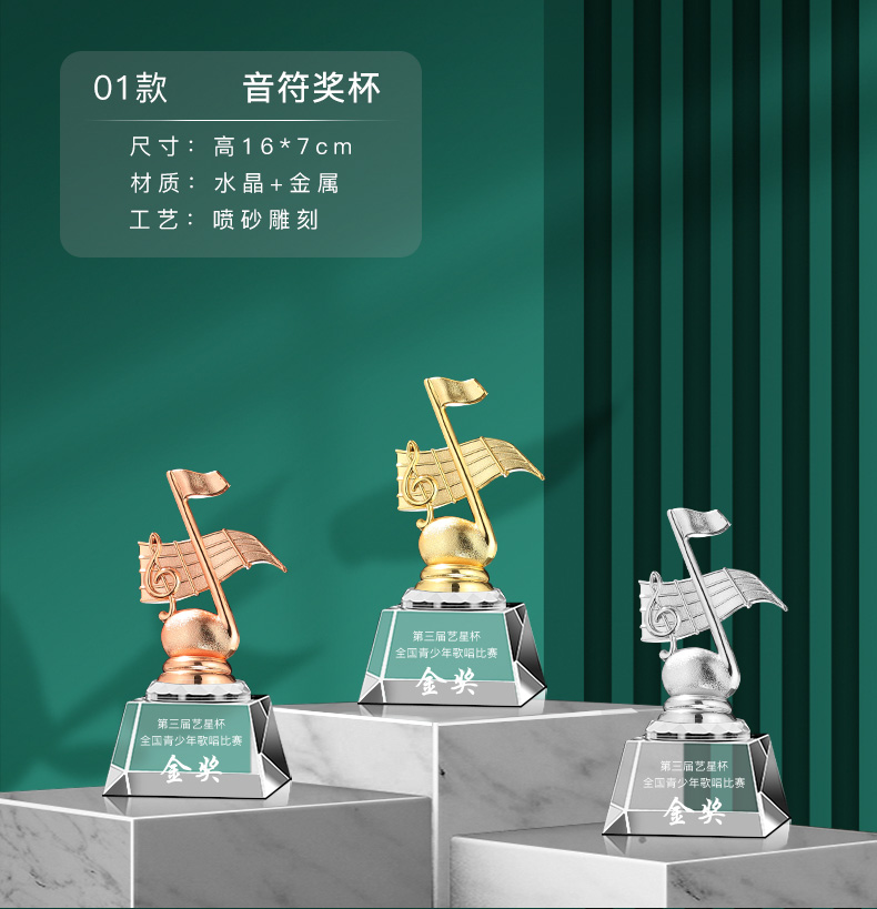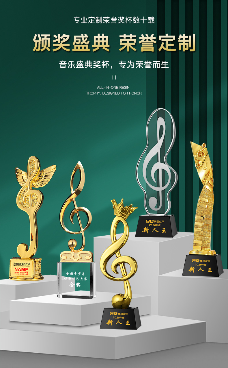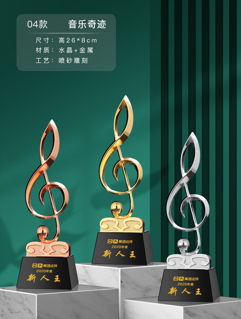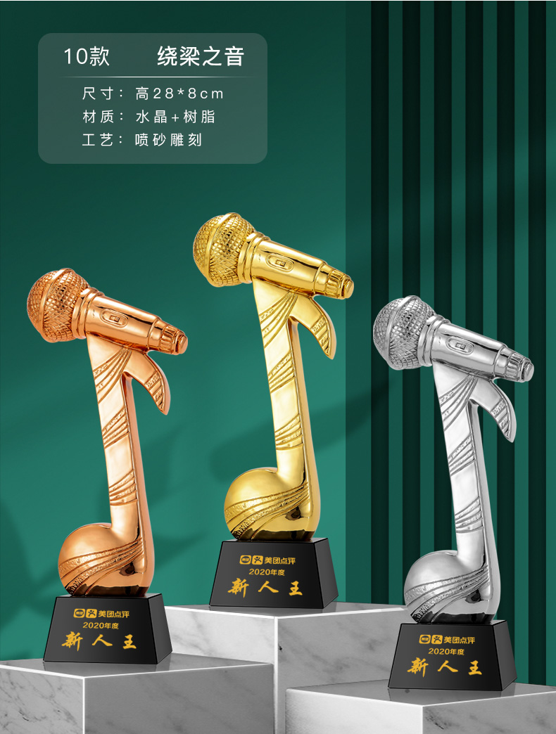 音符音乐水晶奖杯定制金话筒麦克风唱歌钢琴比赛主持人演讲好声音
