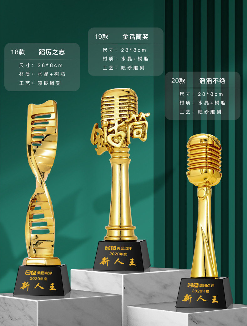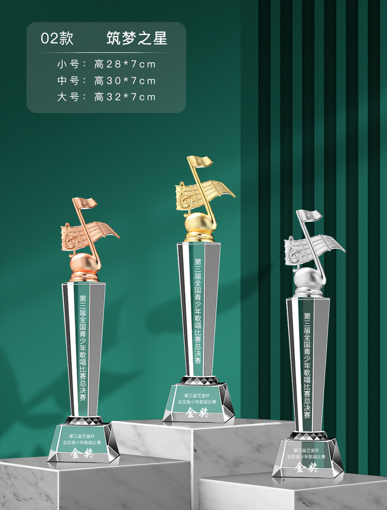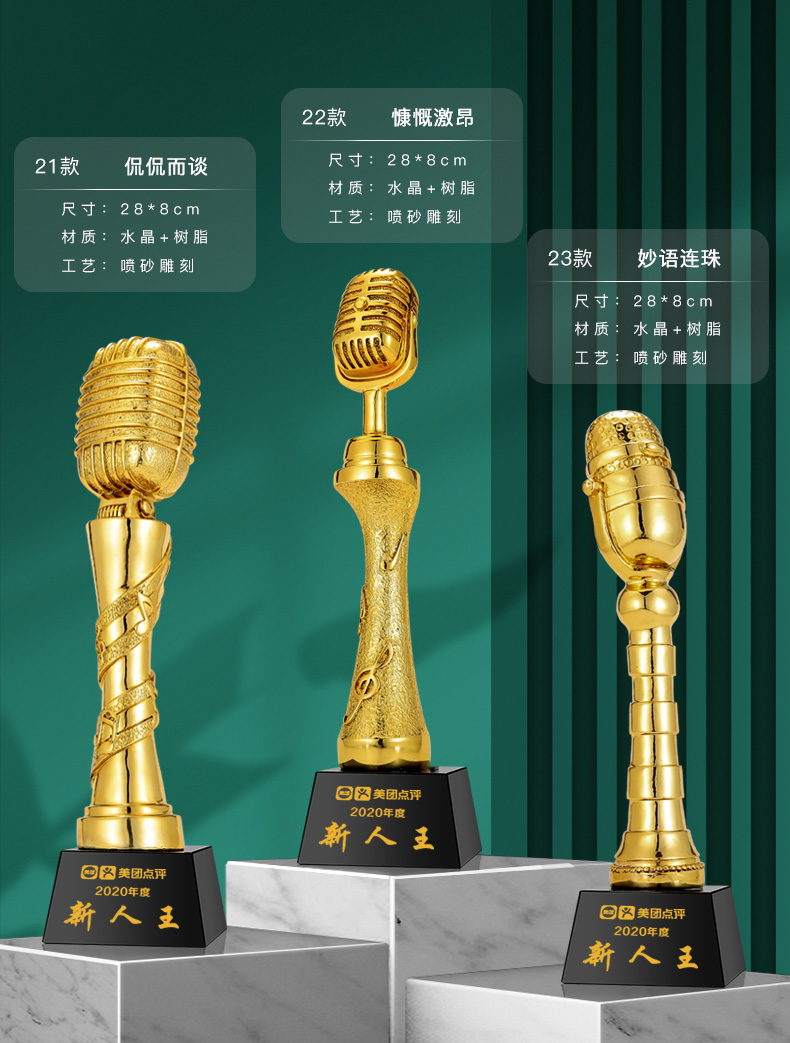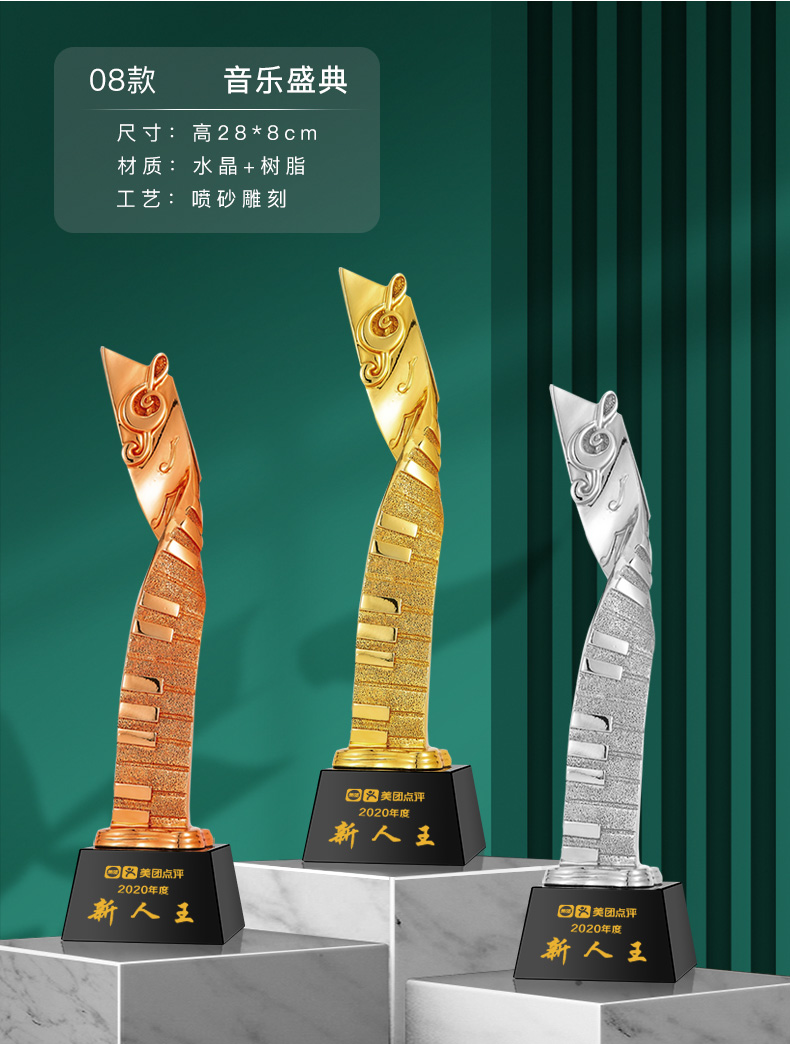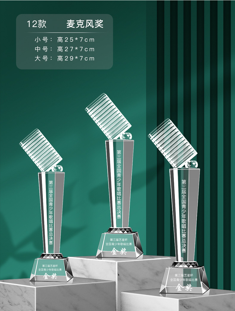 音符音乐水晶奖杯定制金话筒麦克风唱歌钢琴比赛主持人演讲好声音