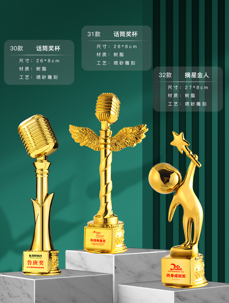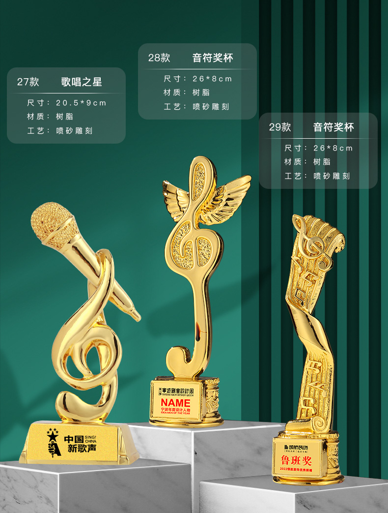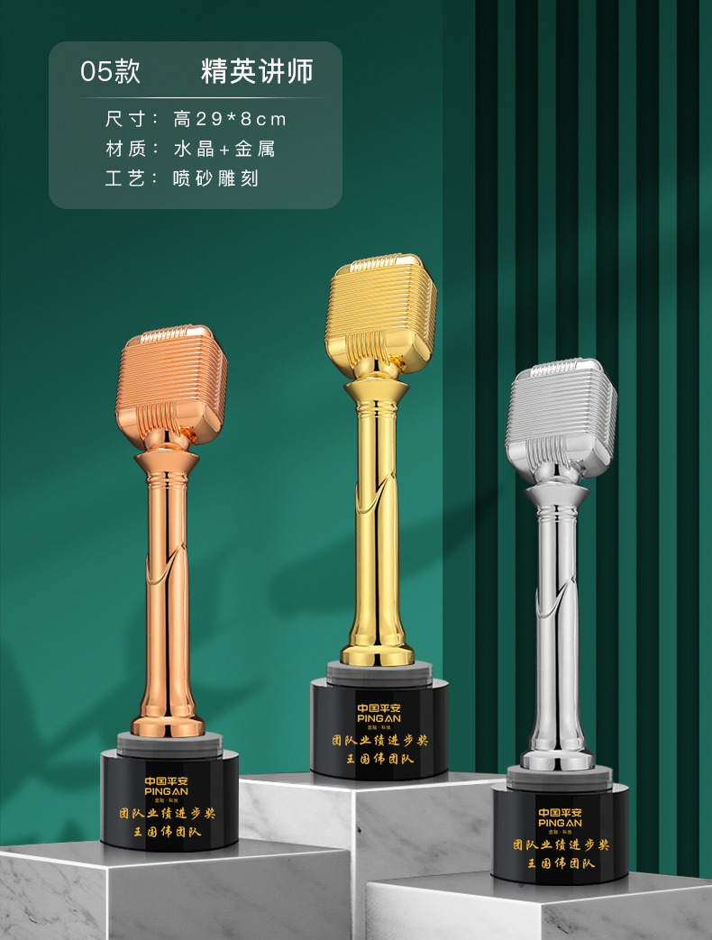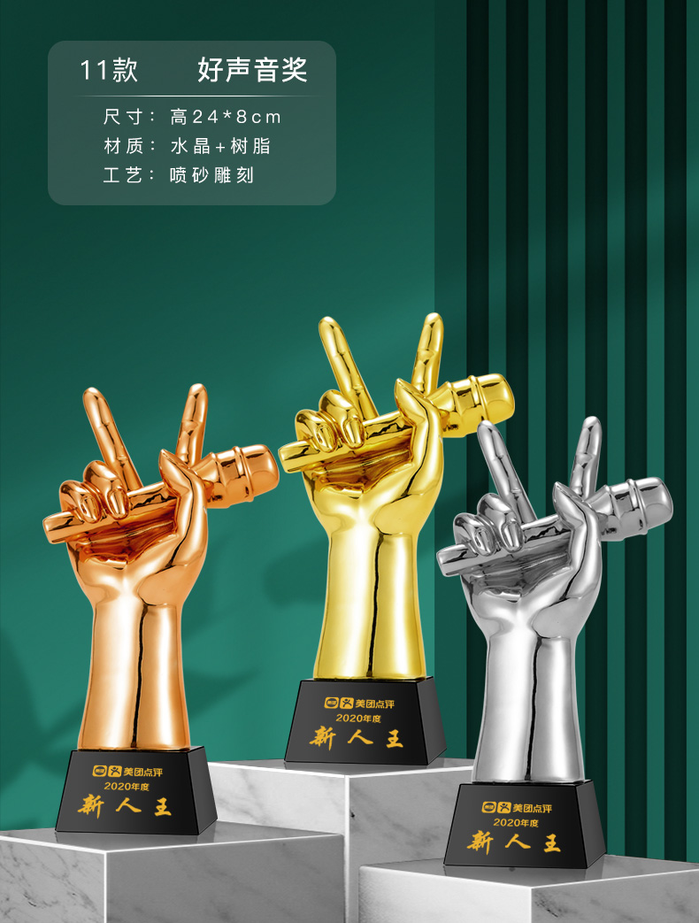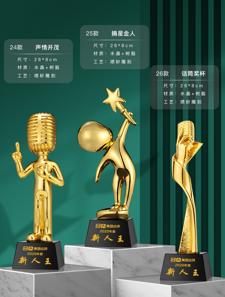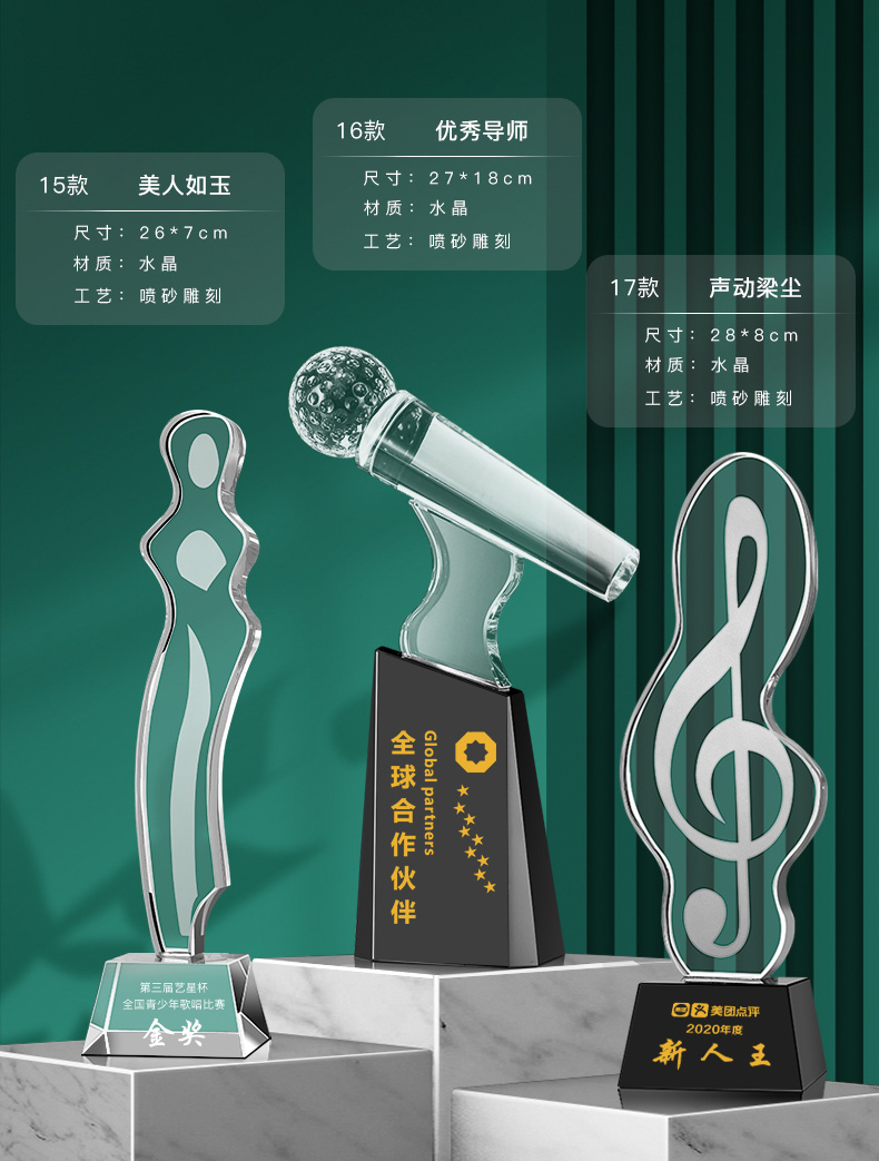 音符音乐水晶奖杯定制金话筒麦克风唱歌钢琴比赛主持人演讲好声音