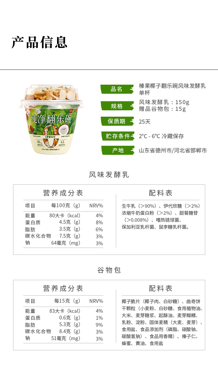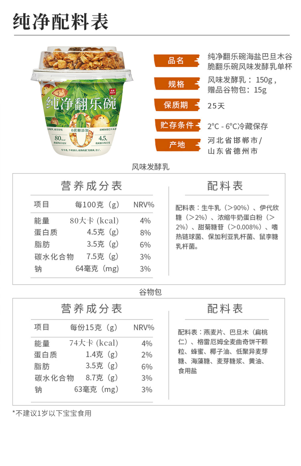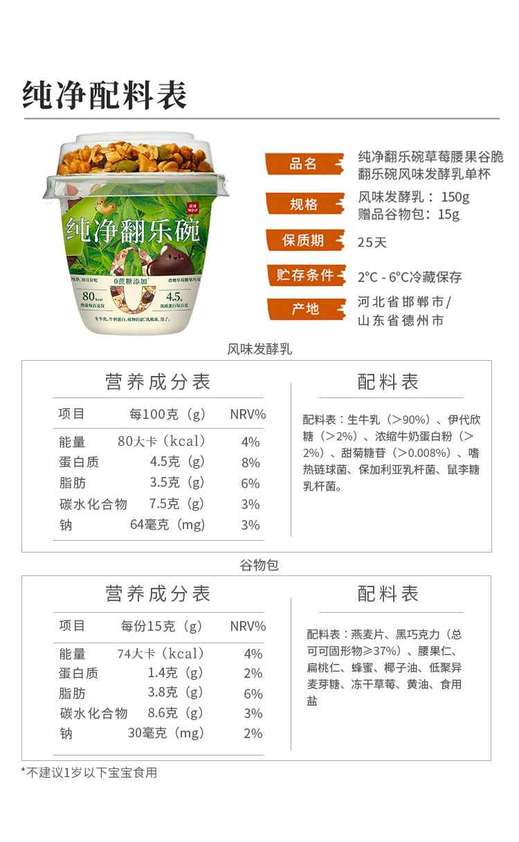 【商品名称】乐纯0蔗糖翻乐碗酸奶
