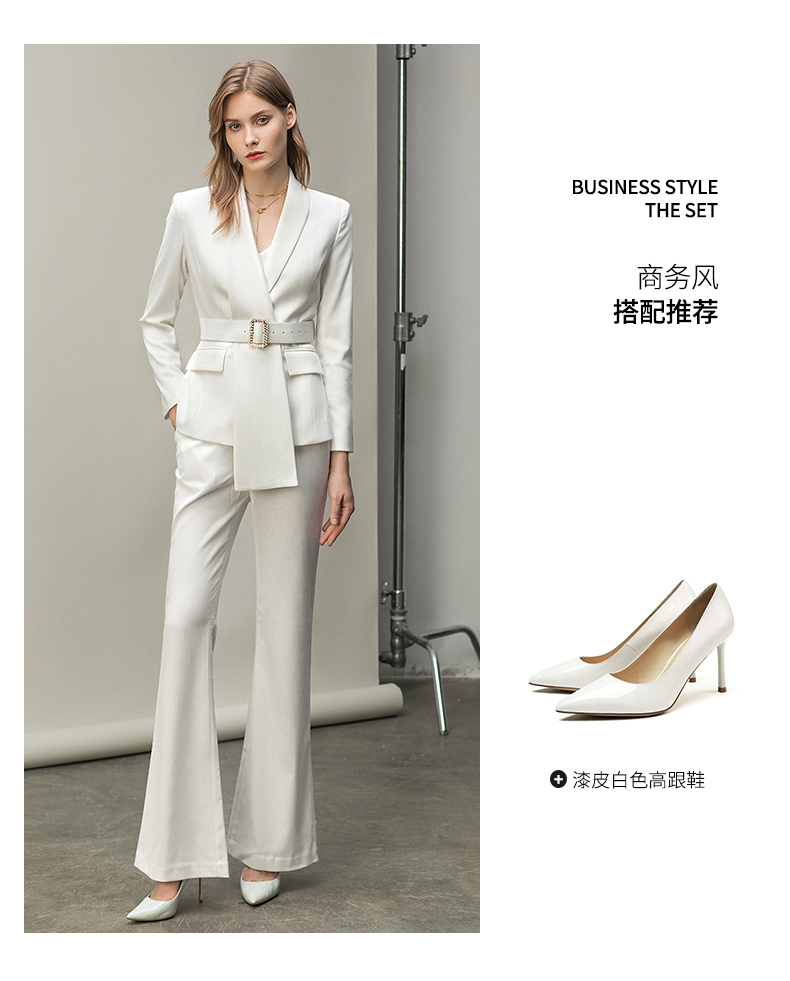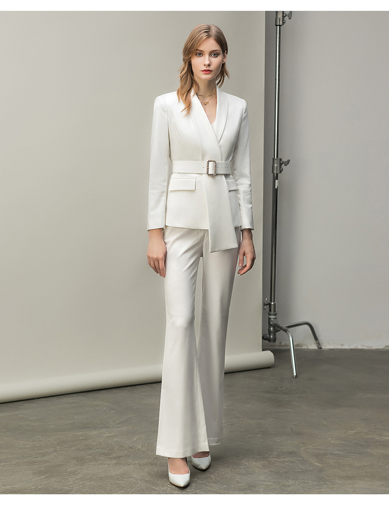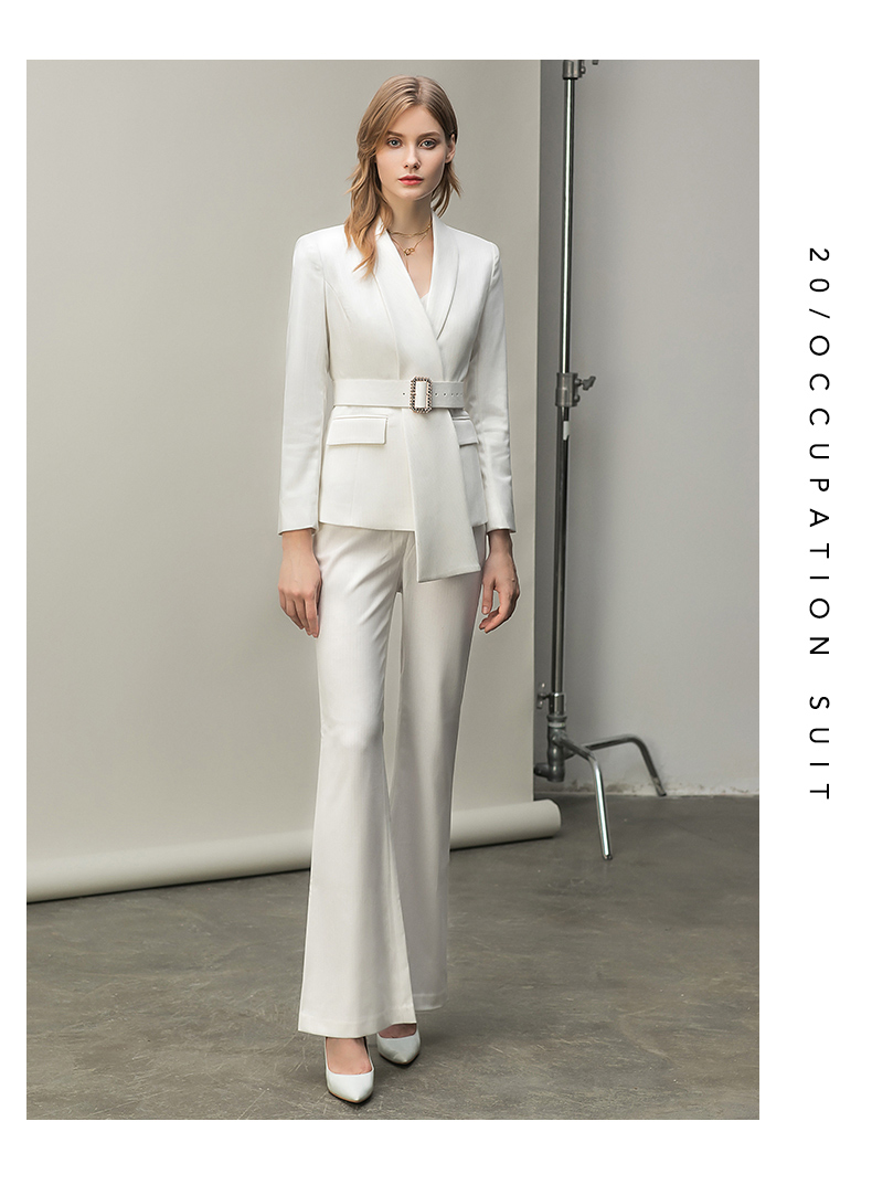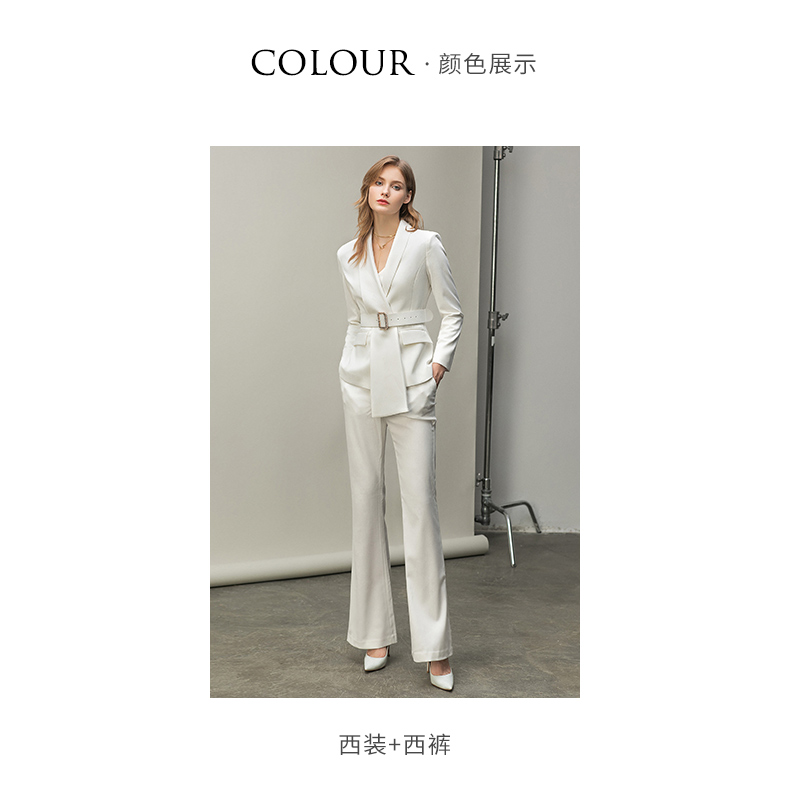 IWY/高端白色系带西装套装女气质时尚职业装显瘦白领阔腿裤总裁工作服 C10348+P310348