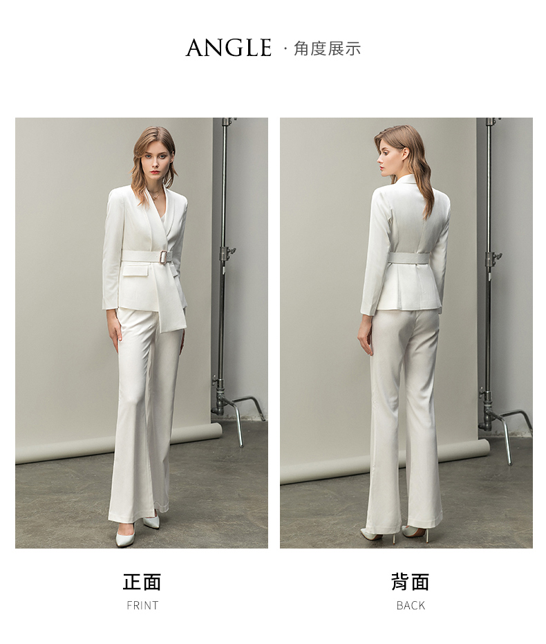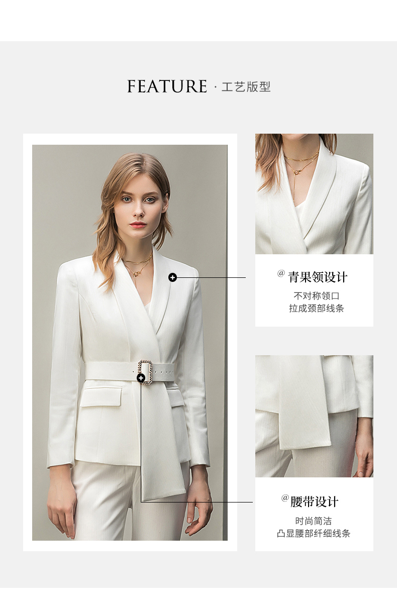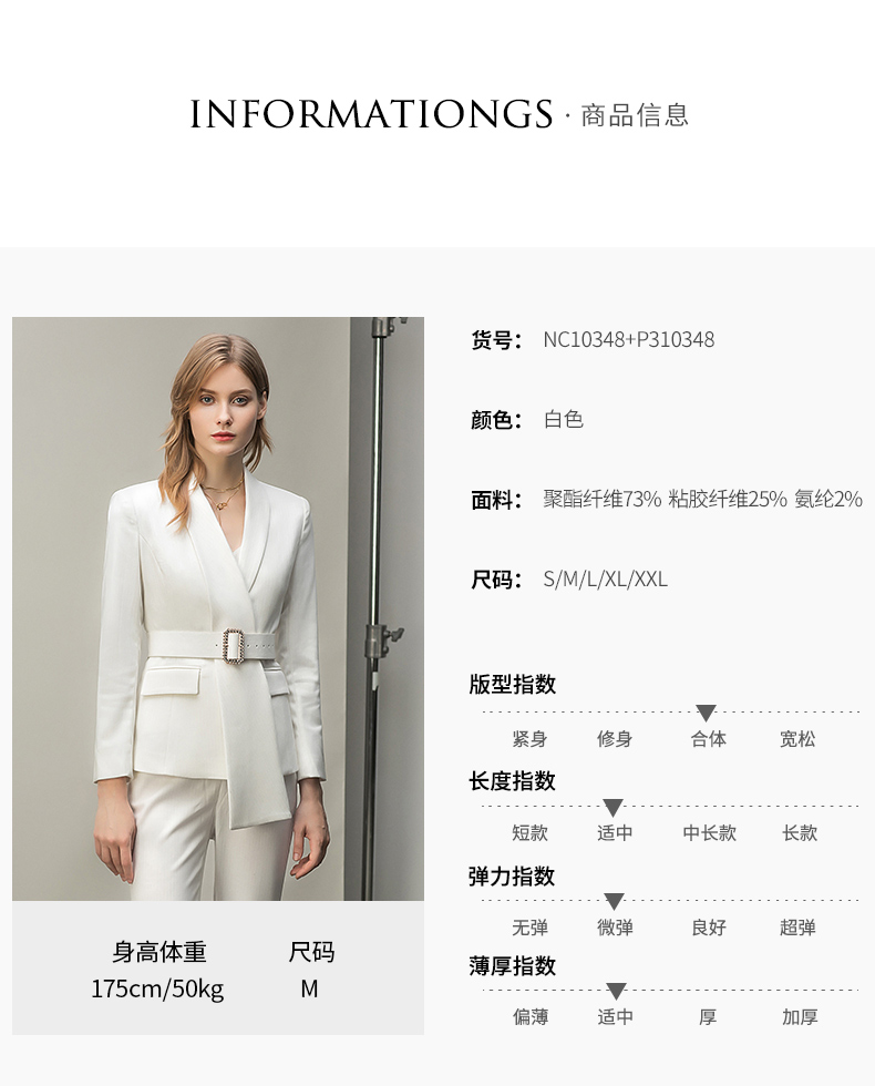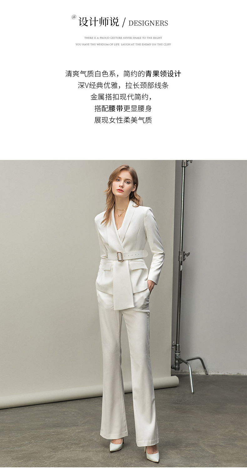 IWY/高端白色系带西装套装女气质时尚职业装显瘦白领阔腿裤总裁工作服 C10348+P310348