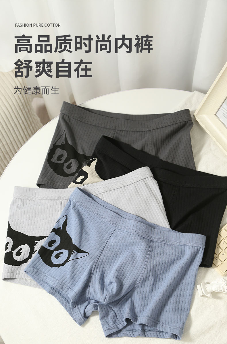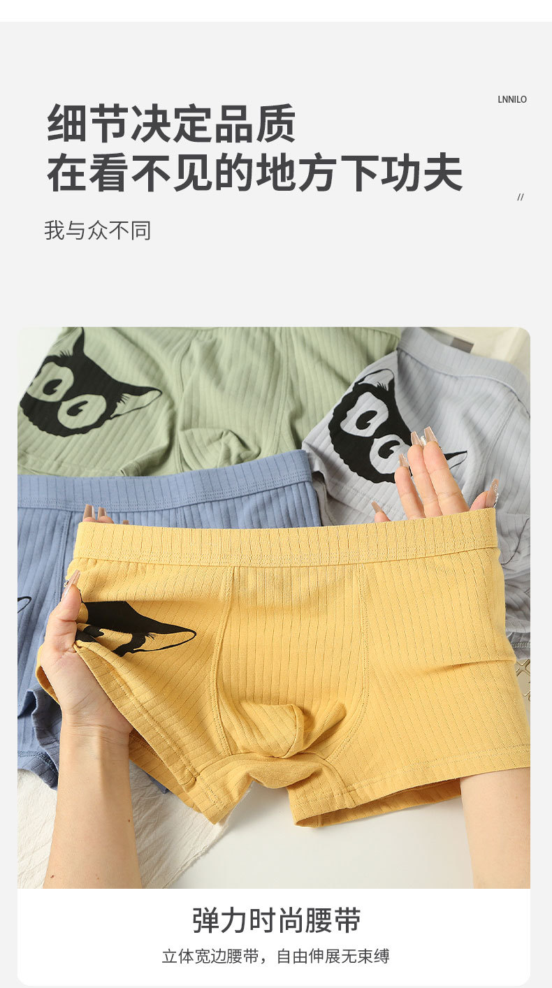【舒适透气】纯棉内裤男生潮流印花透气平角裤头卡通四角裤衩冬款中腰男士内裤。ry