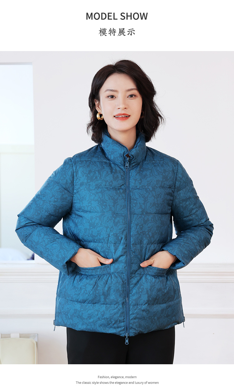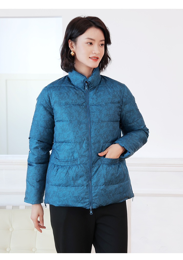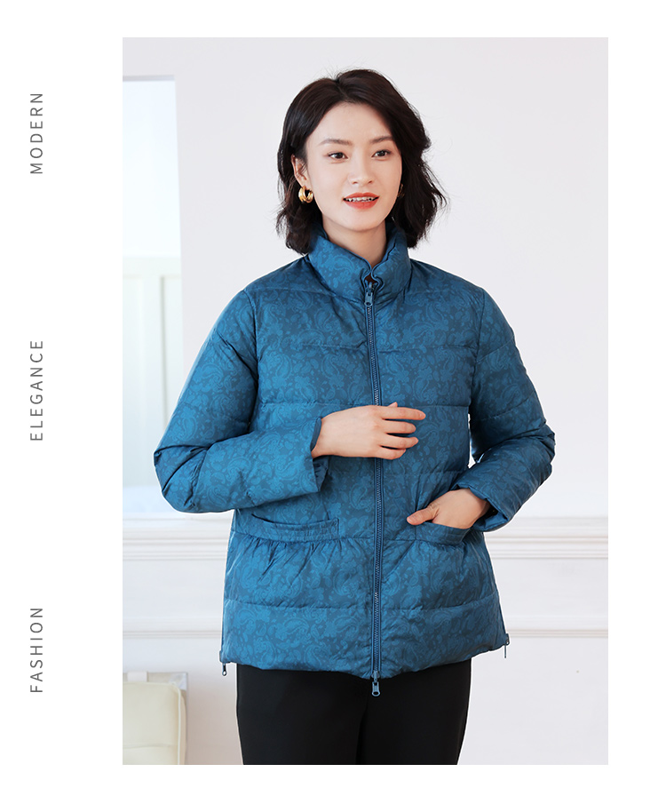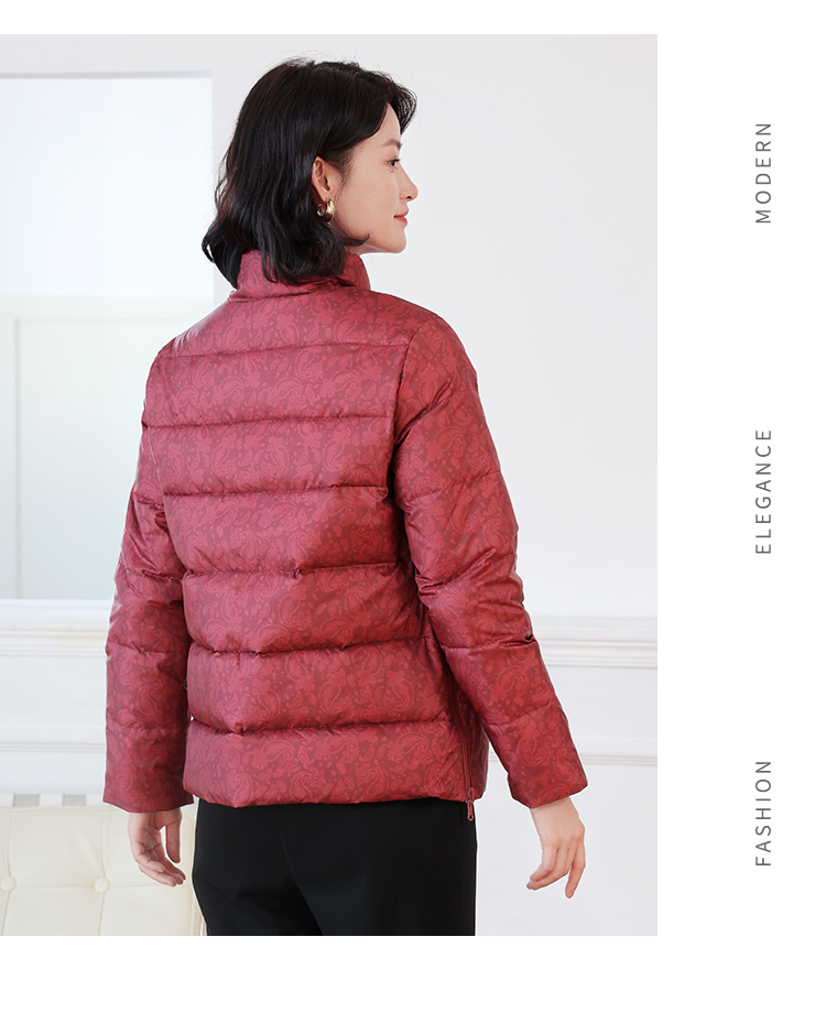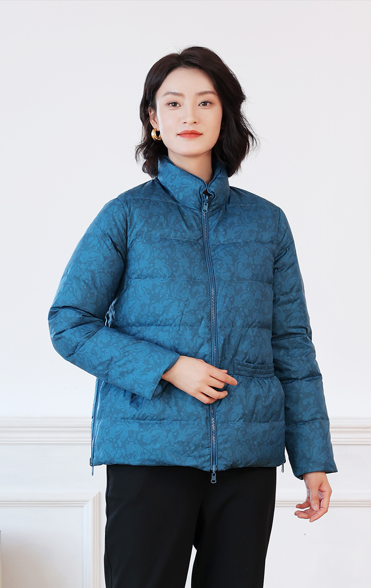 佐尔美冬季新款 气质时尚双面穿花纹图案短款羽绒服女E24YY17