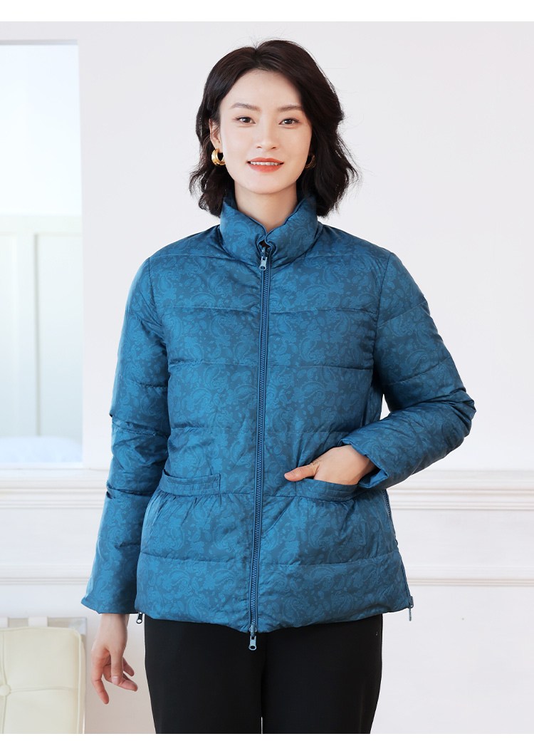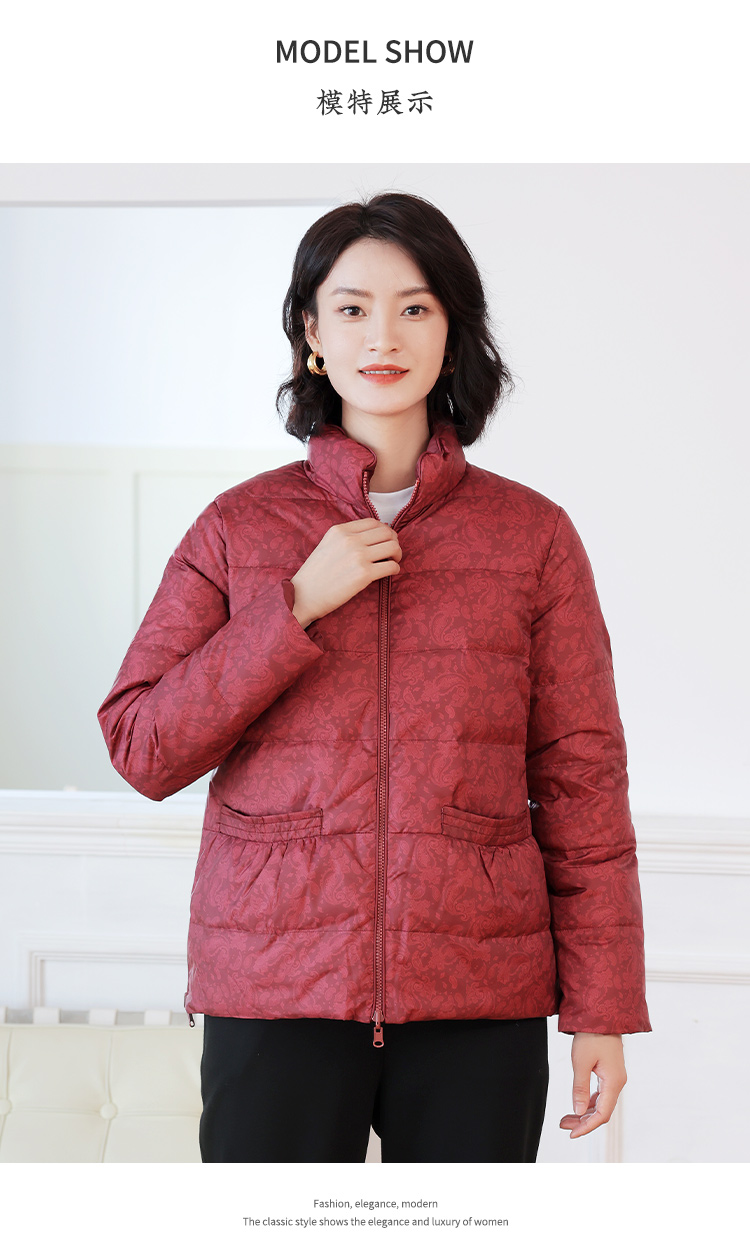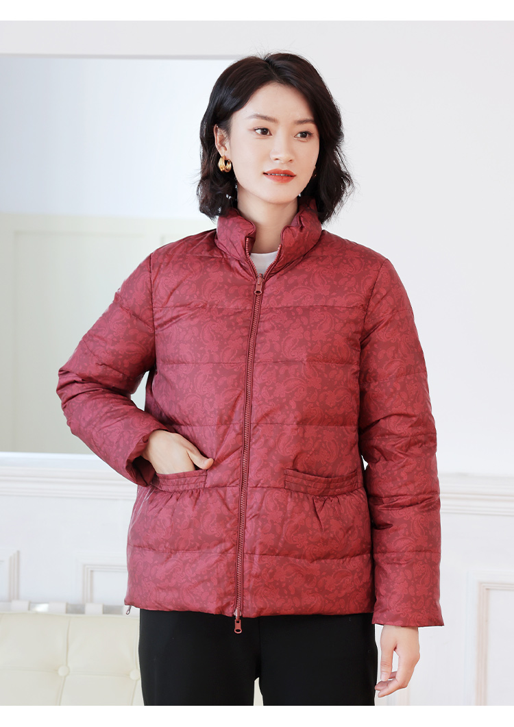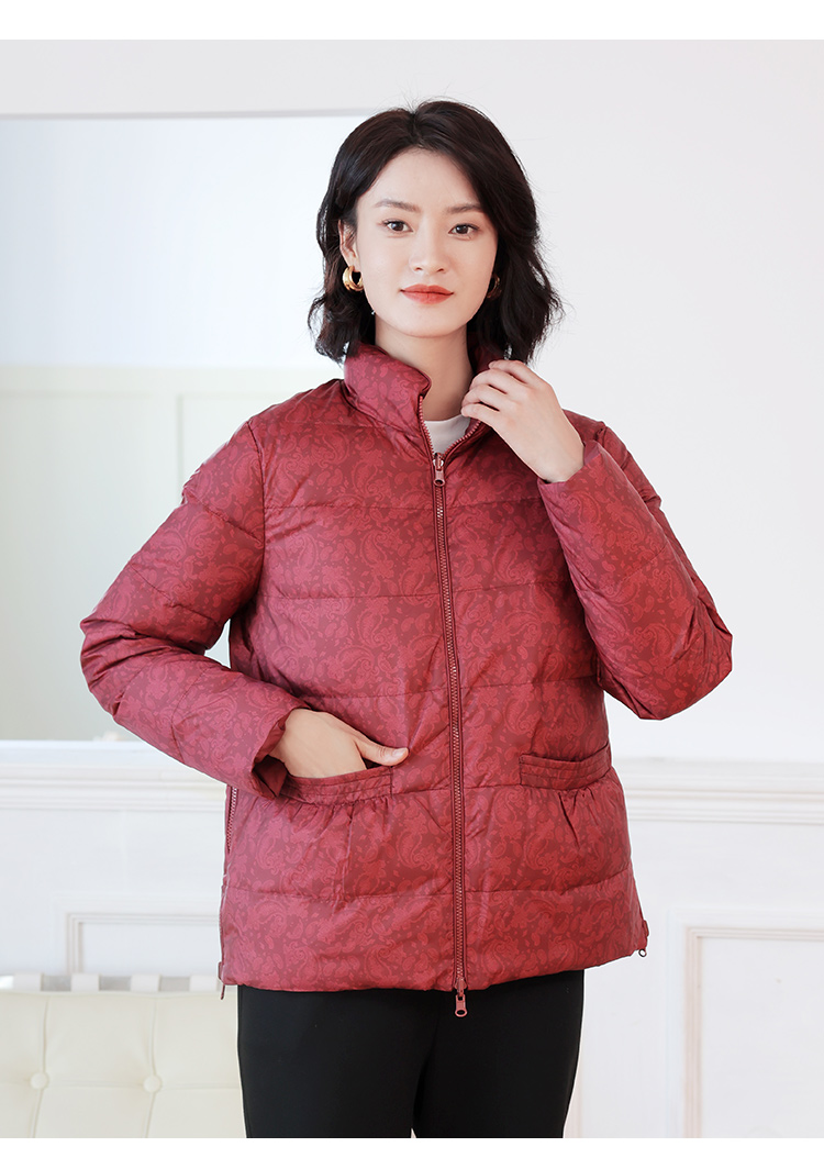 佐尔美冬季新款 气质时尚双面穿花纹图案短款羽绒服女E24YY17