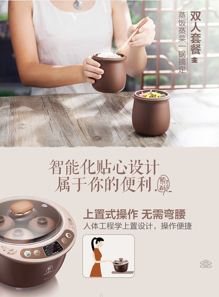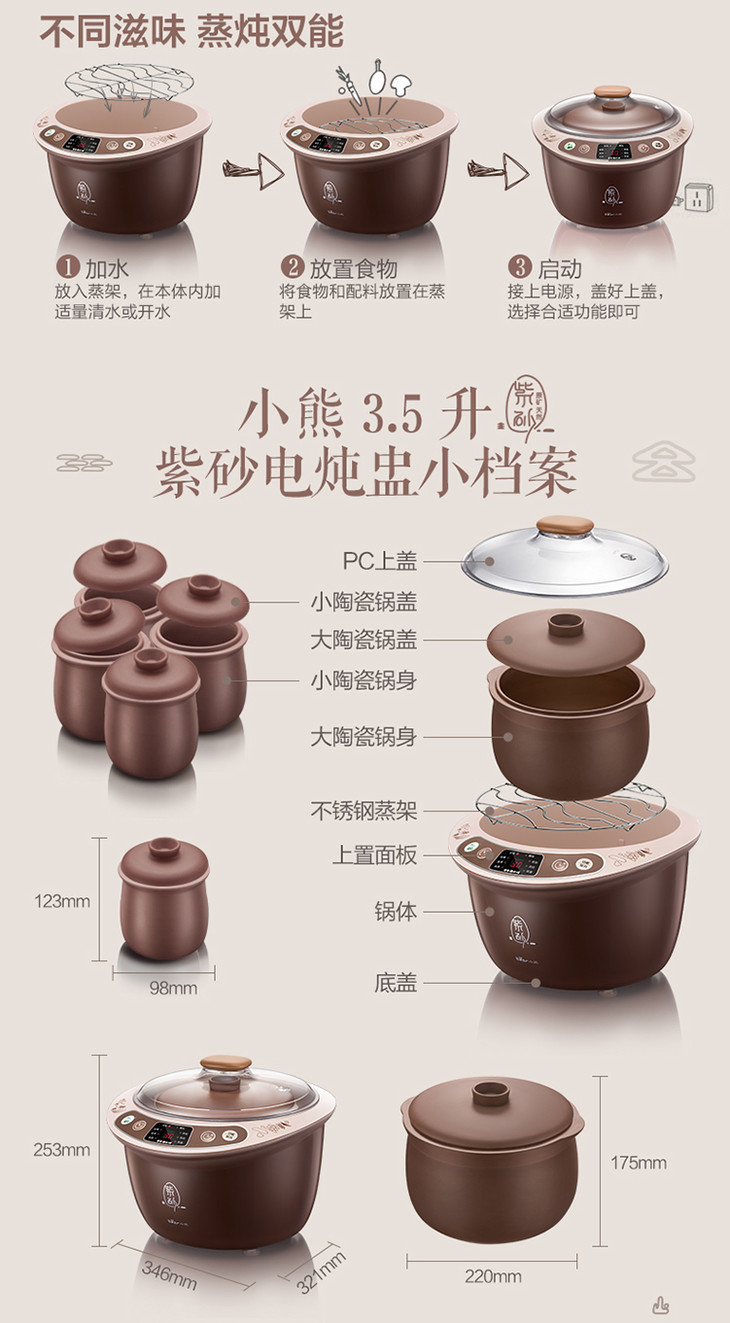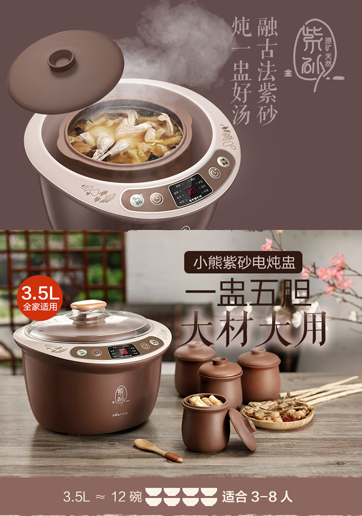 小熊(Bear)电炖锅 京东自营 隔水炖盅紫砂煲炖汤锅熬粥全自动3.5L五胆DDZ-A35M5