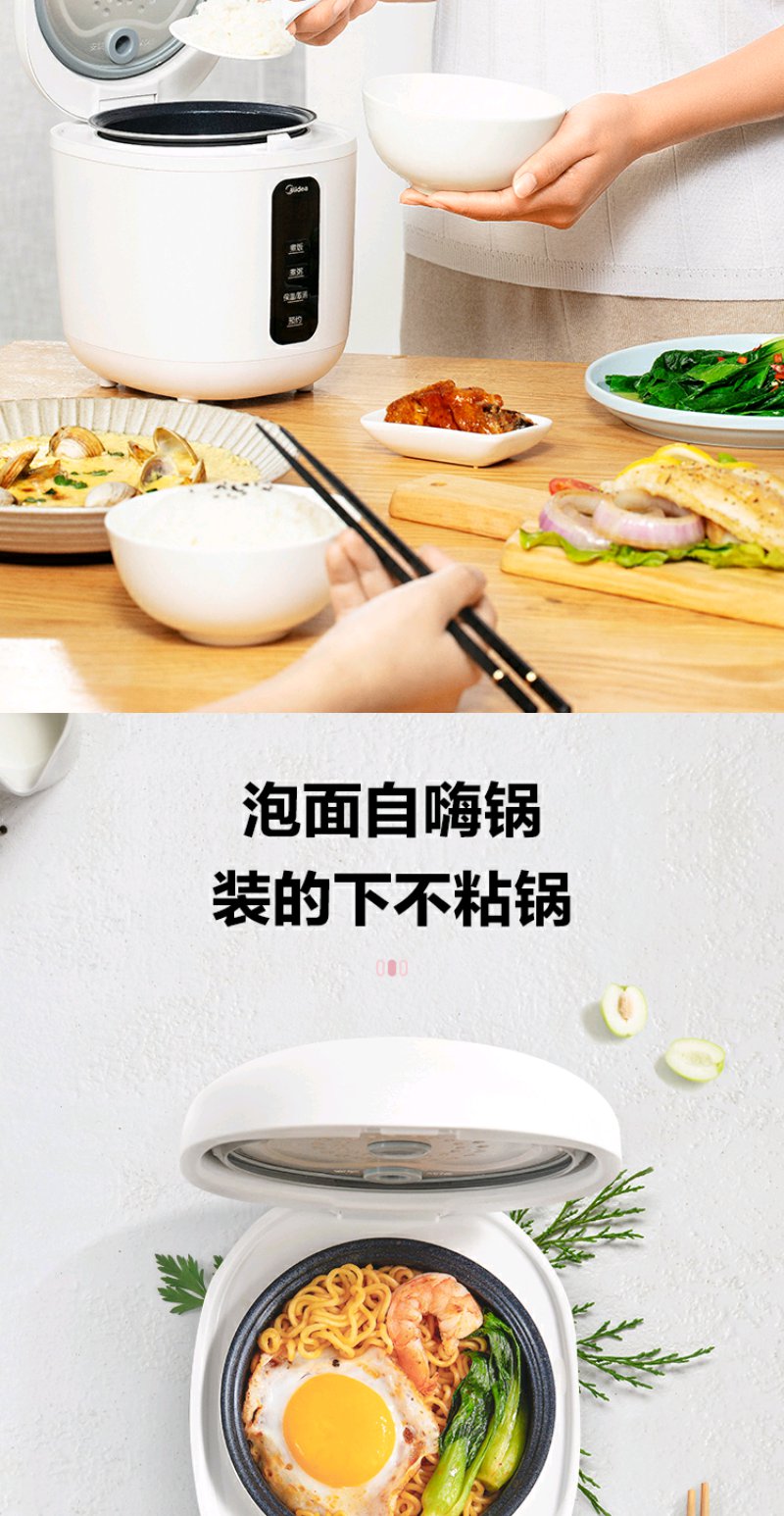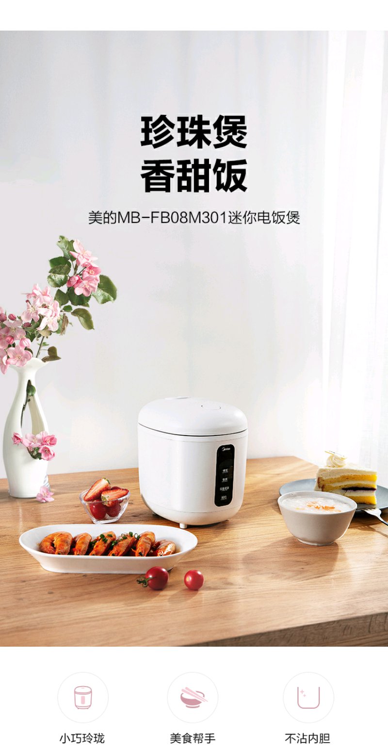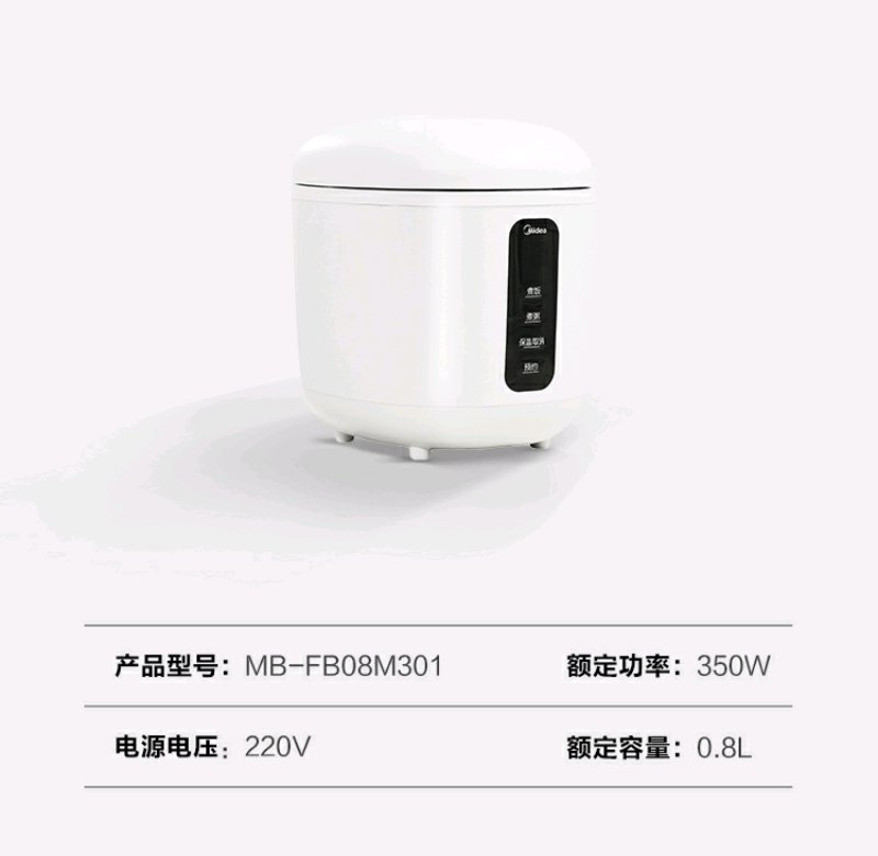 cdfh031pfj【美的MB-FB08M301】美的 (Midea)0.8L小容量迷你电饭煲便携单人宿舍旅行MB-FB08M301