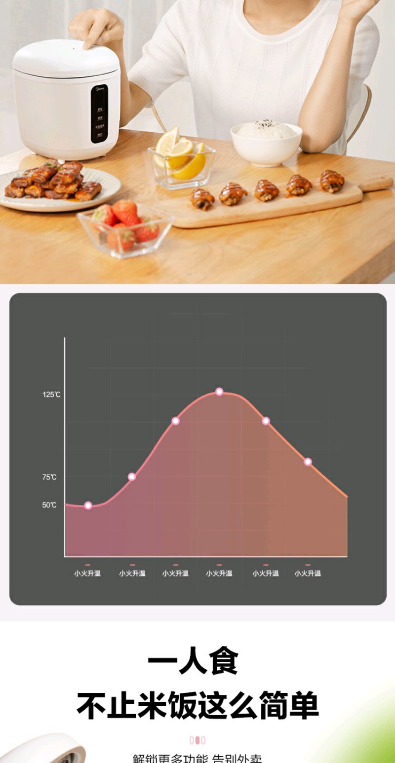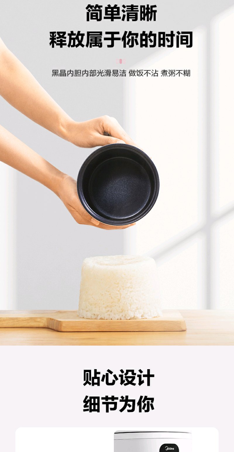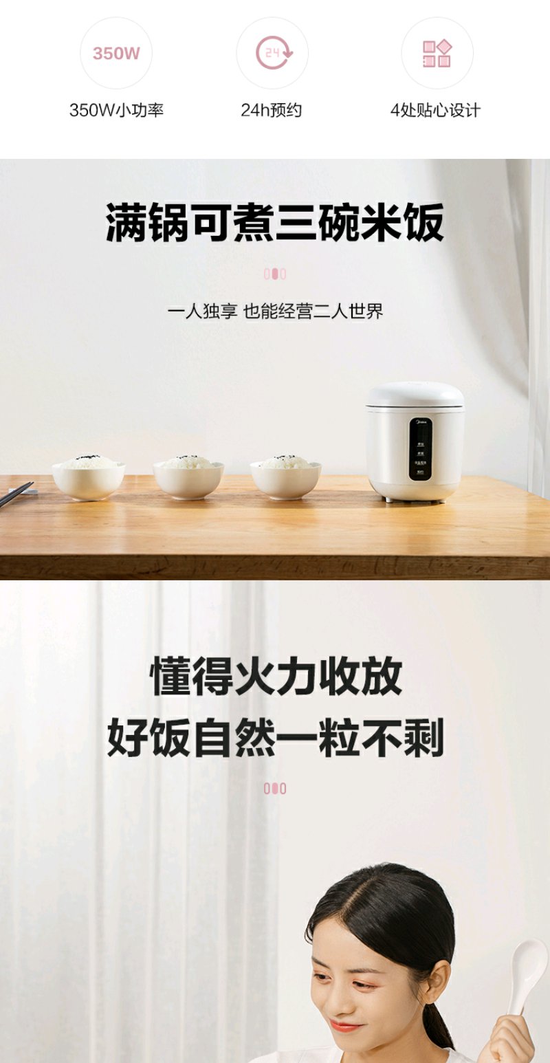 cdfh031pfj【美的MB-FB08M301】美的 (Midea)0.8L小容量迷你电饭煲便携单人宿舍旅行MB-FB08M301