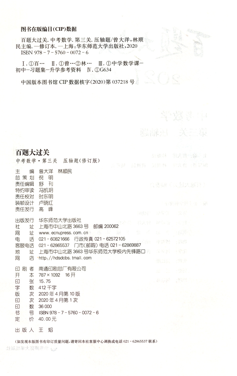 2021新版 百题大过关 中考数学 第三关压轴题 修订版 初一初二初三适用精选全国真题详解中考复习辅导用书