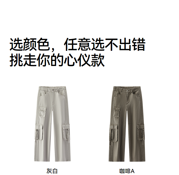商场同款|森马休闲裤女春季做旧纯棉工装裤2026新款设计感阔腿裤