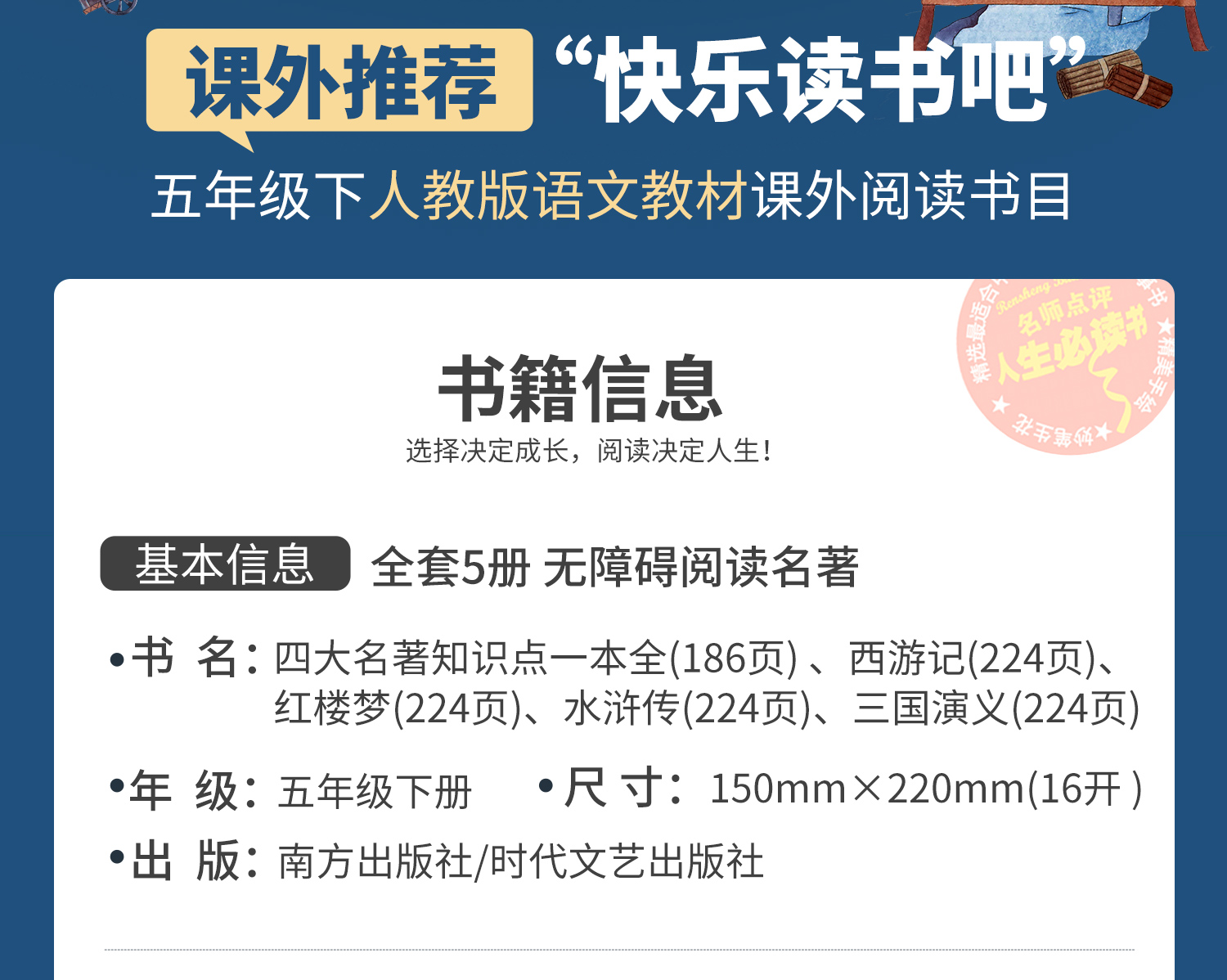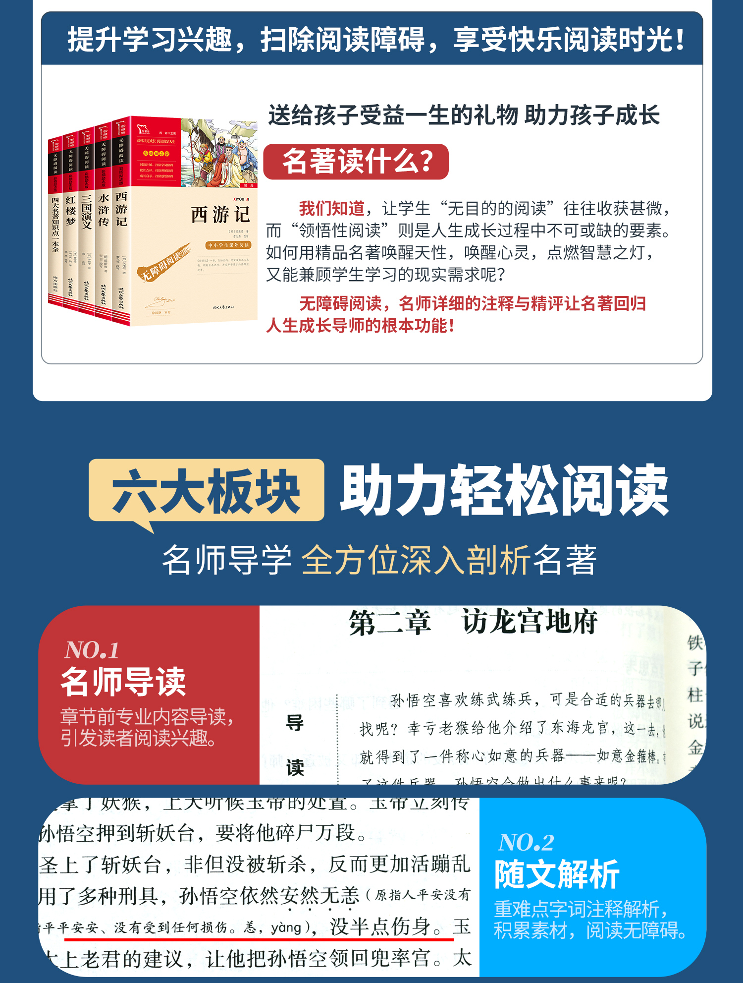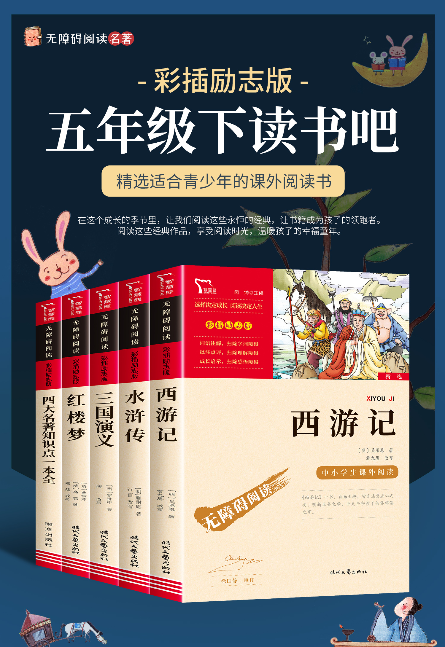 四大名著原著正版 四大名著小学生版五年级下册必读课外书水浒传西游记红楼梦三国演义小学生版 四大名著青少年版本五下快乐读书吧
