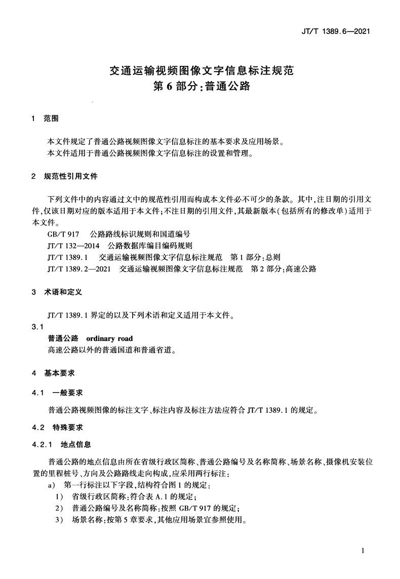 交通运输视频图像文字信息标注规范 第6部分:普通公路(JT/T 1389.6-2021)