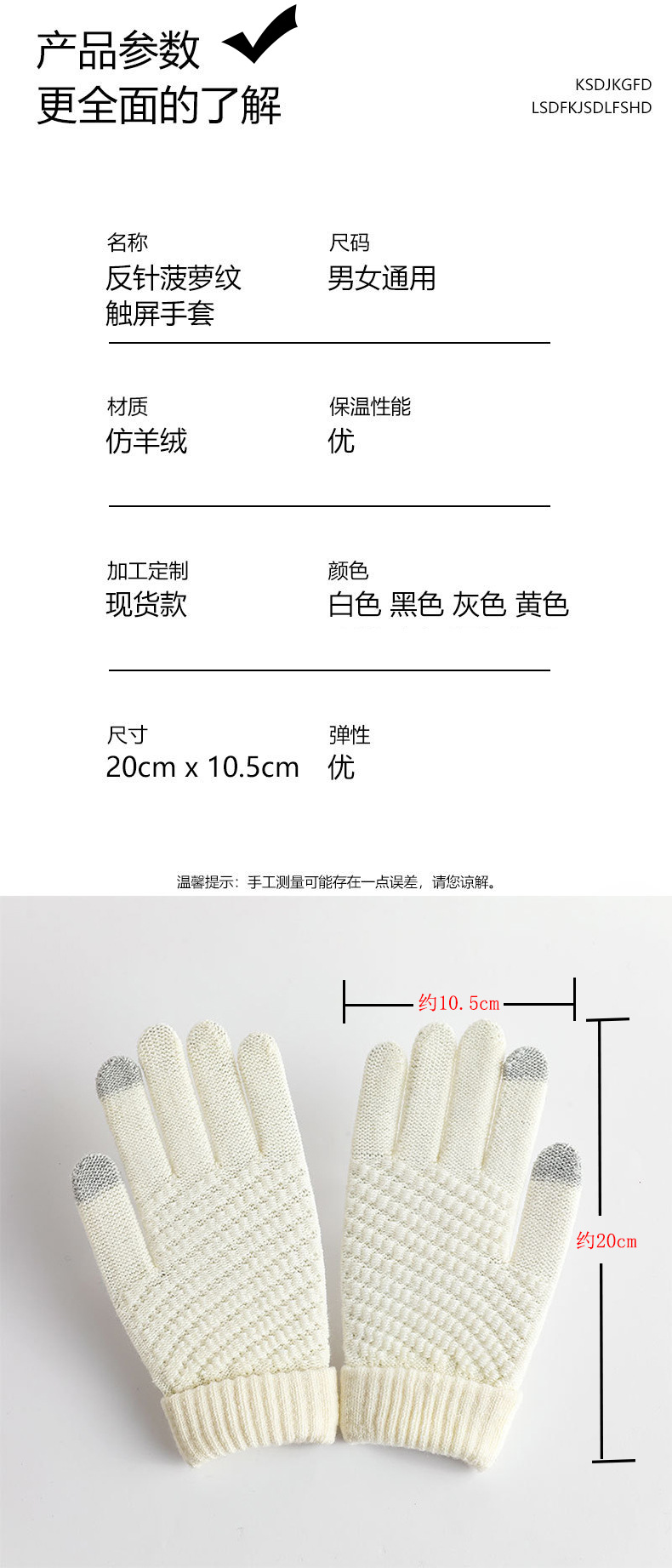 【经典设计!给手掌贴心的保护】手套女情侣秋冬季加绒加菠萝纹防寒触屏骑行保暖毛线学生针织手套,。触屏设计,防寒保暖毛线,触屏功能让你轻松操作手机。ry
