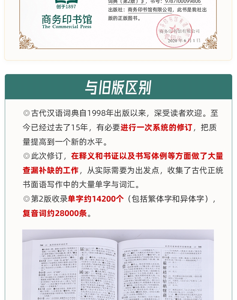 古代汉语词典第2版新版商务印书馆出版社第二版常用字典词典初高中学生中高考古汉语字典文言文辞典语文汉语工具书