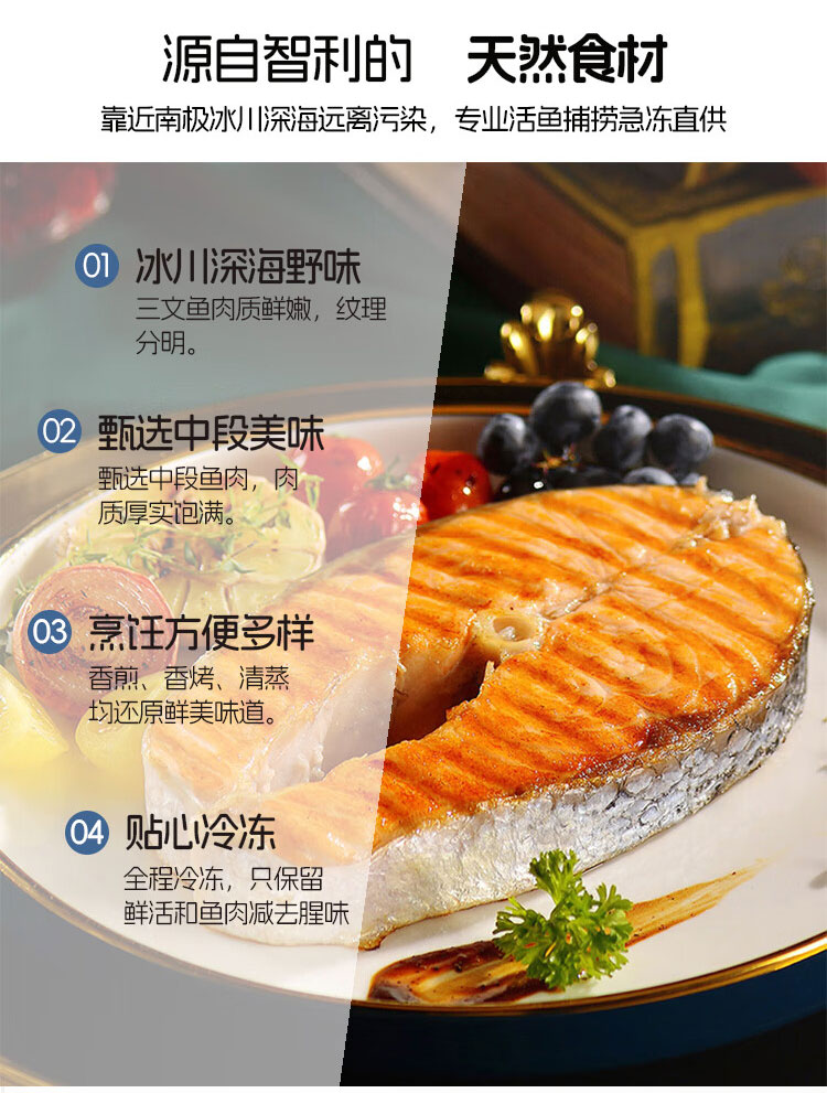1kg【顶级海洋味道】智利厚切三文鱼排 纯正野生三文鱼 香嫩无腥味 营养又健康